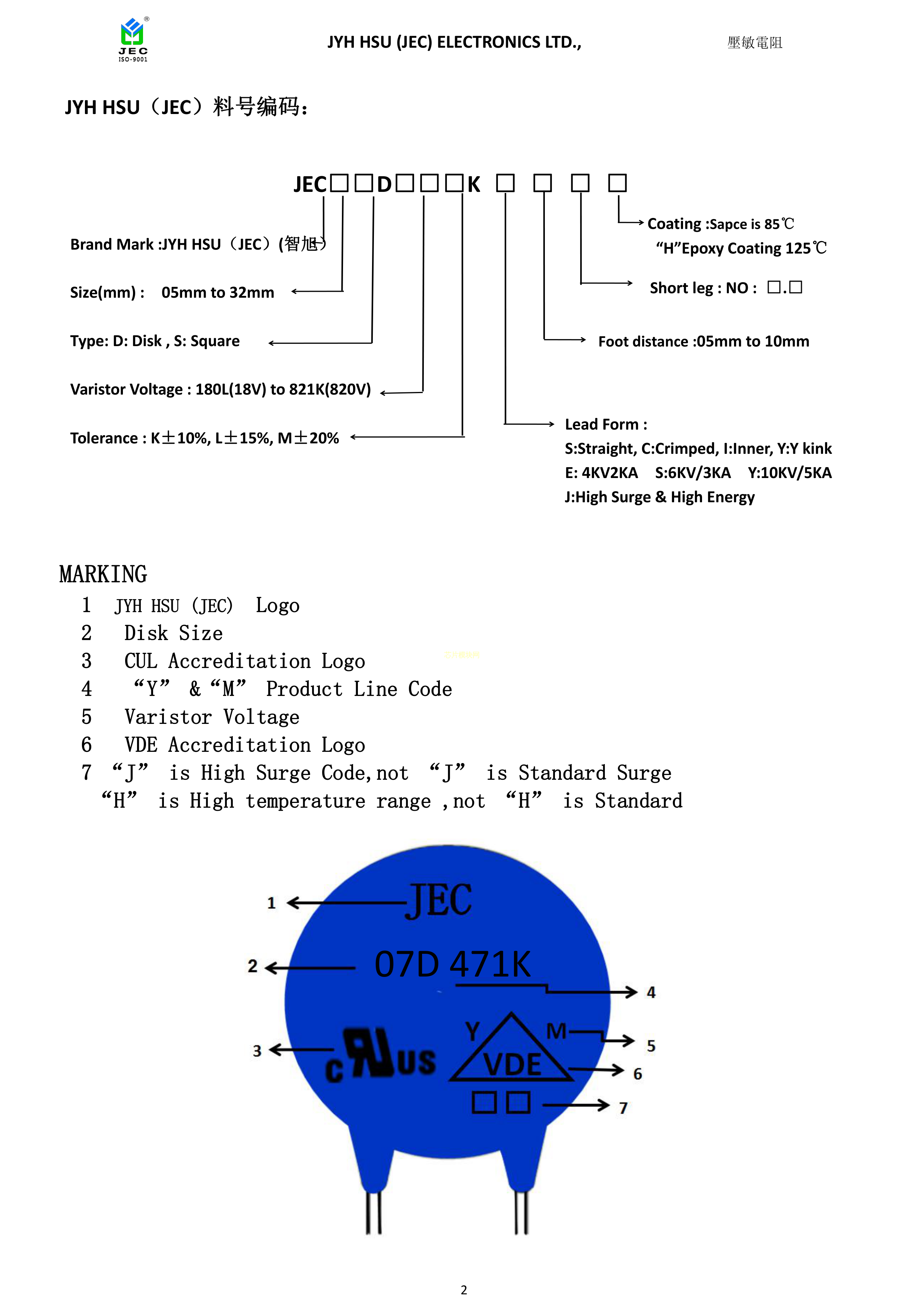 JEC10D471KJ103.0数据手册径向引线封装JEC(智旭)PDF规格书,中英文下载