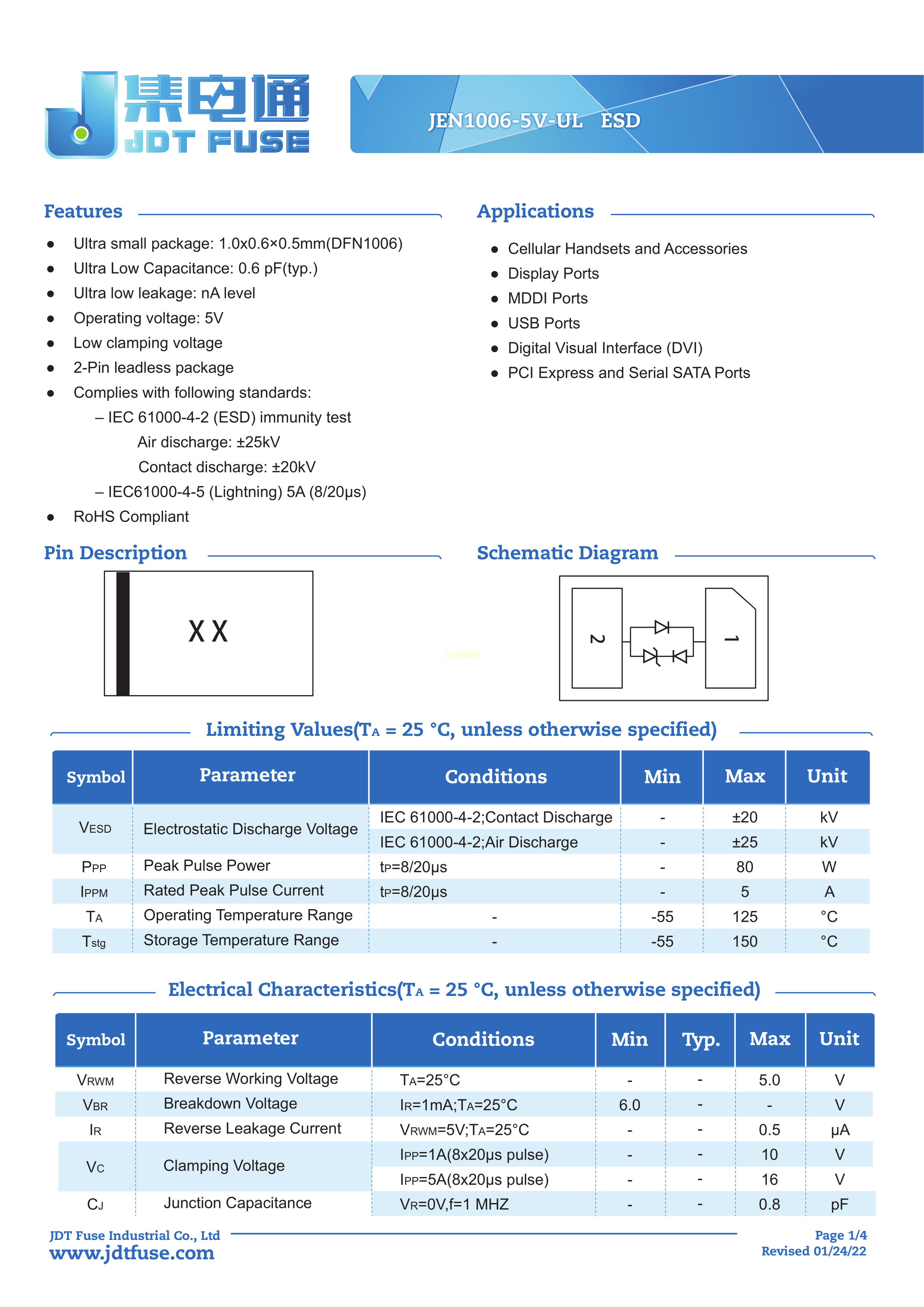 JEN1006-5V-UL数据手册DFN1006封装JDTfuse(集电通)PDF规格书,中英文下载
