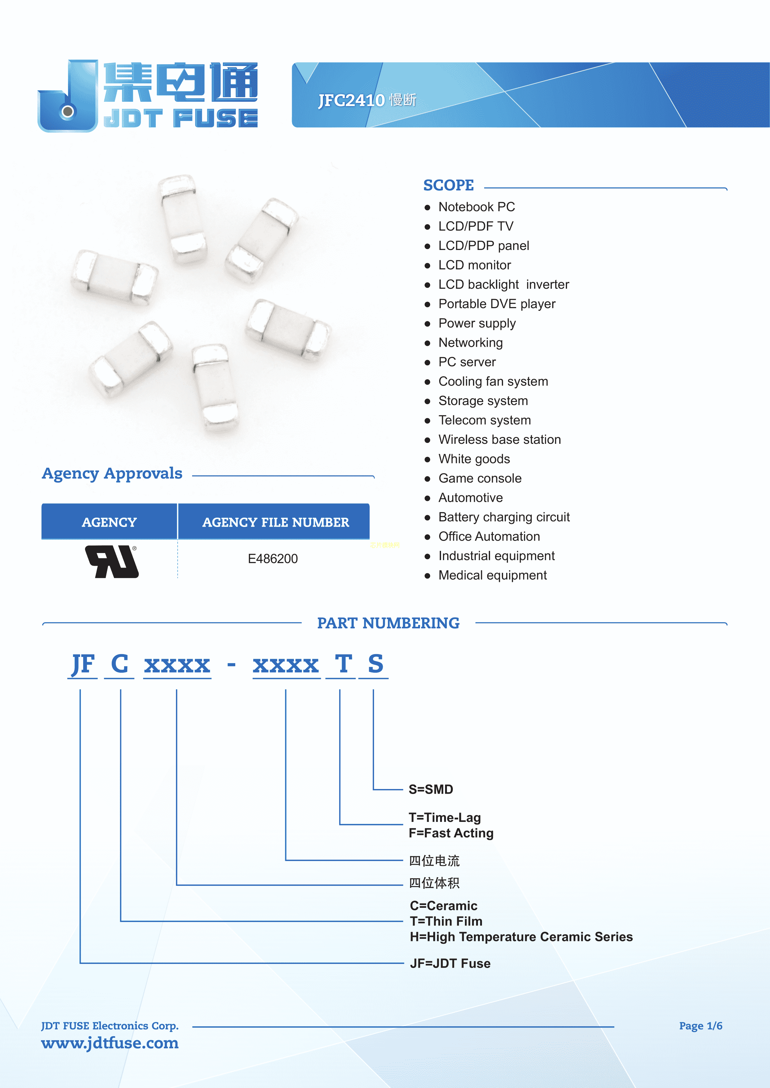 JFC2410-1100TS数据手册SMD封装JDTfuse(集电通)PDF规格书,中英文下载