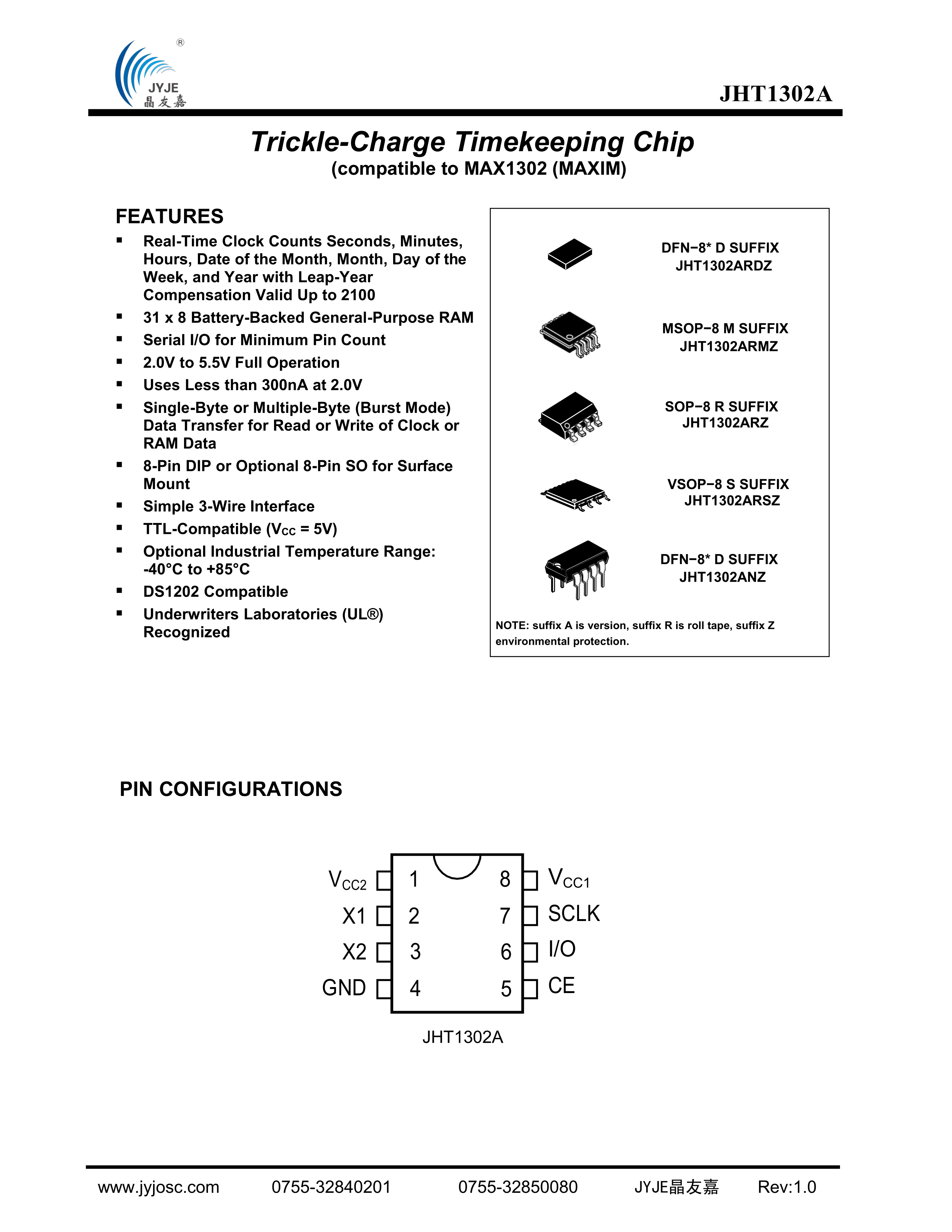 JHT1302ARZ数据手册SOP-8封装JYJE(晶友嘉)PDF规格书,中英文下载