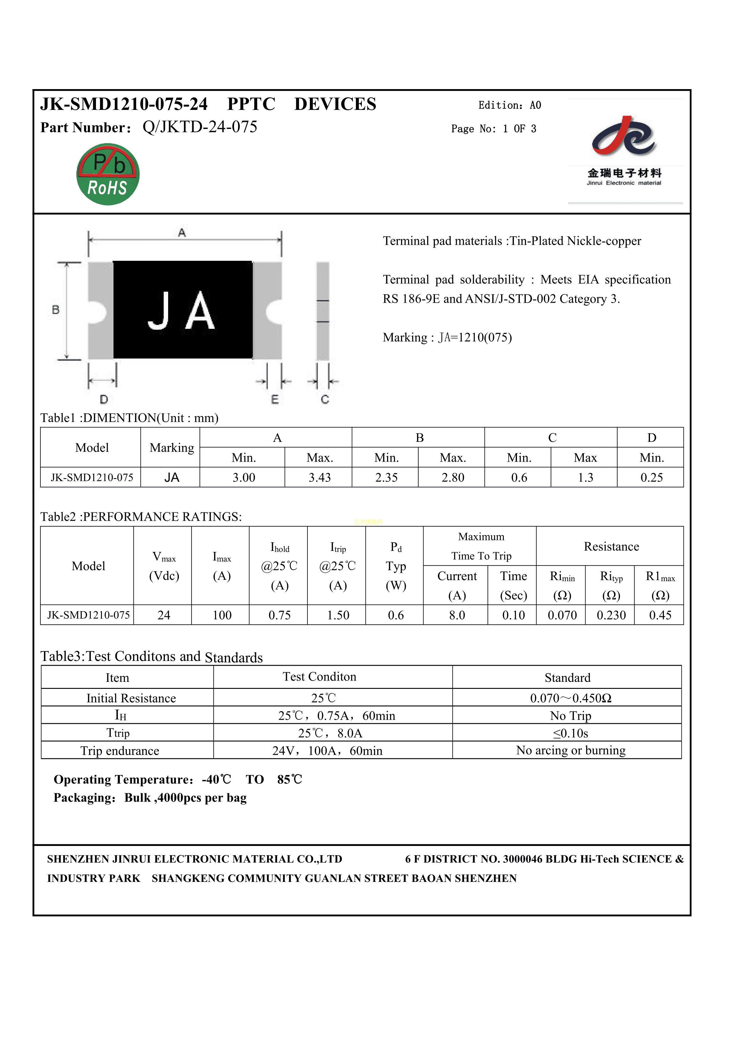 JK-SMD1210-075-24V数据手册1210封装JK(金科)PDF规格书,中英文下载