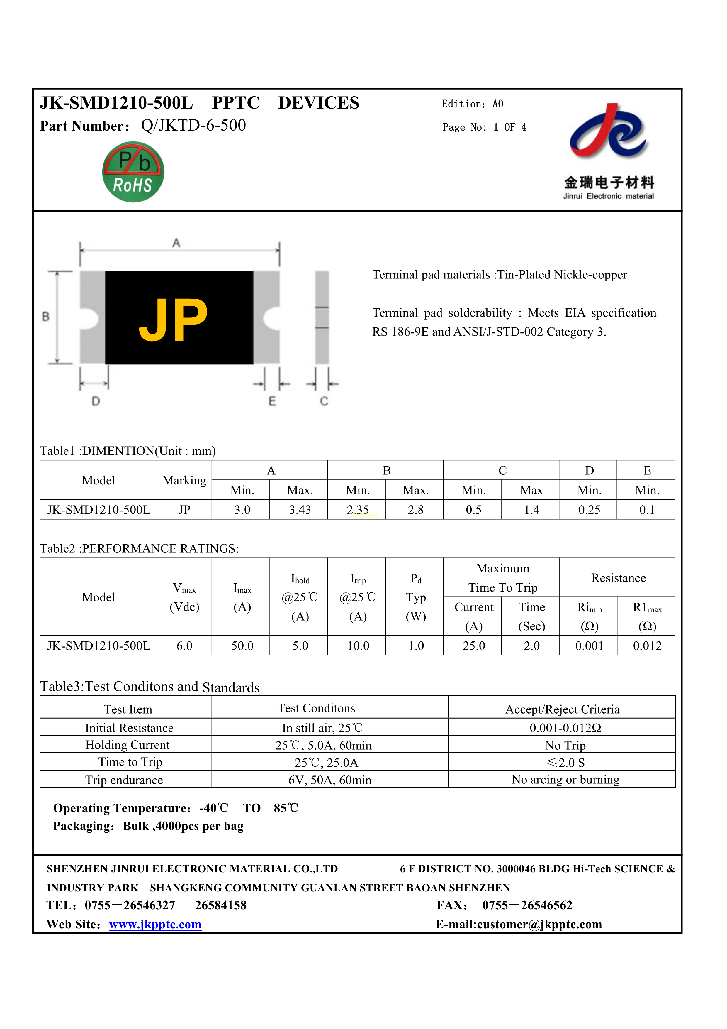 JK-SMD1210-500L数据手册SMD封装JK(金科)PDF规格书,中英文下载