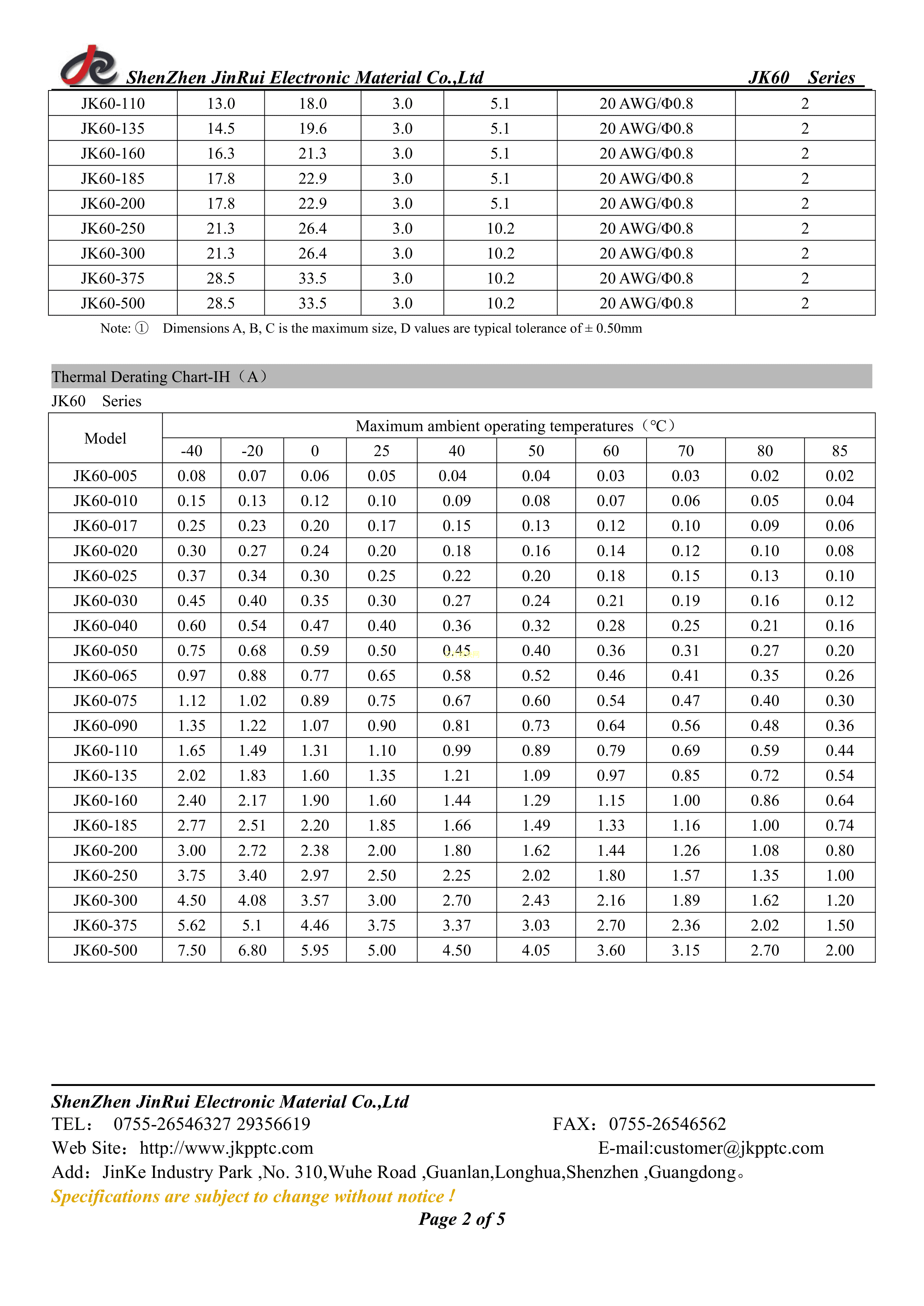 JK60-010数据手册径向引线P5.1mm封装JK(金科)PDF规格书,中英文下载