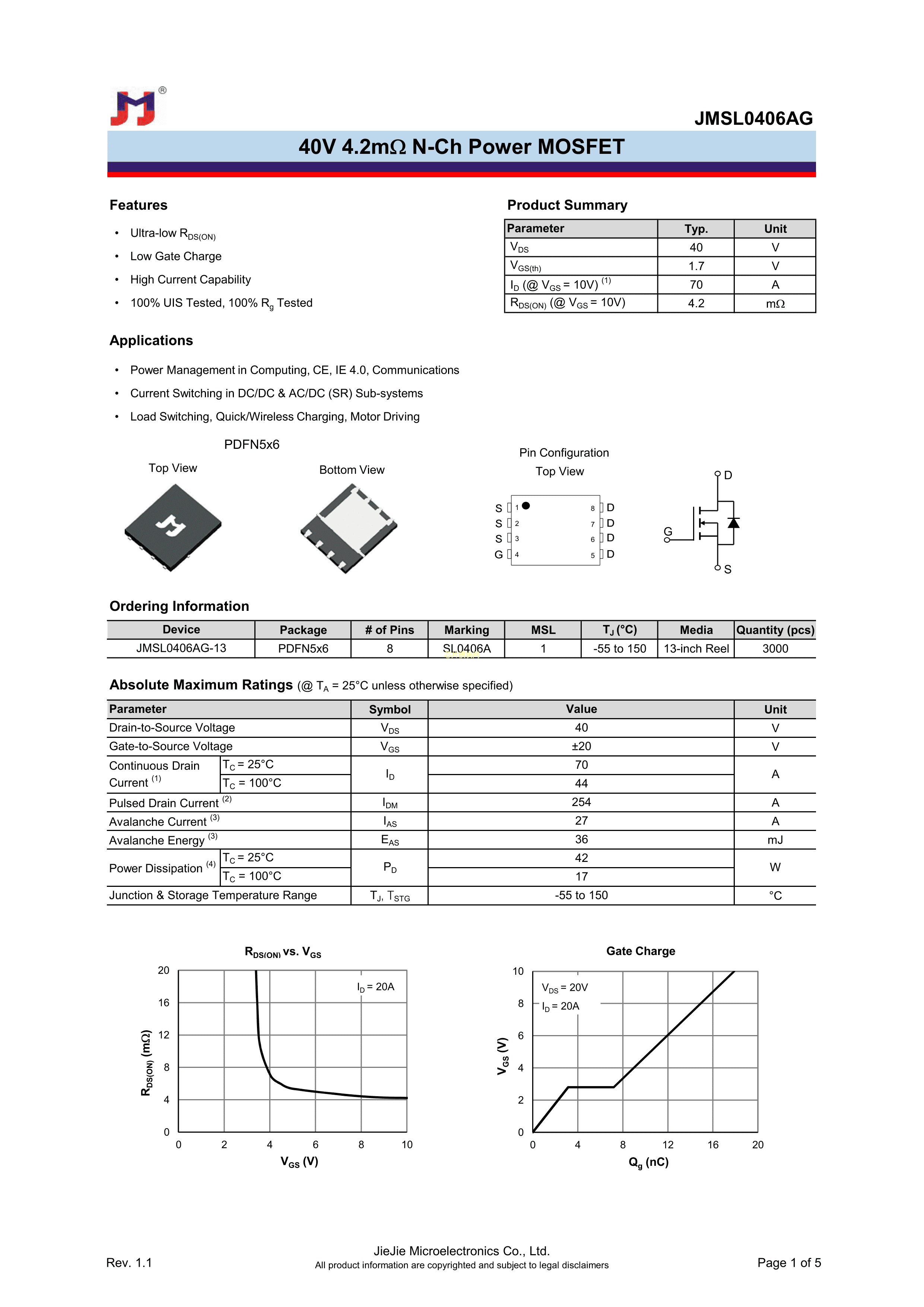 JMSL0406AG数据手册PDFN(5x6)封装JJW(捷捷微)PDF规格书,中英文下载