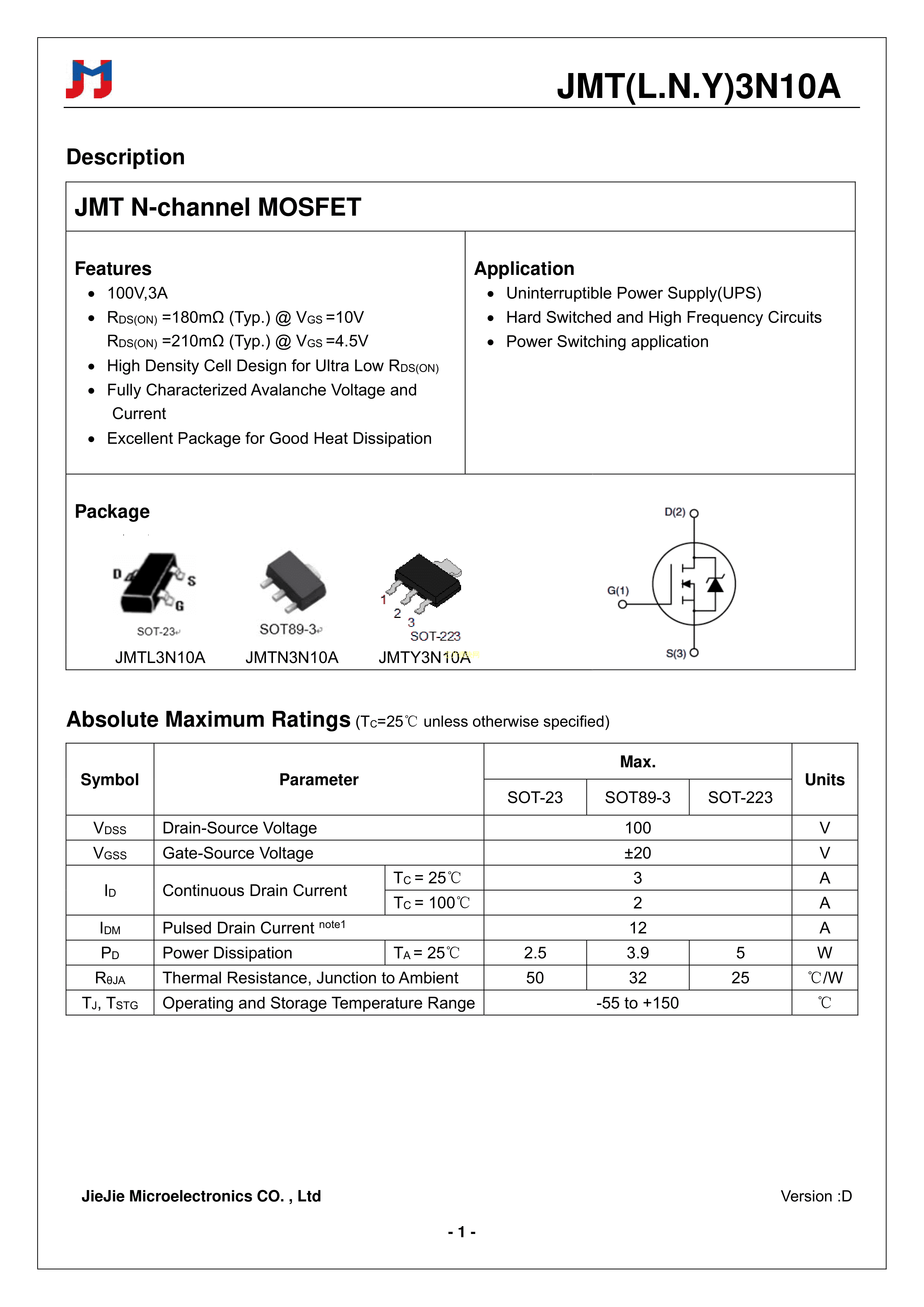JMTL3N10A数据手册SOT-23封装JJW(捷捷微)PDF规格书,中英文下载