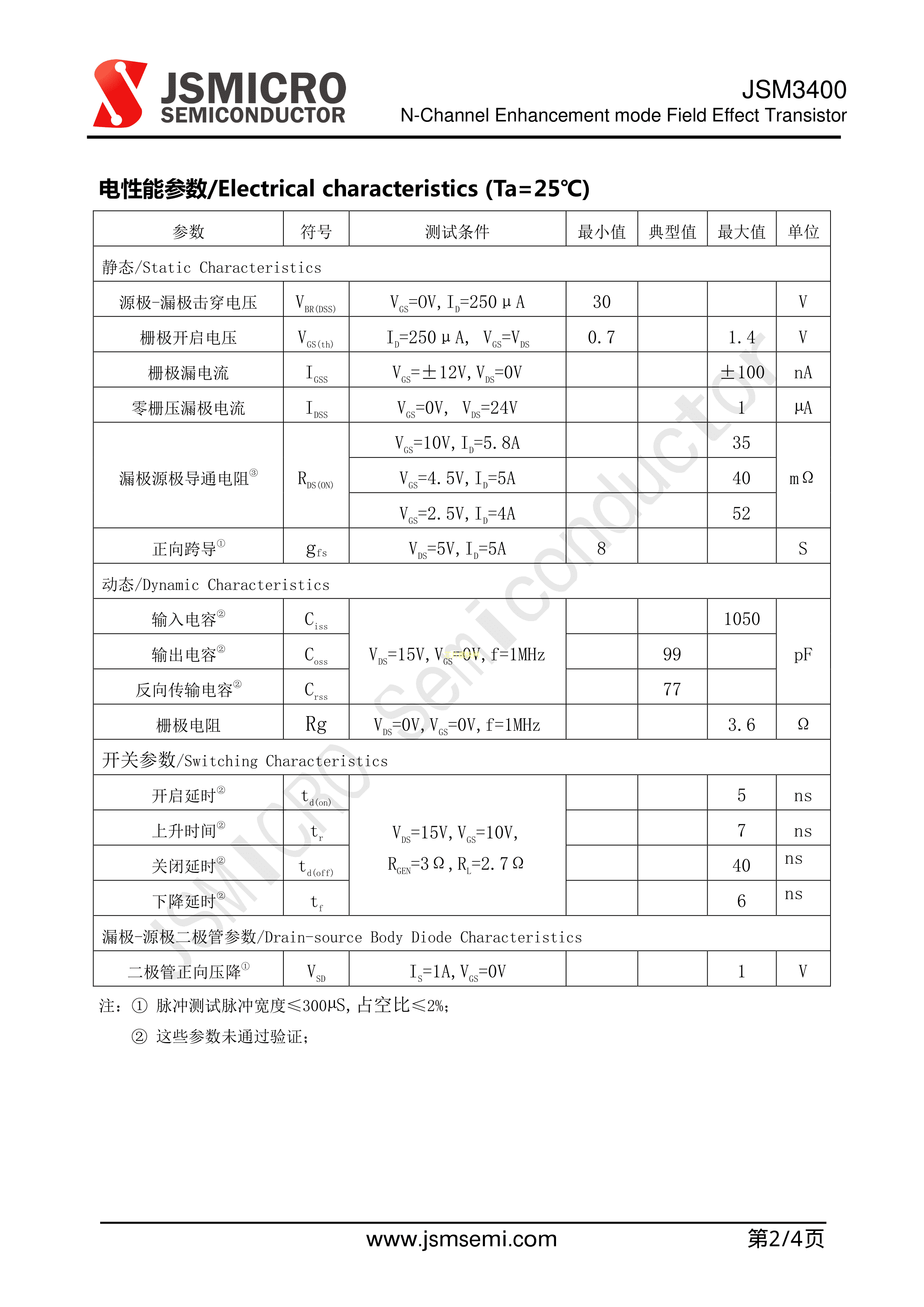 JSM3400数据手册SOT-23封装JSMSEMI(杰盛微)PDF规格书,中英文下载