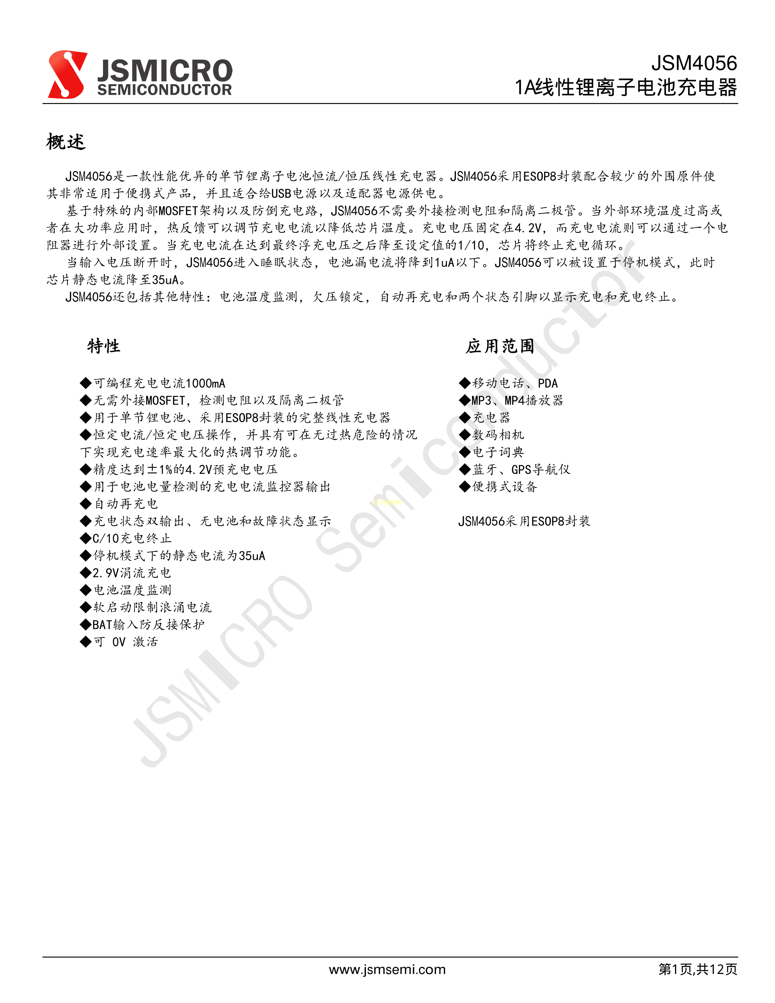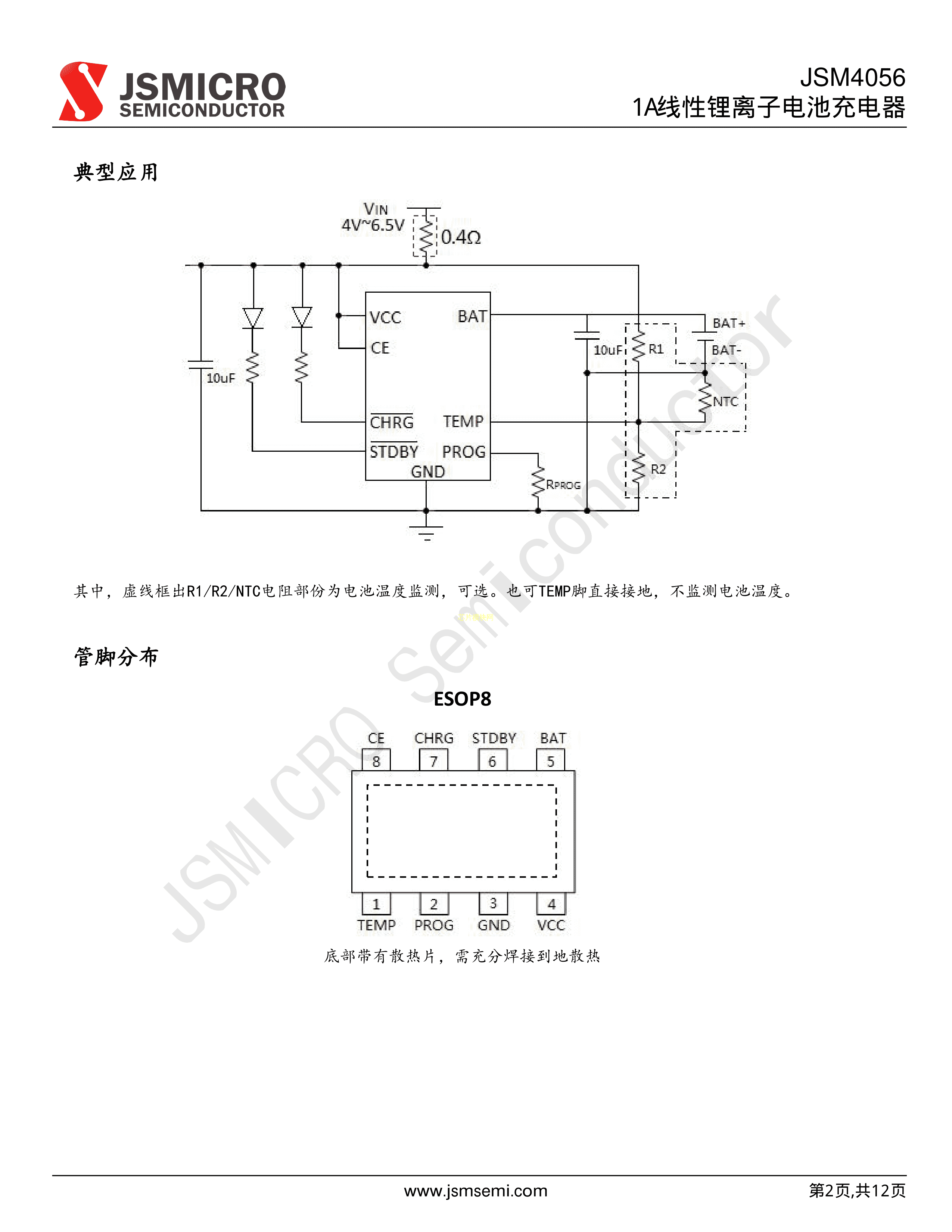 JSM4056数据手册ESOP-8封装JSMSEMI(杰盛微)PDF规格书,中英文下载
