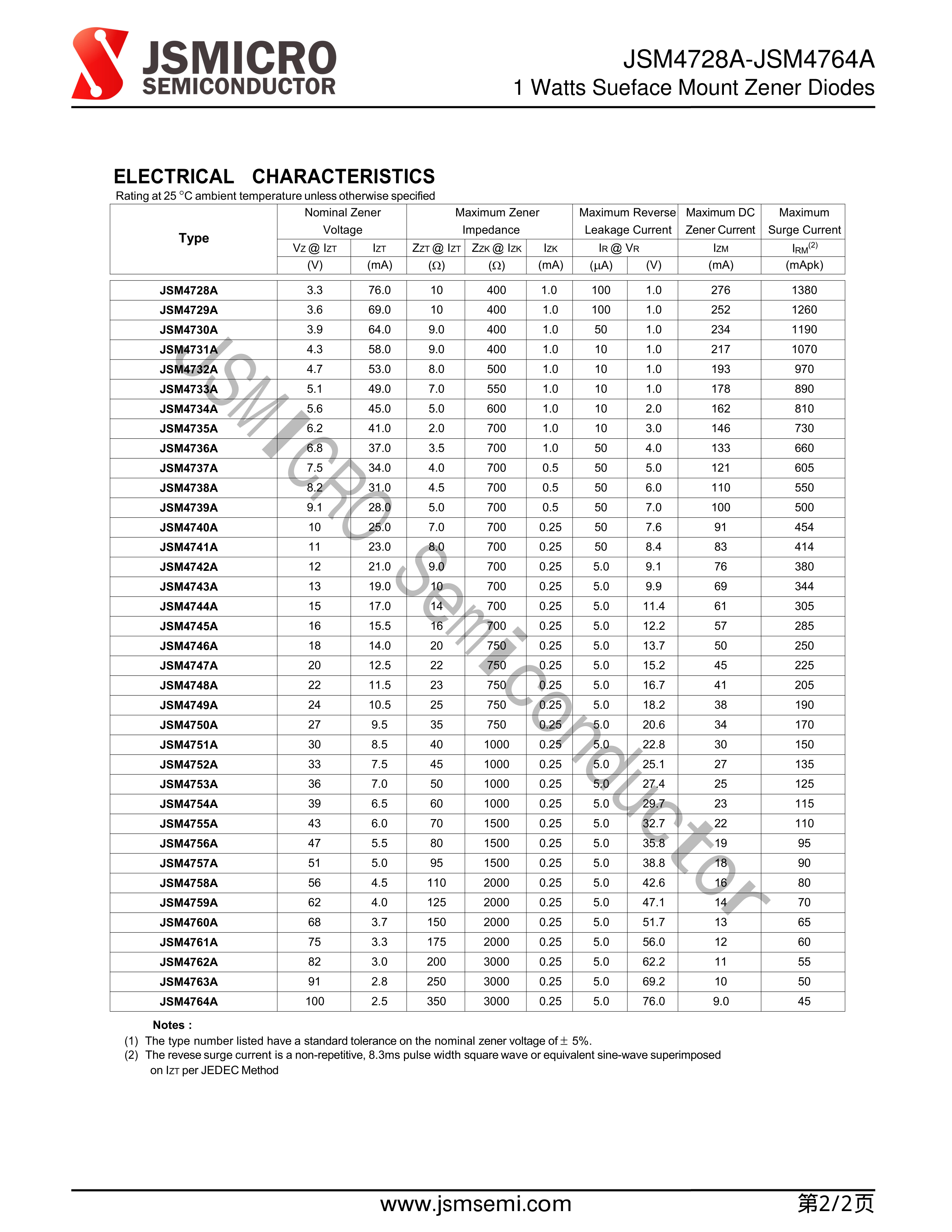 JSM4734A数据手册SMA封装JSMSEMI(杰盛微)PDF规格书,中英文下载