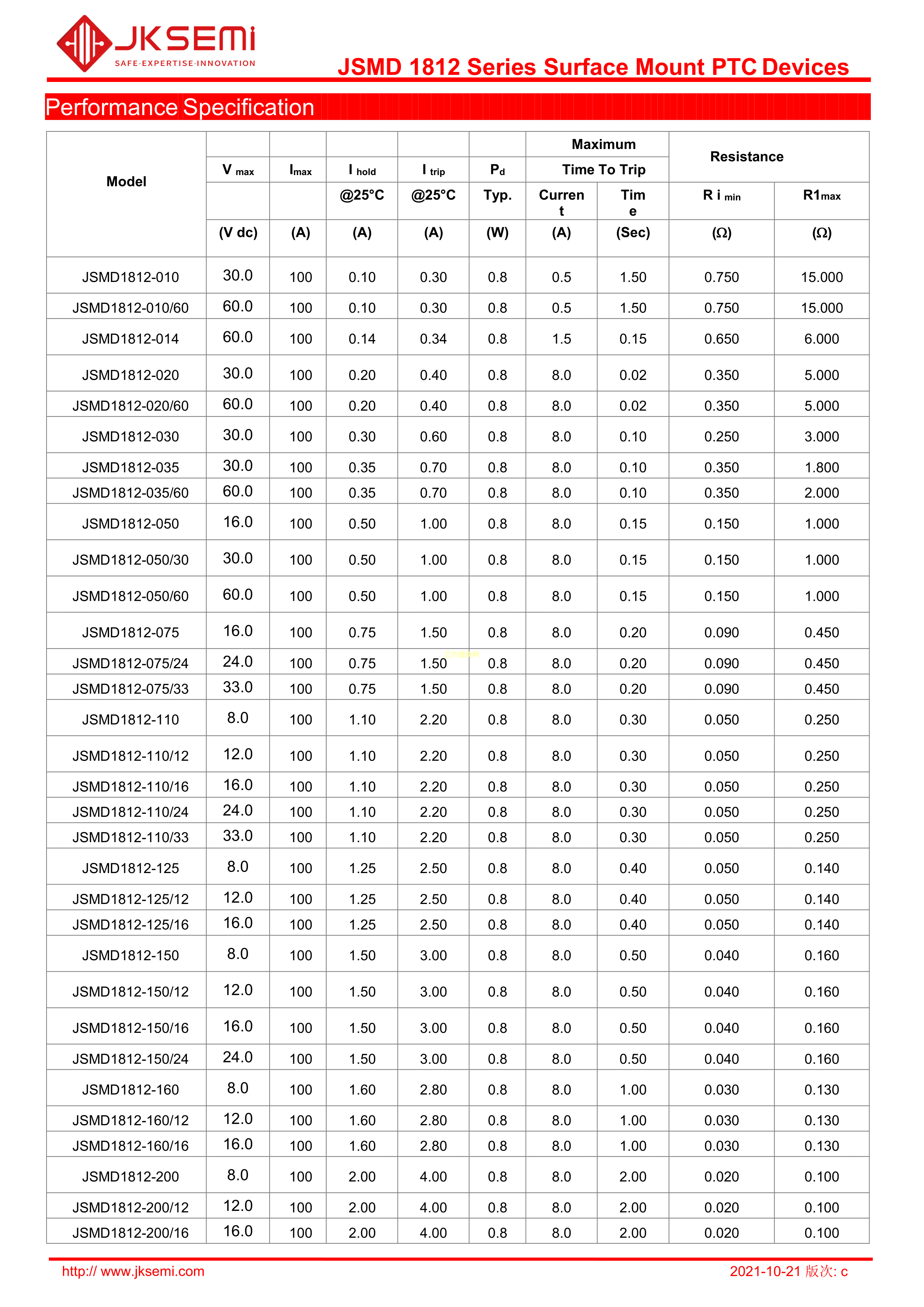 JSMD1812-014数据手册1812封装JKSEMI(金开盛)PDF规格书,中英文下载