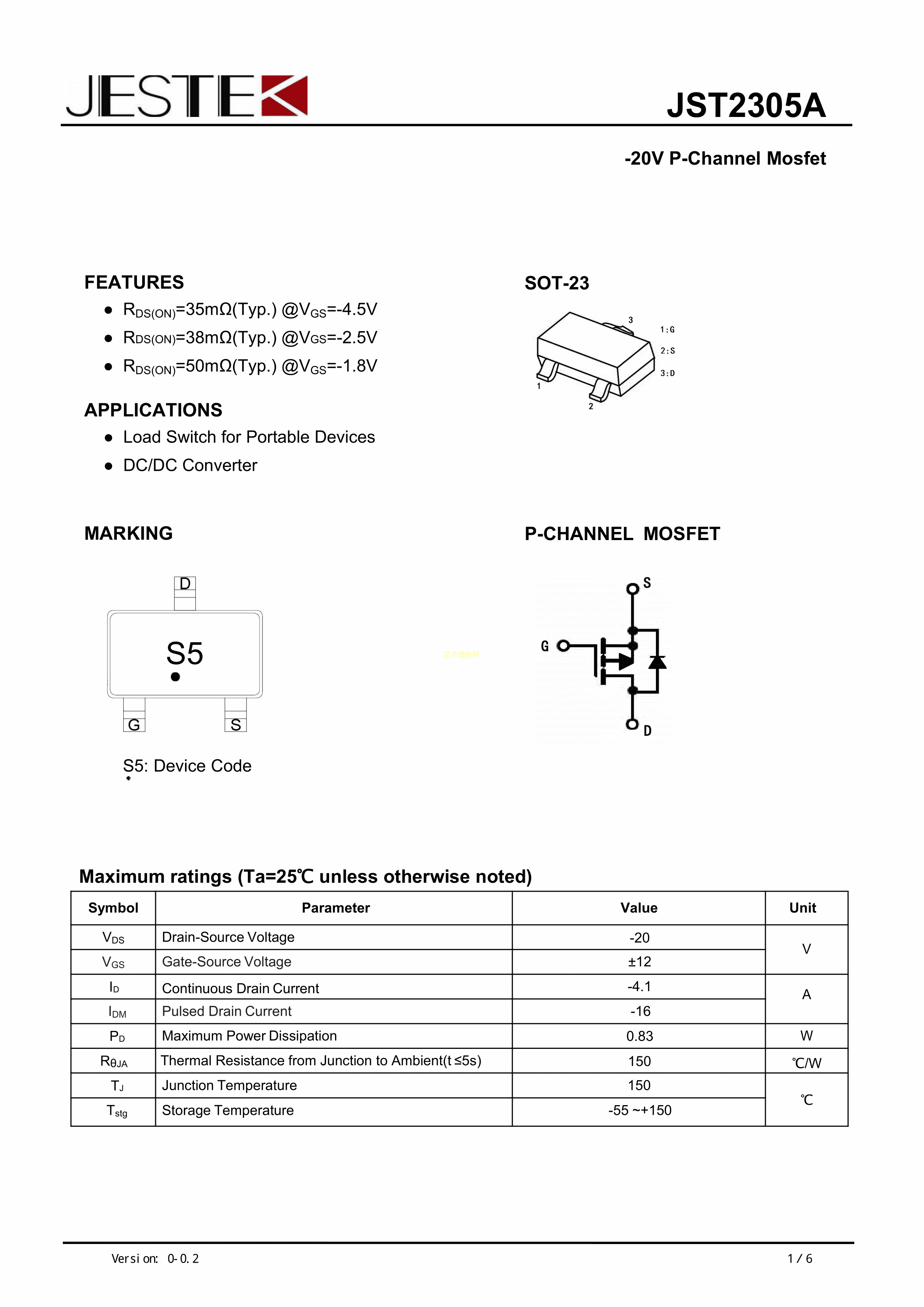 JST2305A数据手册SOT-23封装JESTEK(吉思泰)PDF规格书,中英文下载