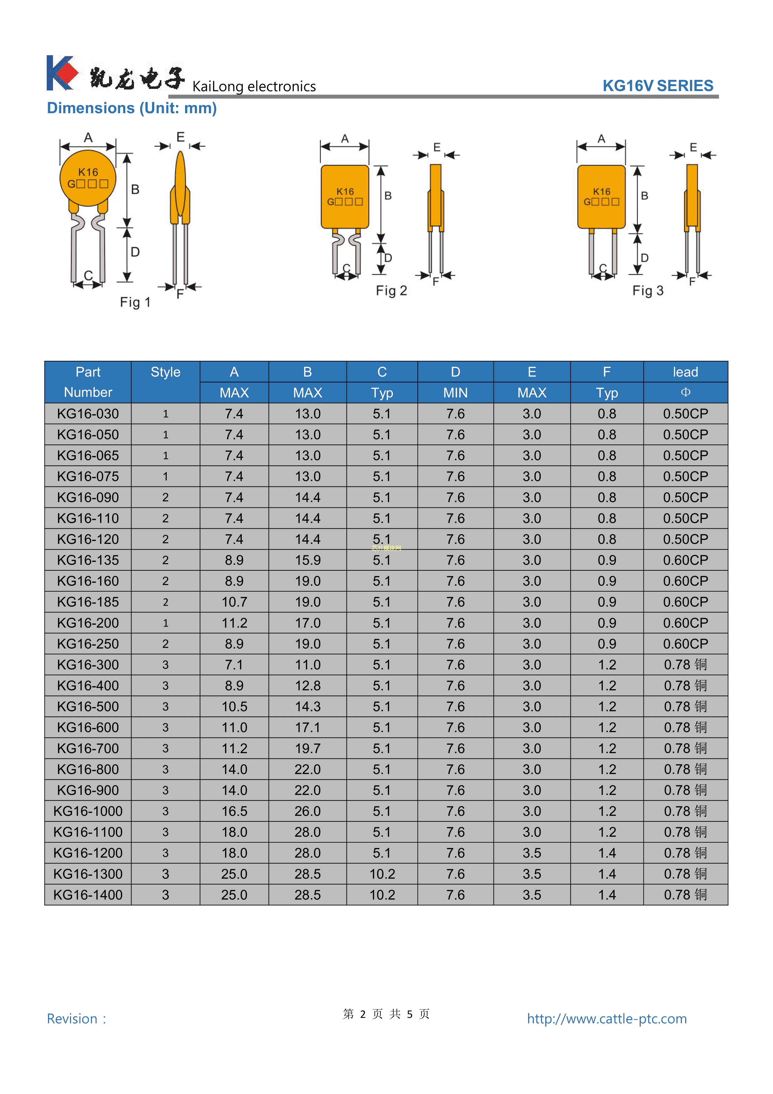 K16G400数据手册径向引线P5.1mm封装KAILONG(凯龙)PDF规格书,中英文下载