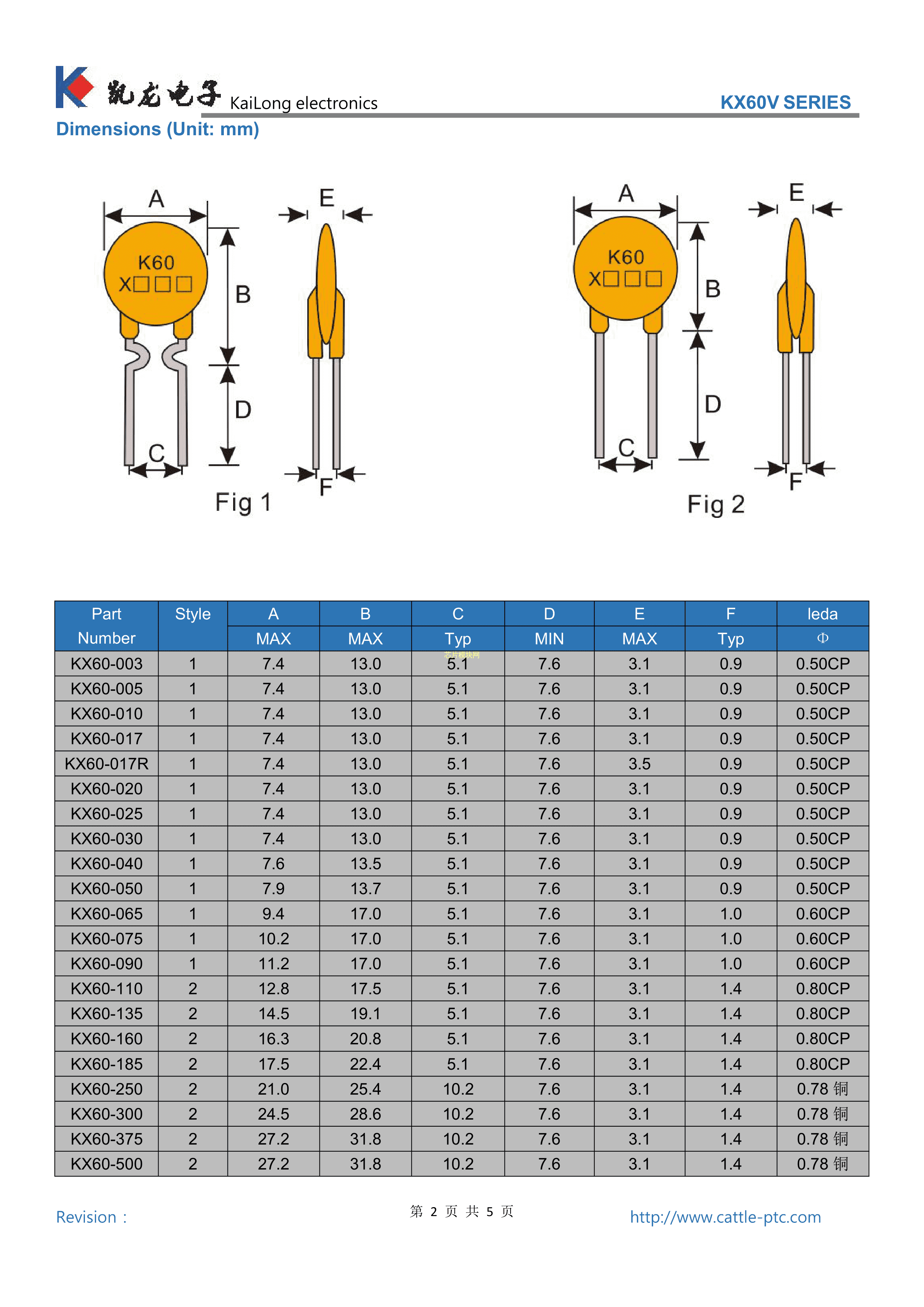 K60X025数据手册径向引线P5.1mm封装KAILONG(凯龙)PDF规格书,中英文下载