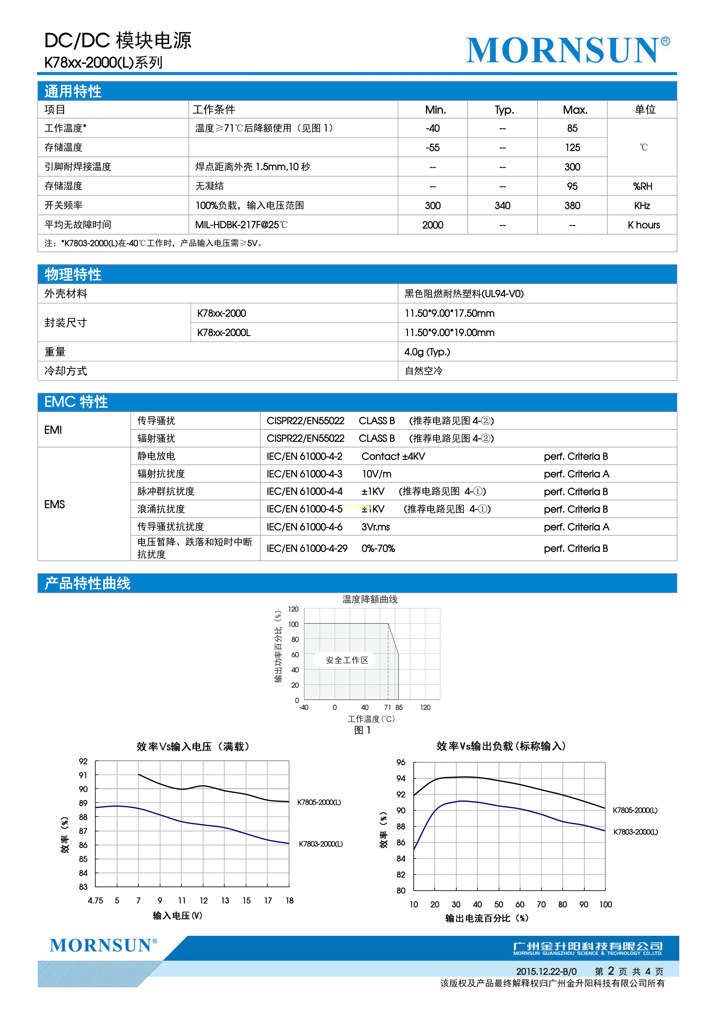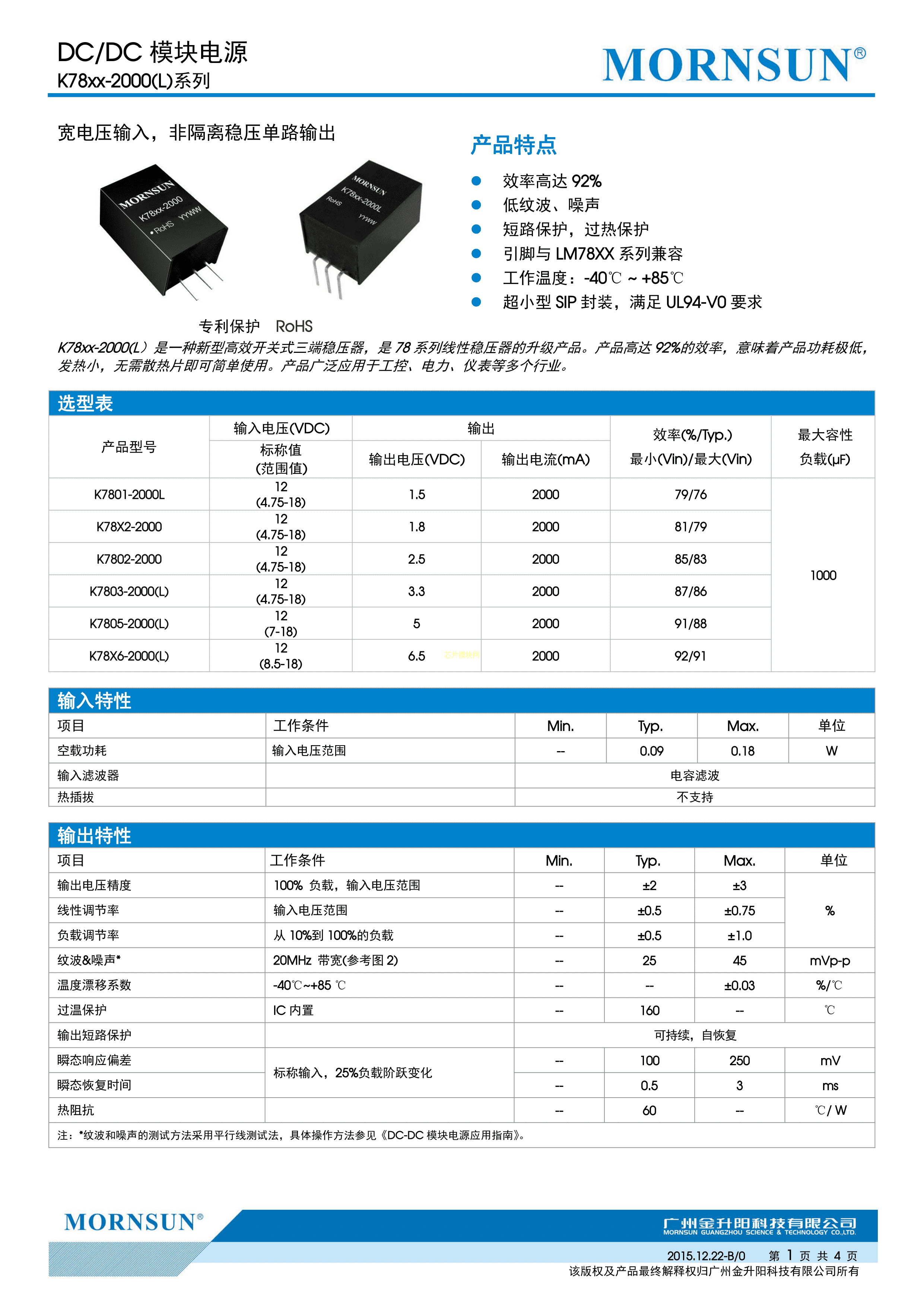 K7805-2000L数据手册插件封装MORNSUN(金升阳)PDF规格书,中英文下载