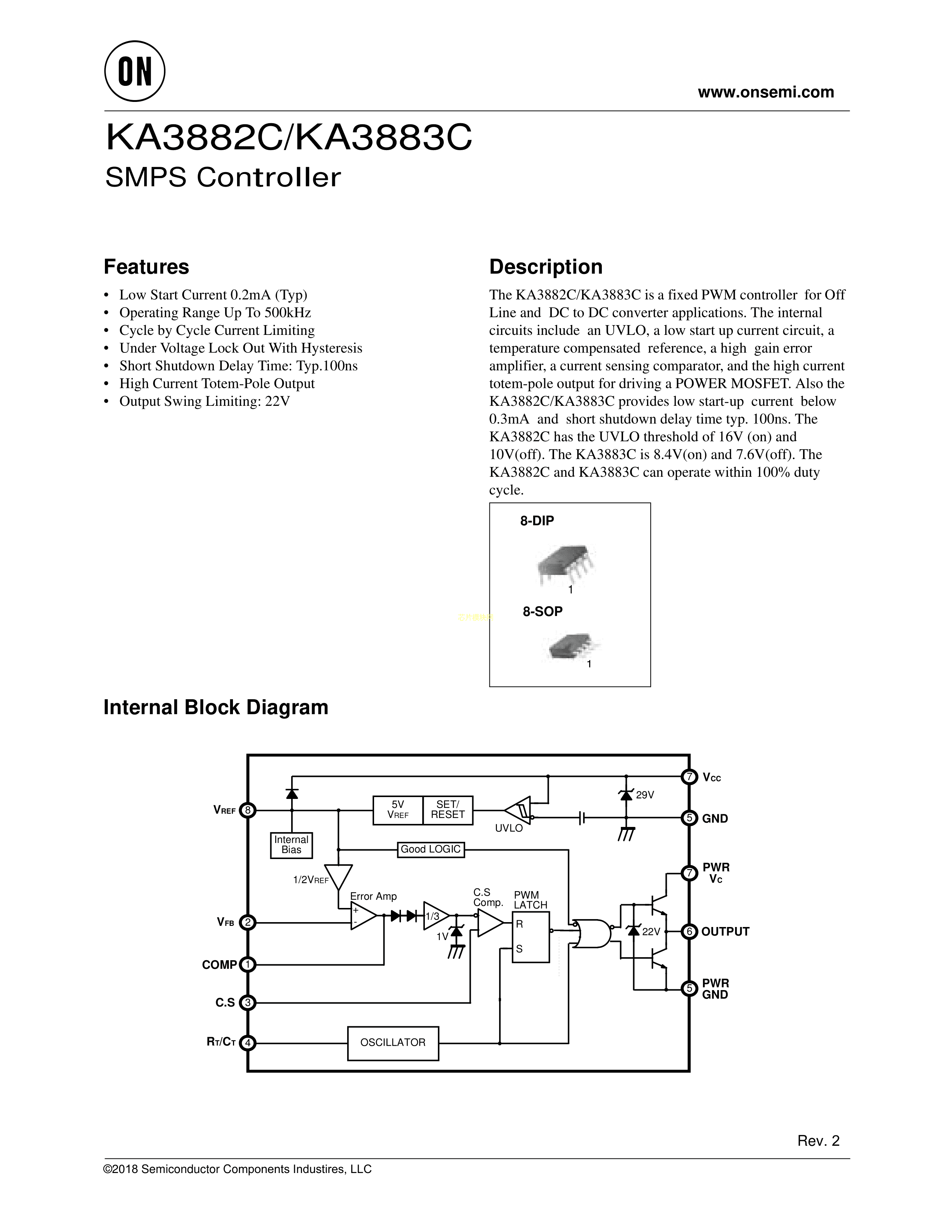 KA3883CDTF数据手册SOP-8封装onsemi(安森美)PDF规格书,中英文下载