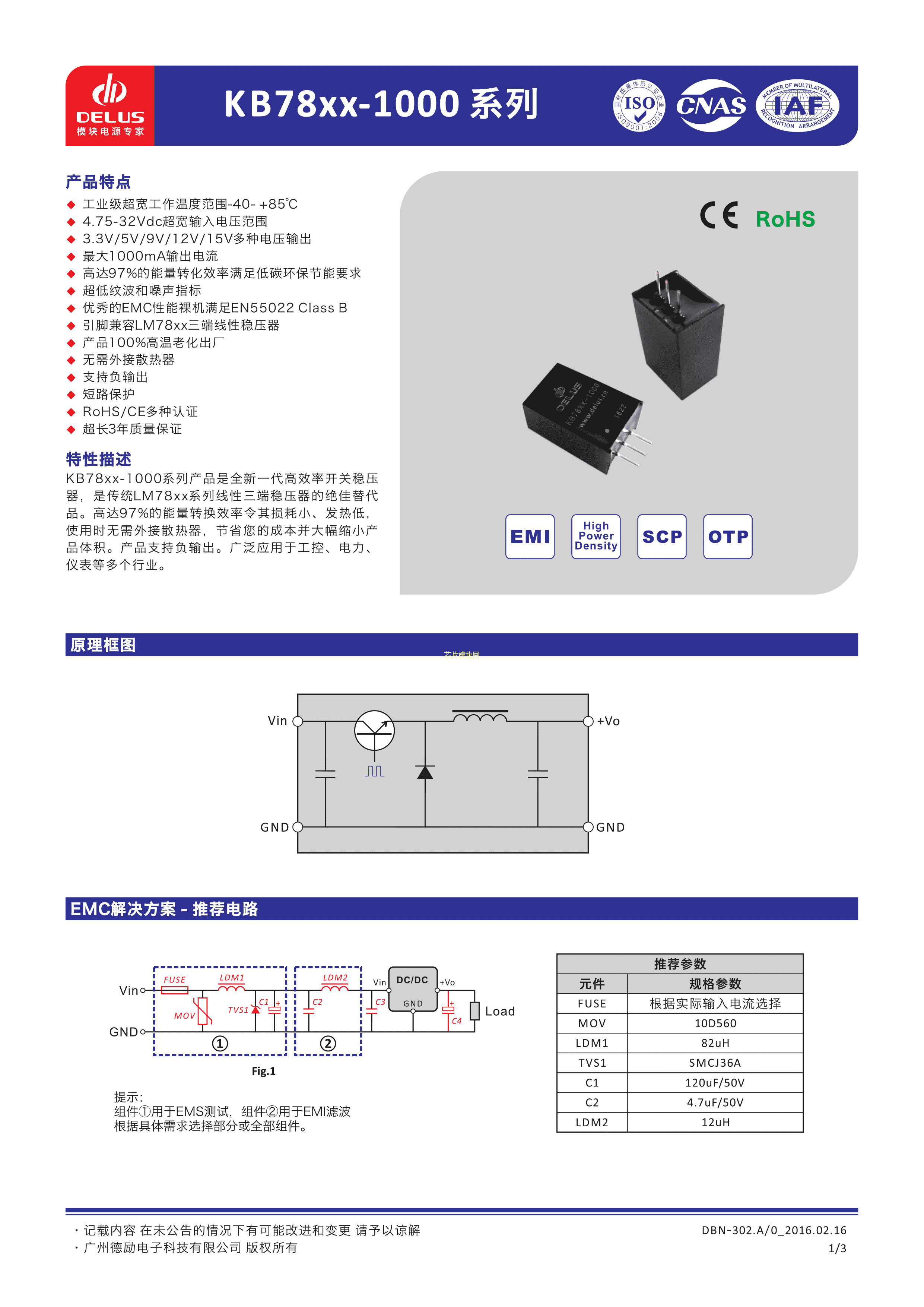 KB7812-1000数据手册插件封装Delus(德励)PDF规格书,中英文下载