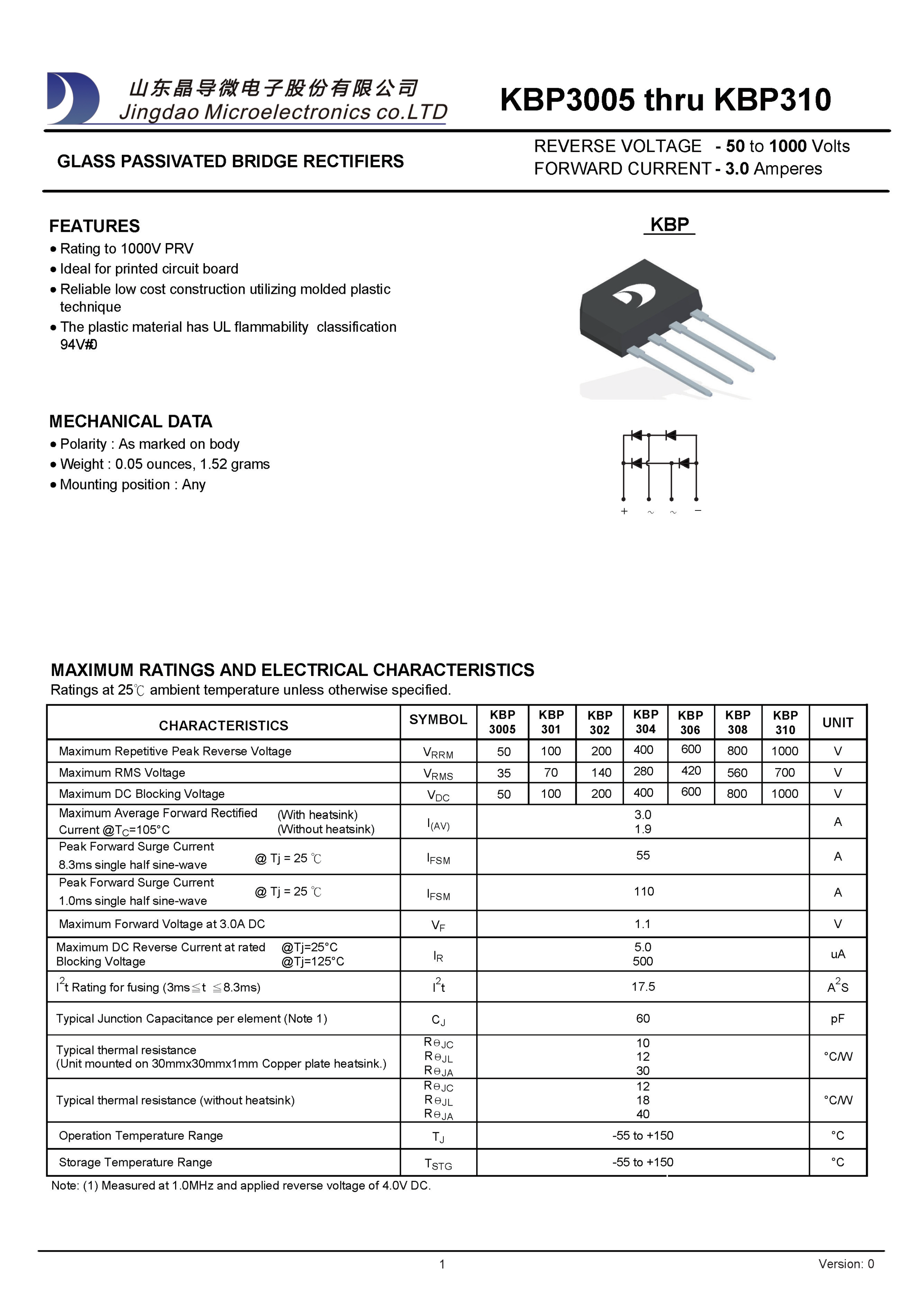 KBP308数据手册KBP封装晶导微电子.pdf