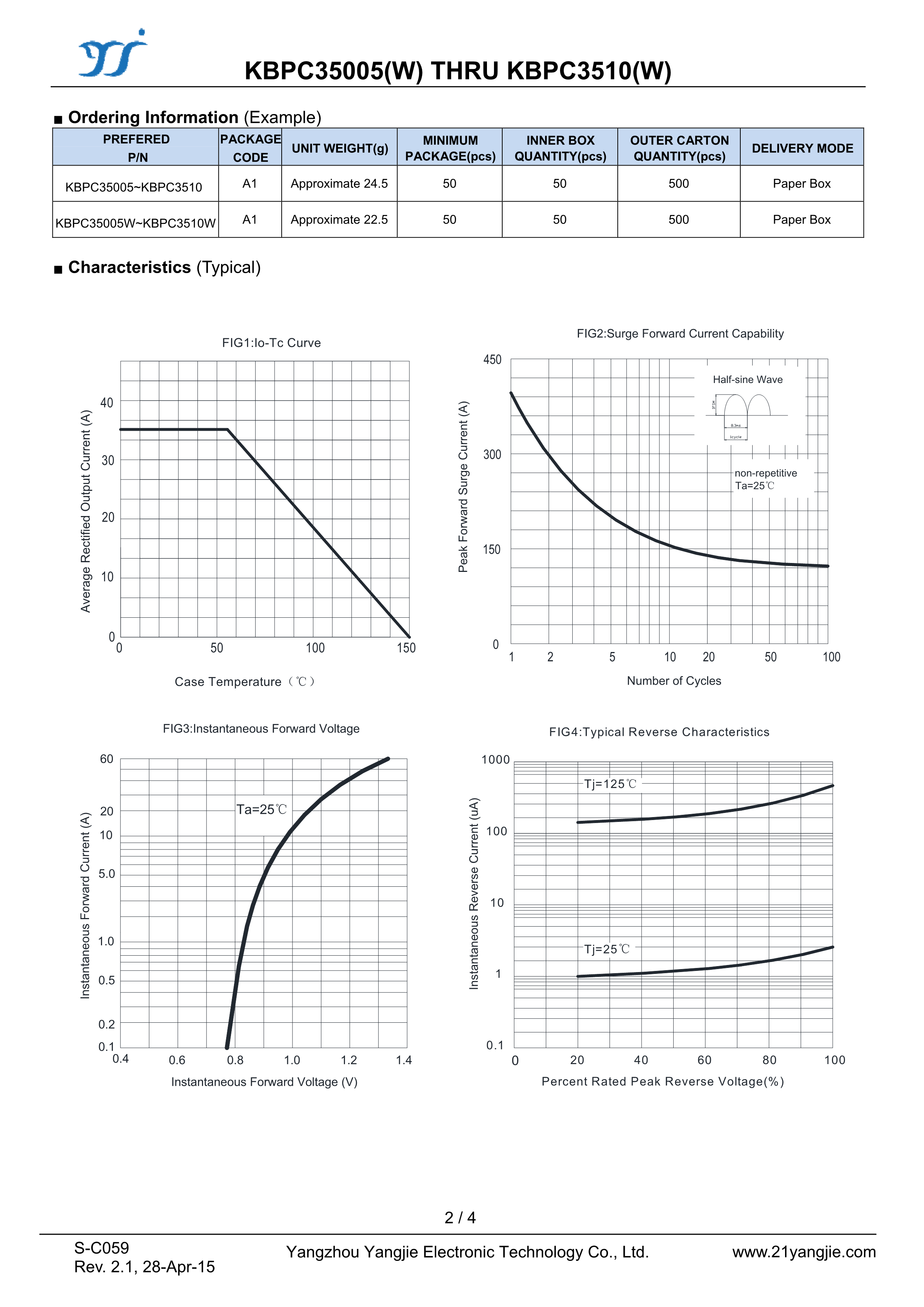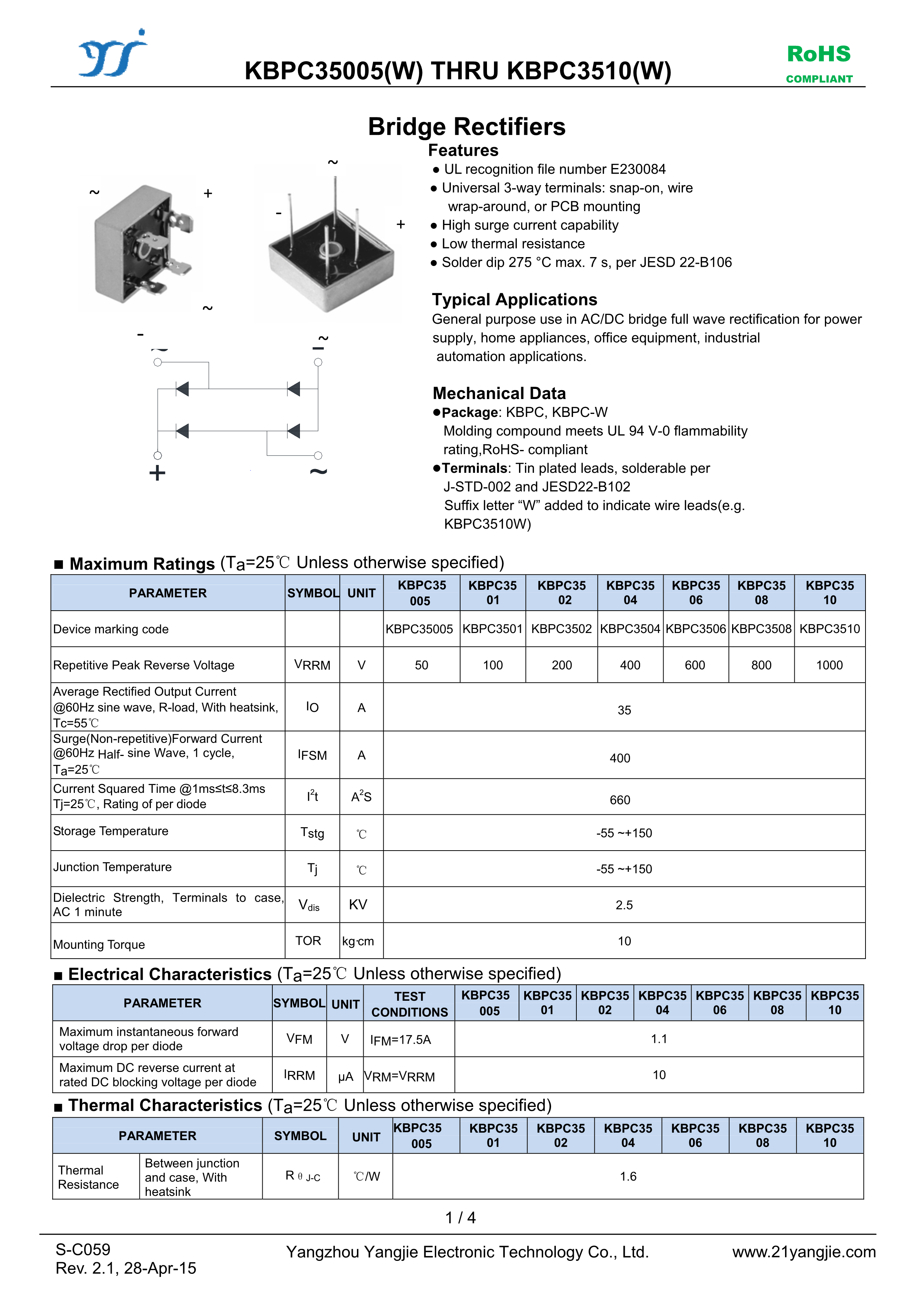 KBPC3508W数据手册KBPC-W封装YANGJIE(扬杰)PDF规格书,中英文下载