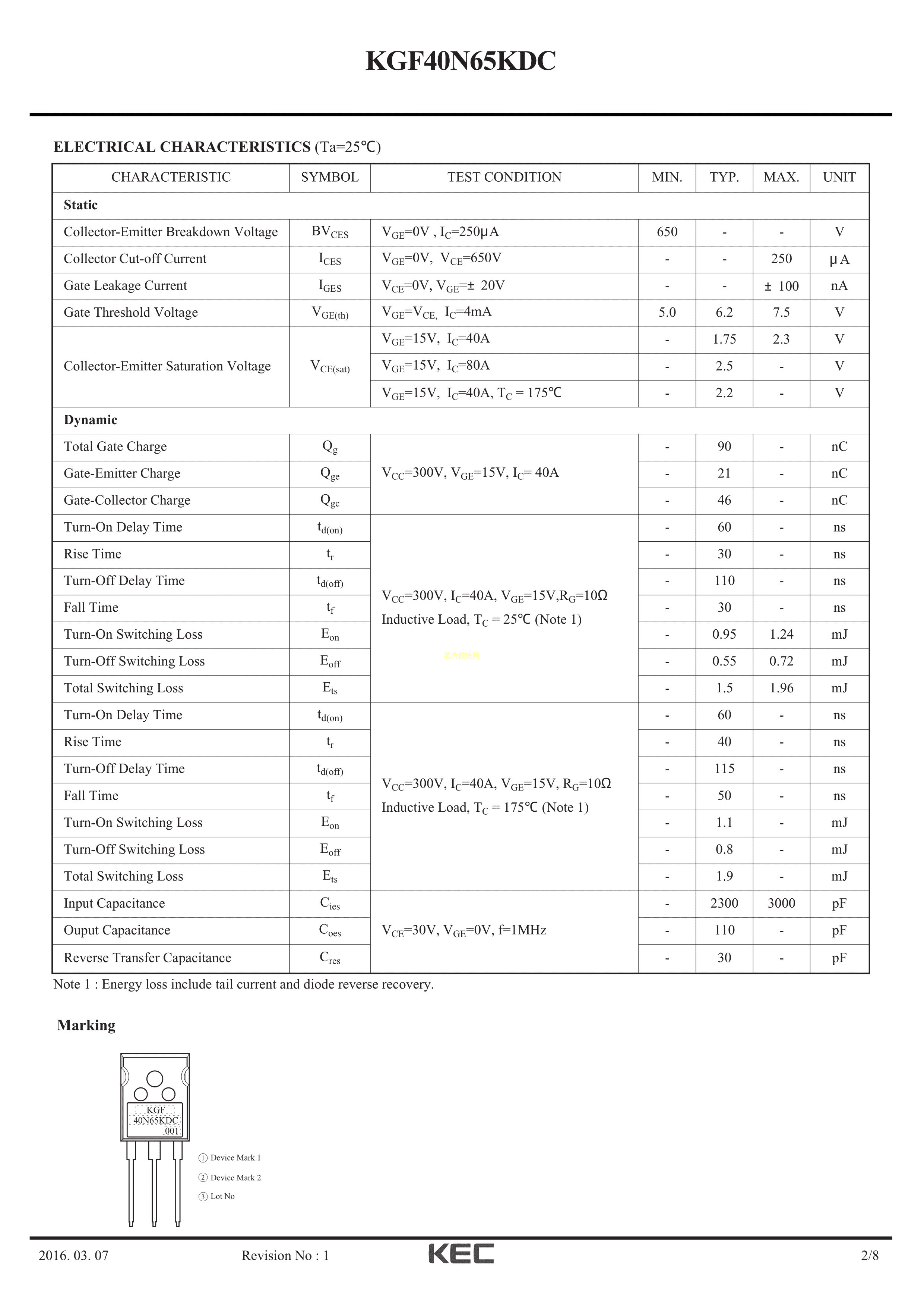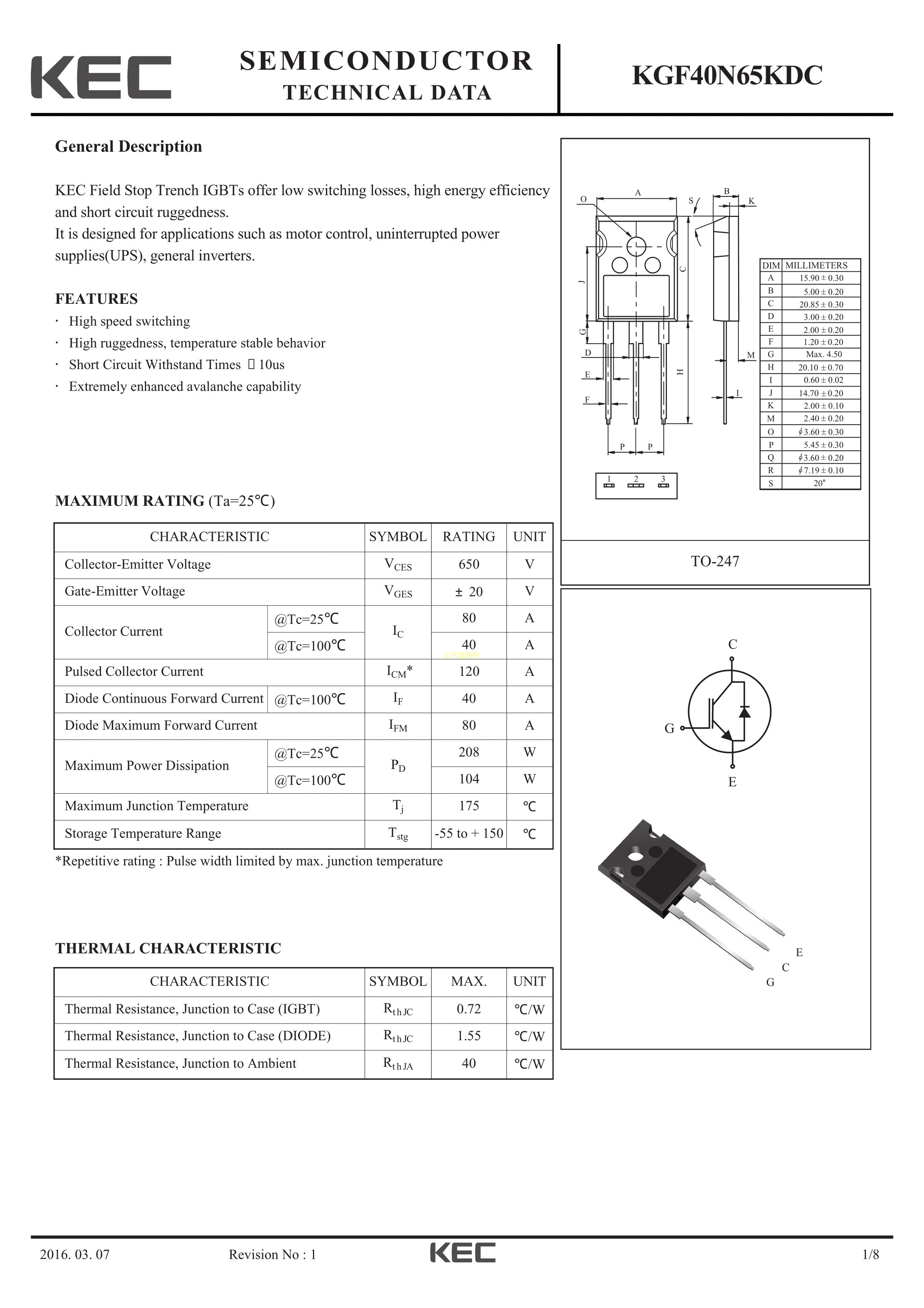 KGF40N65KDC数据手册TO-247封装KECPDF规格书,中英文下载