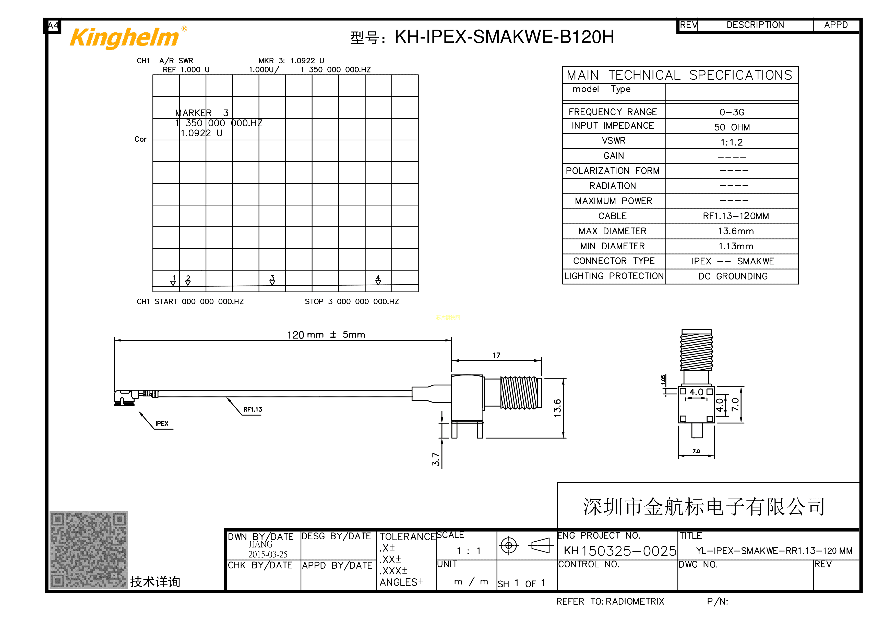 KH-IPEX-SMAKWE-B120H数据手册L120mm封装kinghelm(金航标)PDF规格书,中英文下载