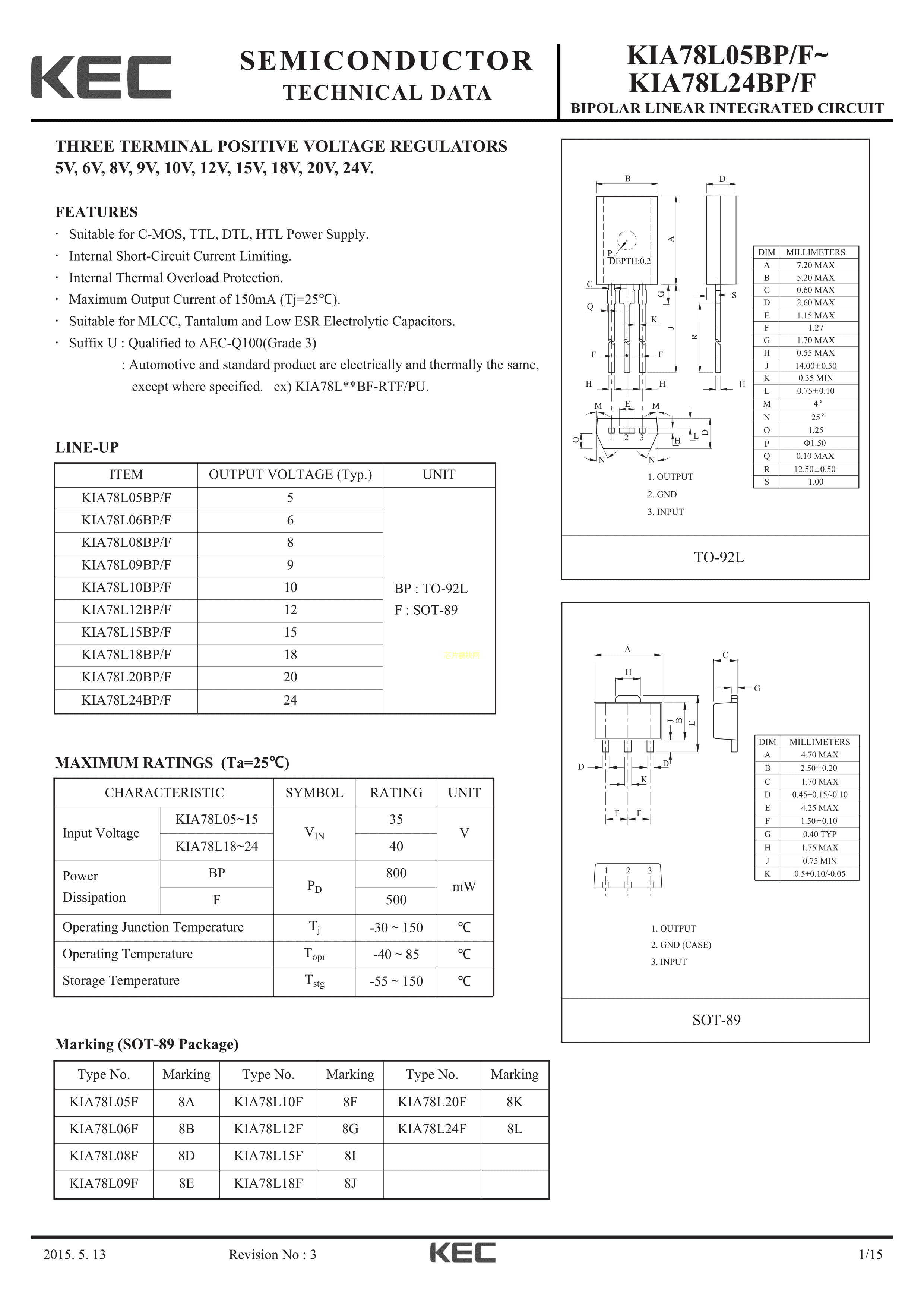 KIA78L08F-RTF-P数据手册SOT-89(SOT-89-3)封装KECPDF规格书,中英文