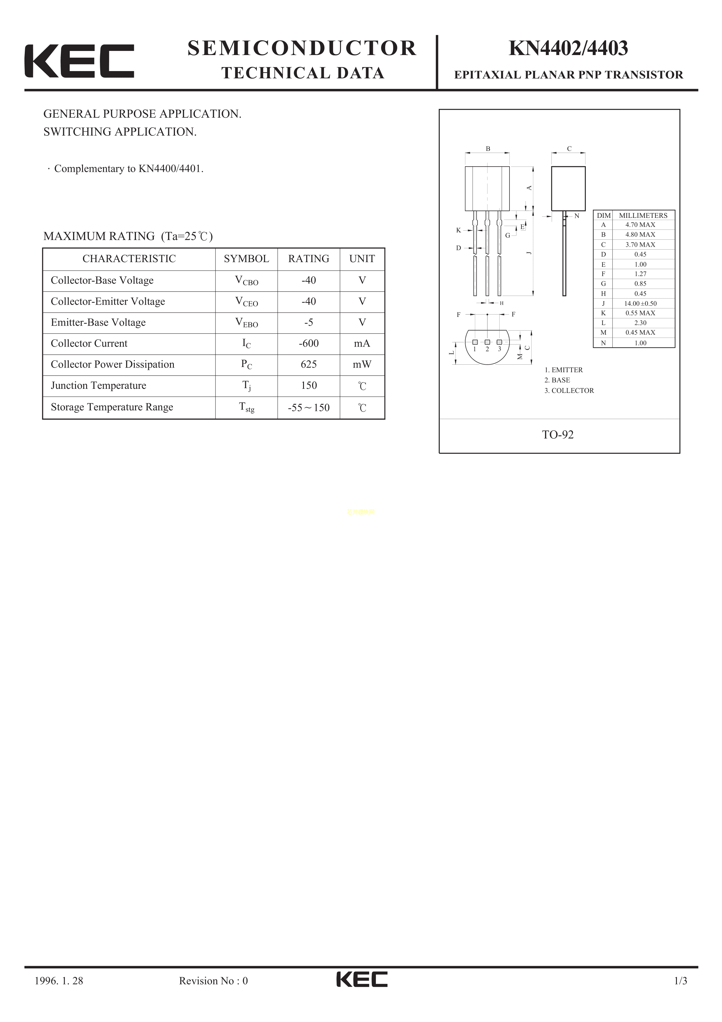KN4403-AT-P数据手册TO-92封装KECPDF规格书,中英文下载