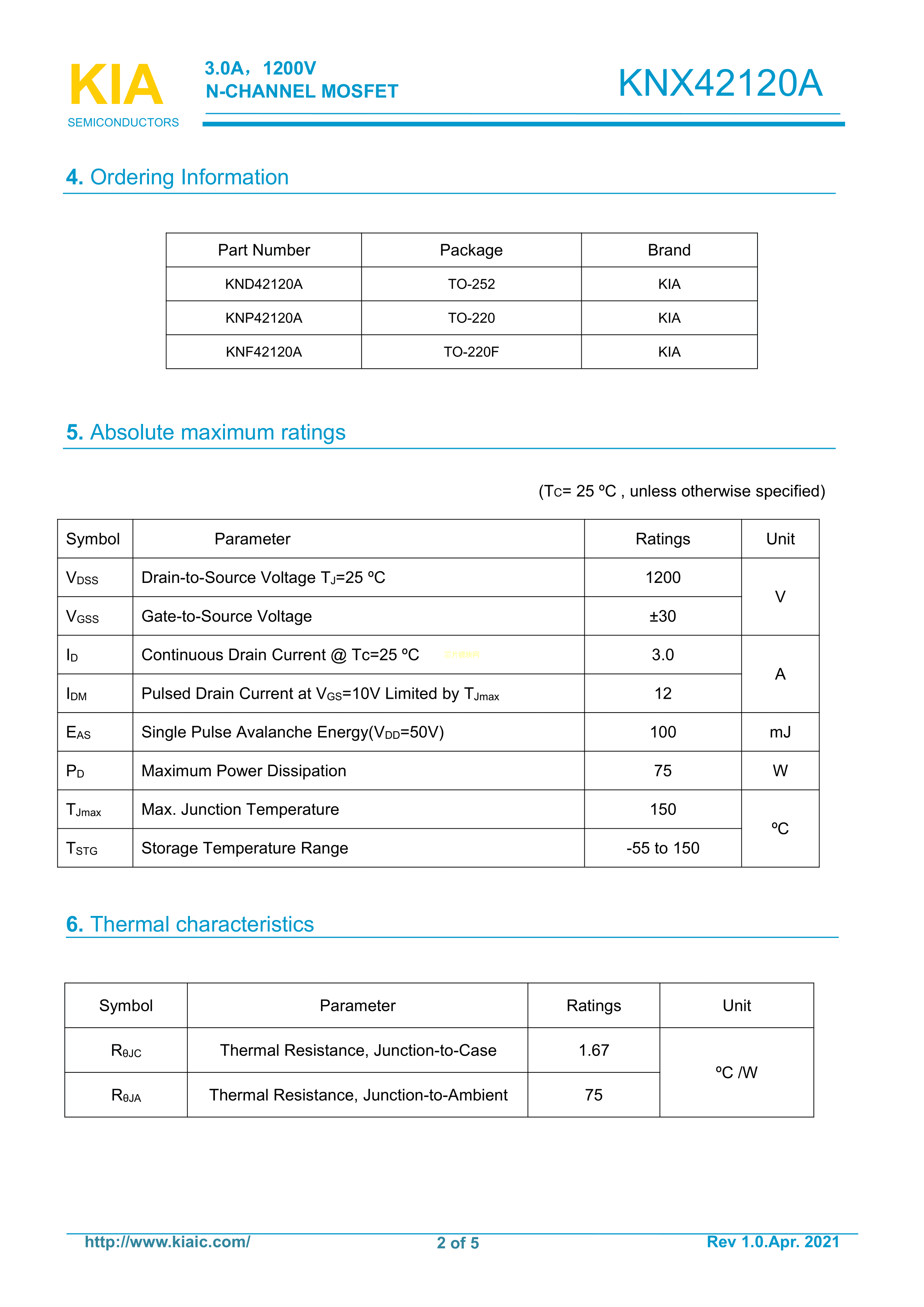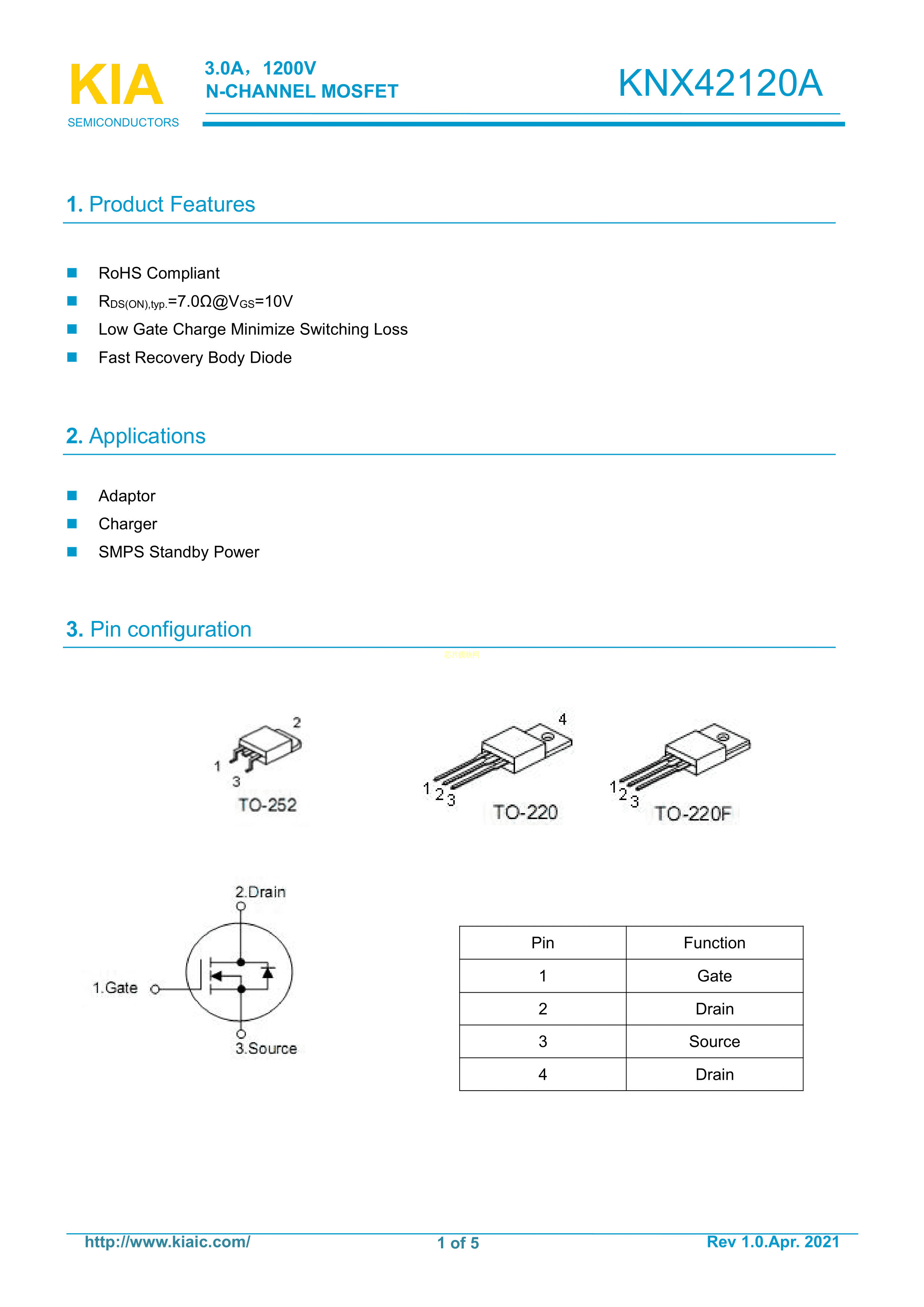 KND42120A数据手册TO-252封装KIAPDF规格书,中英文下载