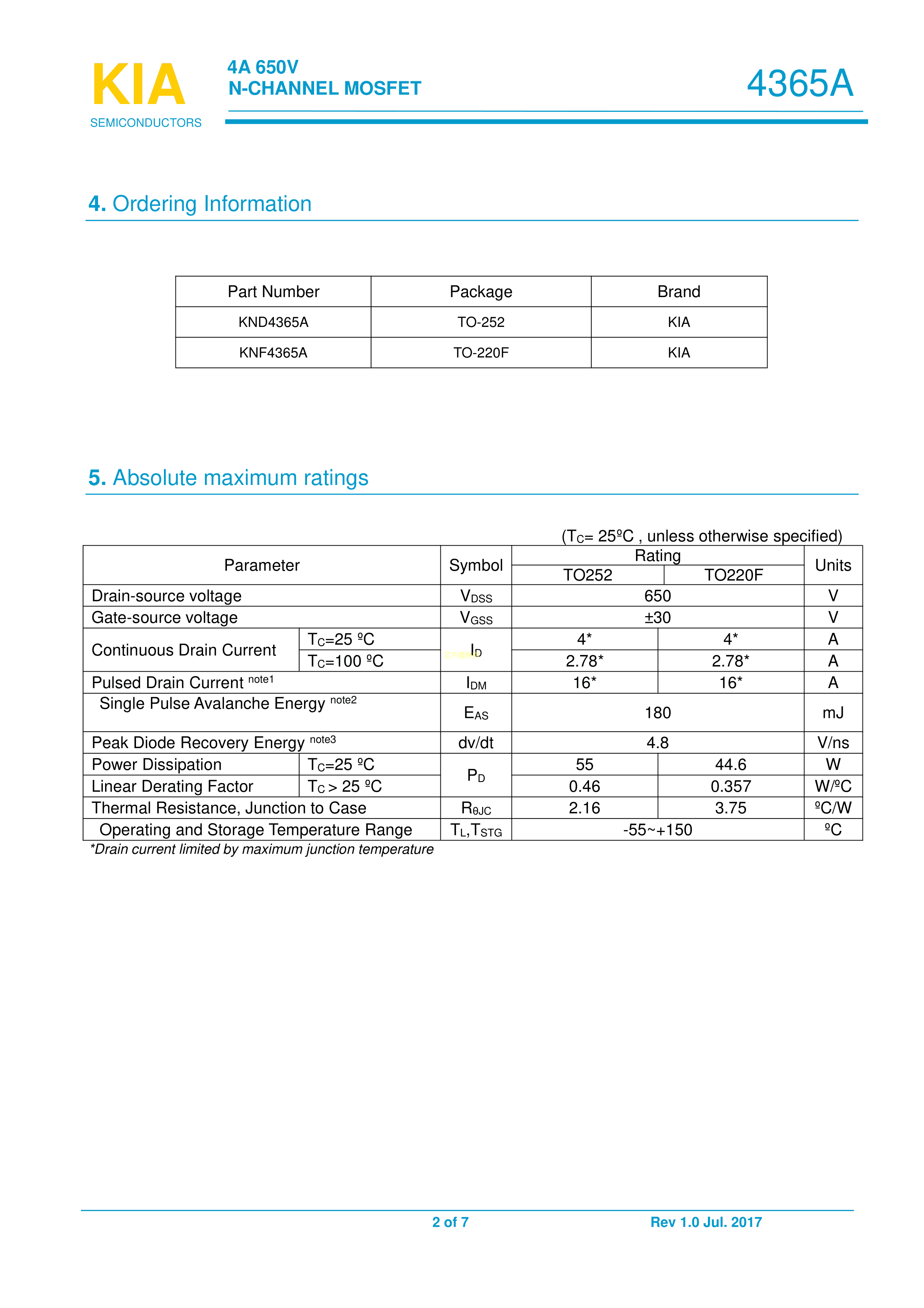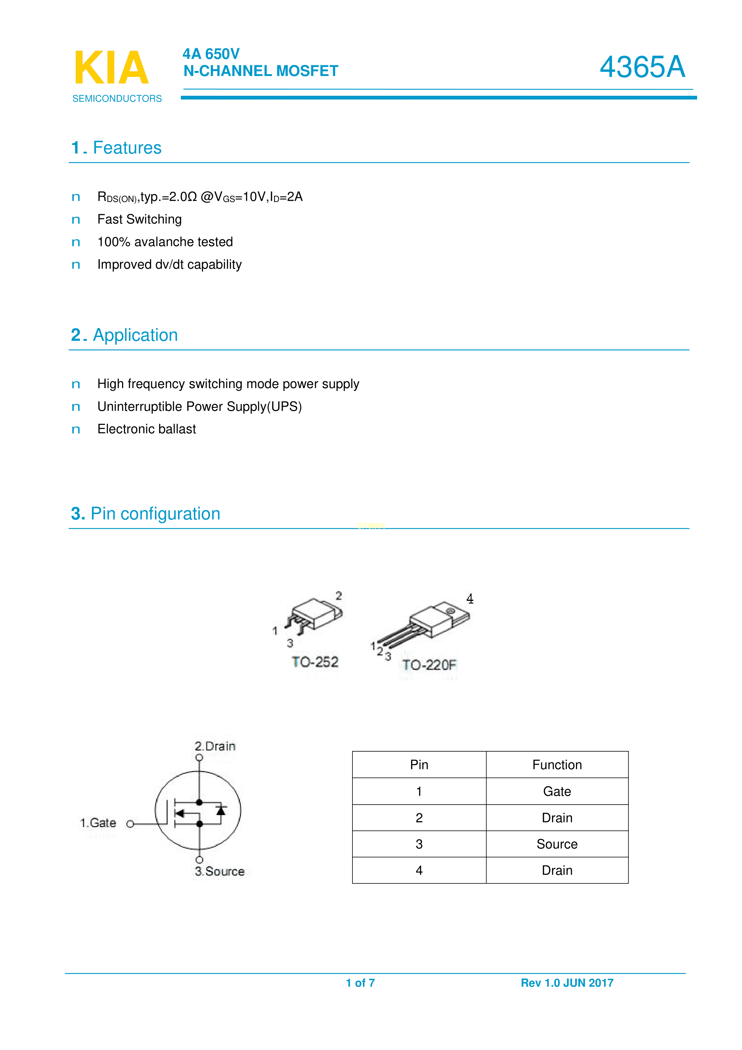 KND4365A数据手册TO-252-2(DPAK)封装KIAPDF规格书,中英文下载