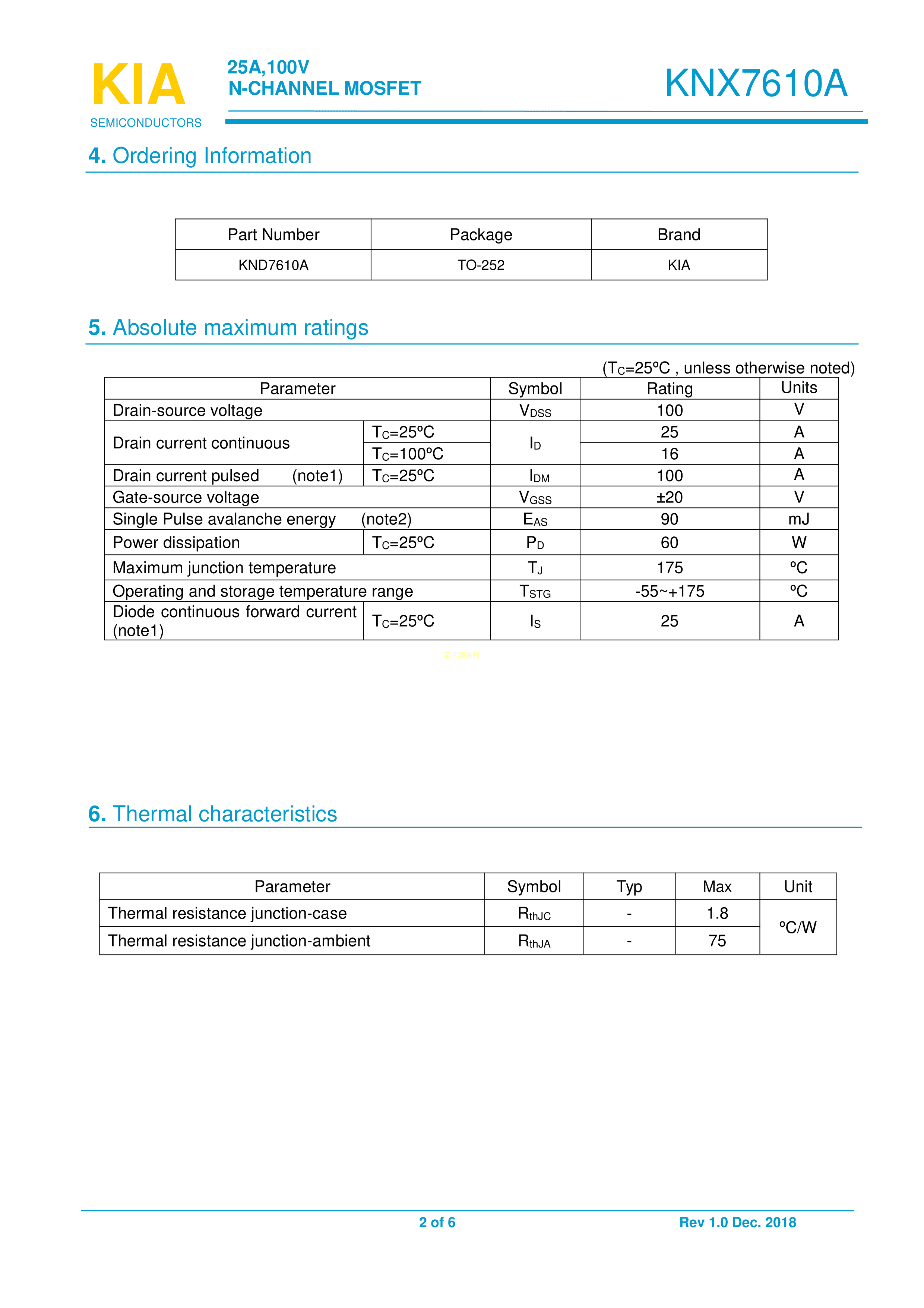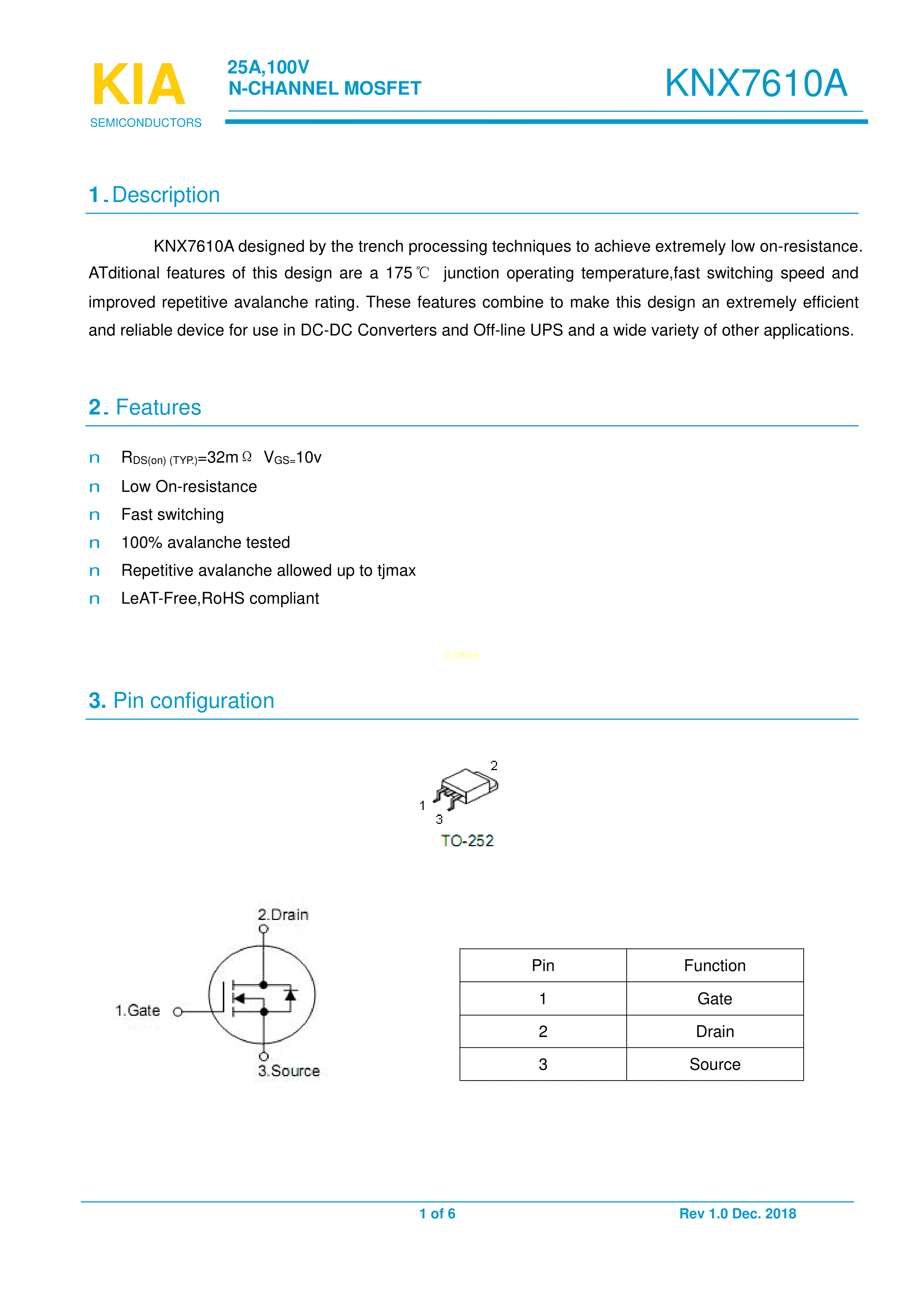 KND7610A数据手册TO-252-2(DPAK)封装KIAPDF规格书,中英文下载