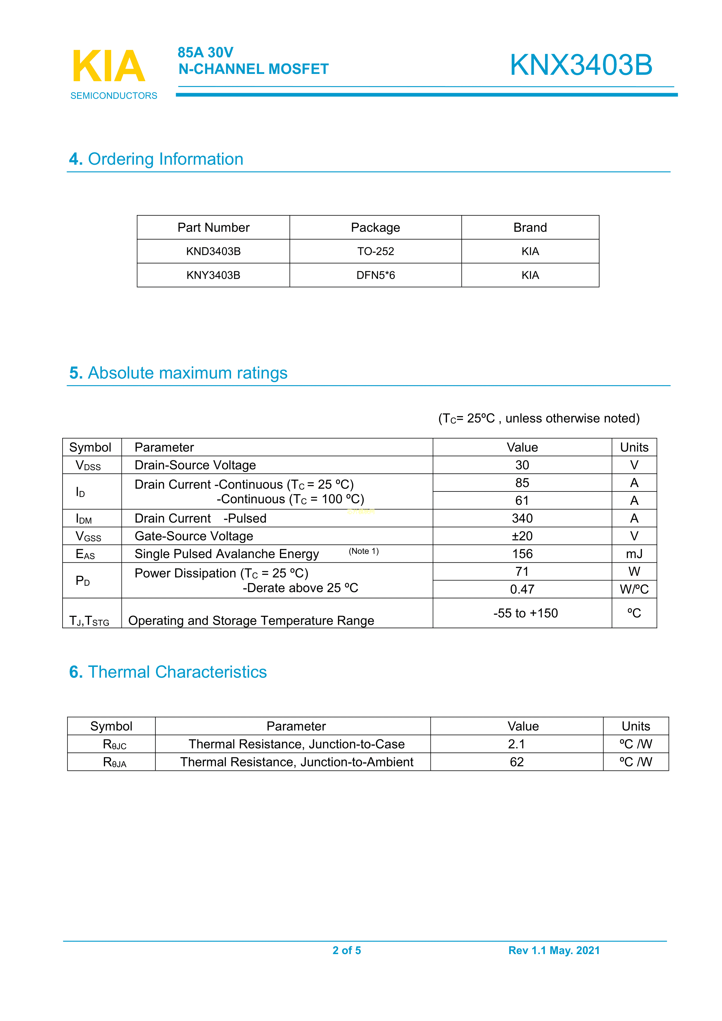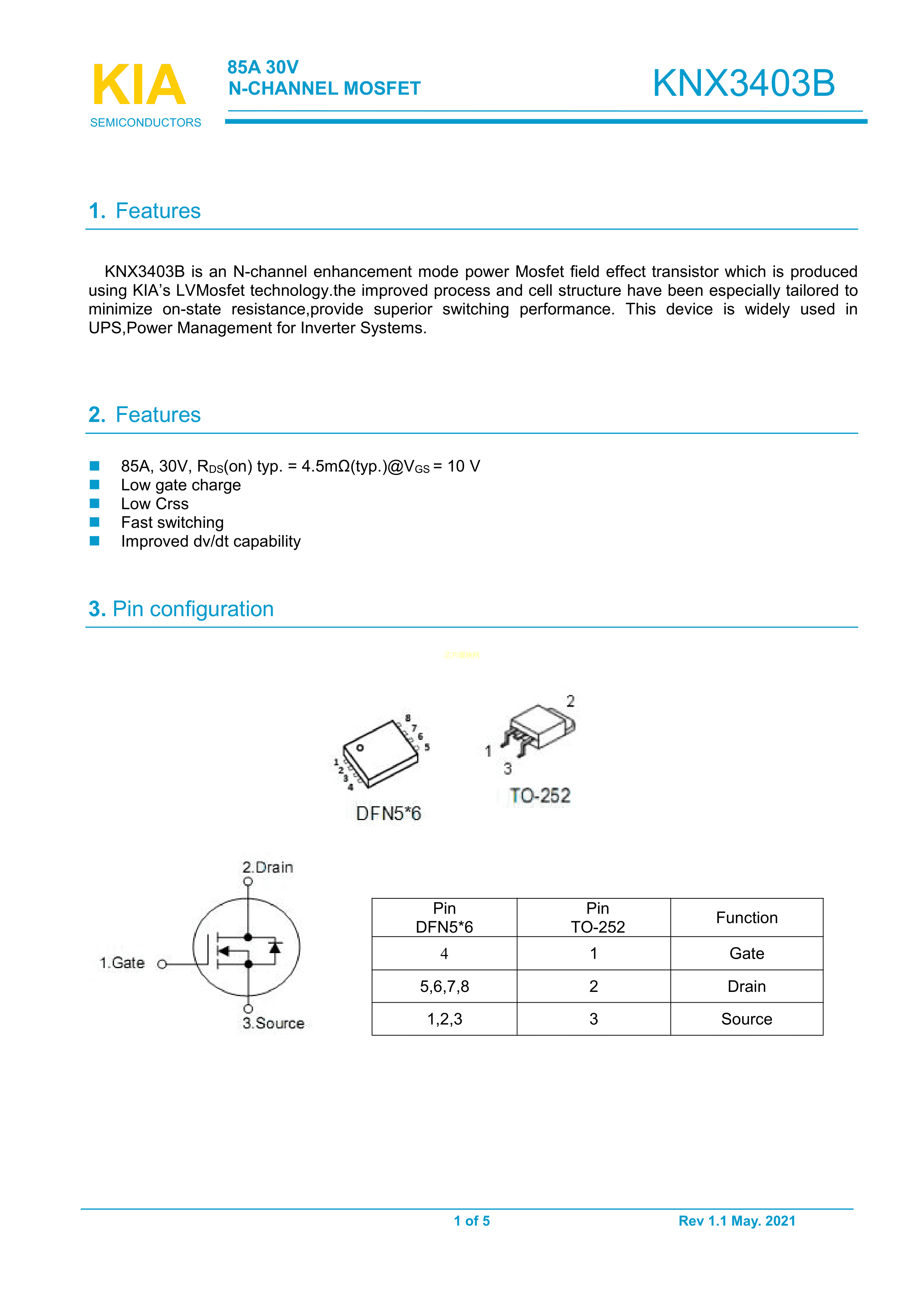 KNY3403B数据手册DFN(5x6)封装KIAPDF规格书,中英文下载