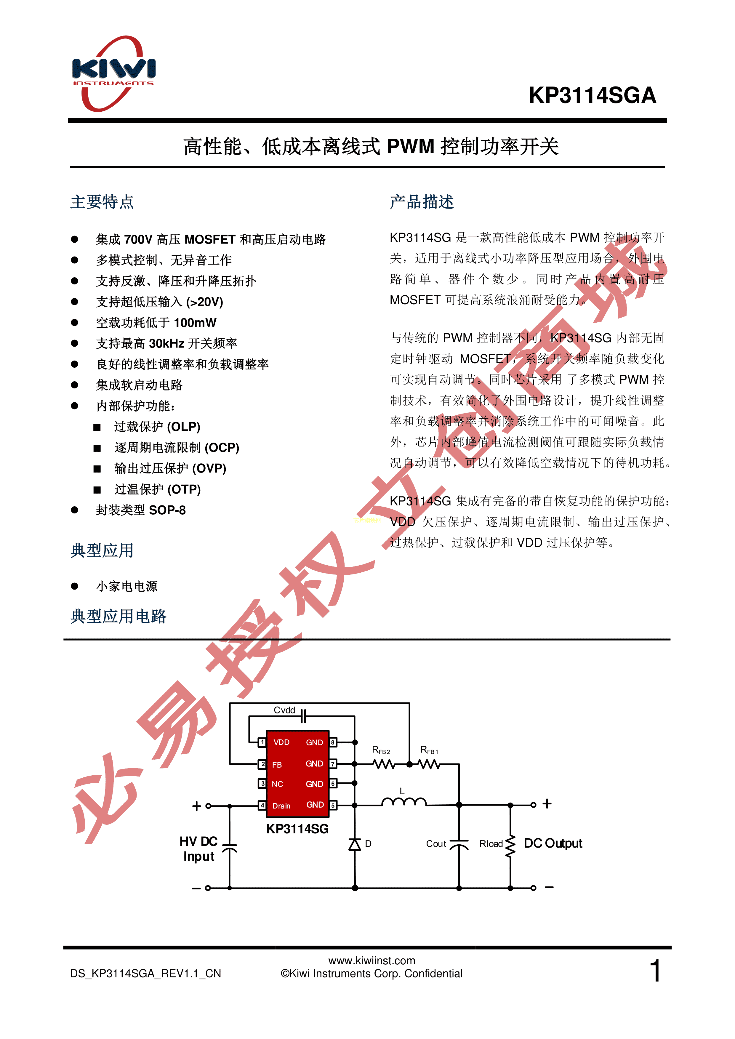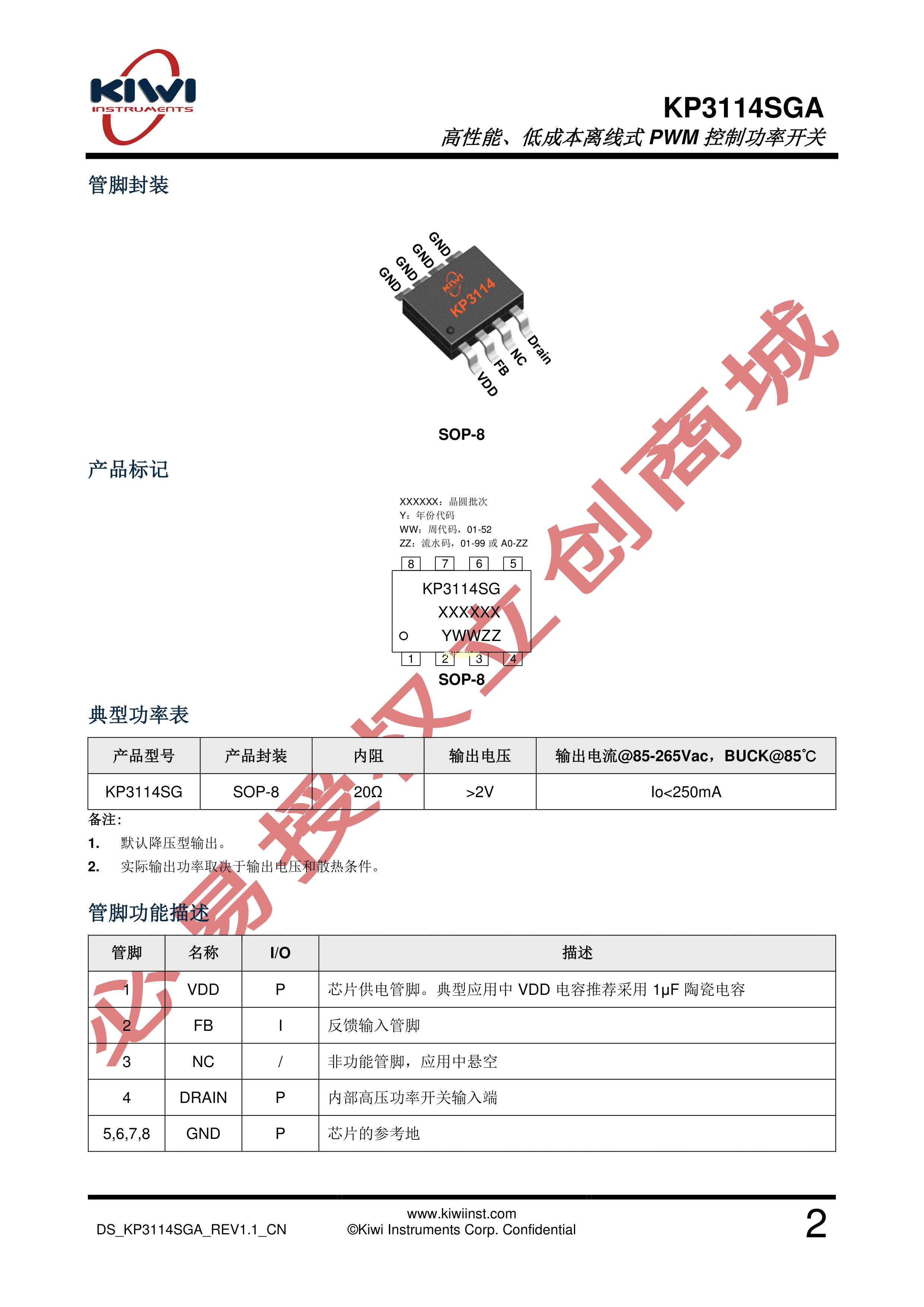 KP3114SGA数据手册SOP-8封装KIWI(必易微)PDF规格书,中英文下载