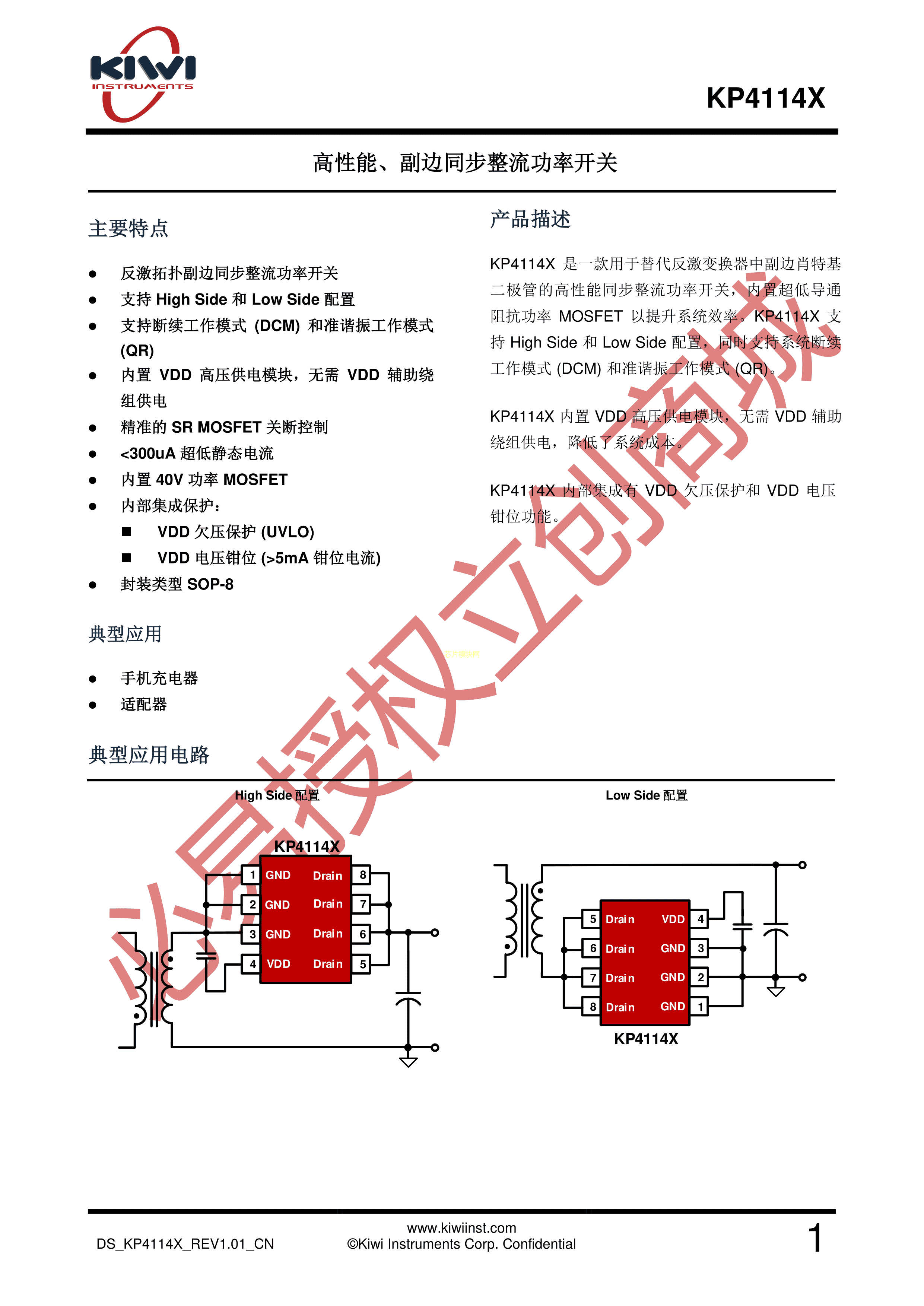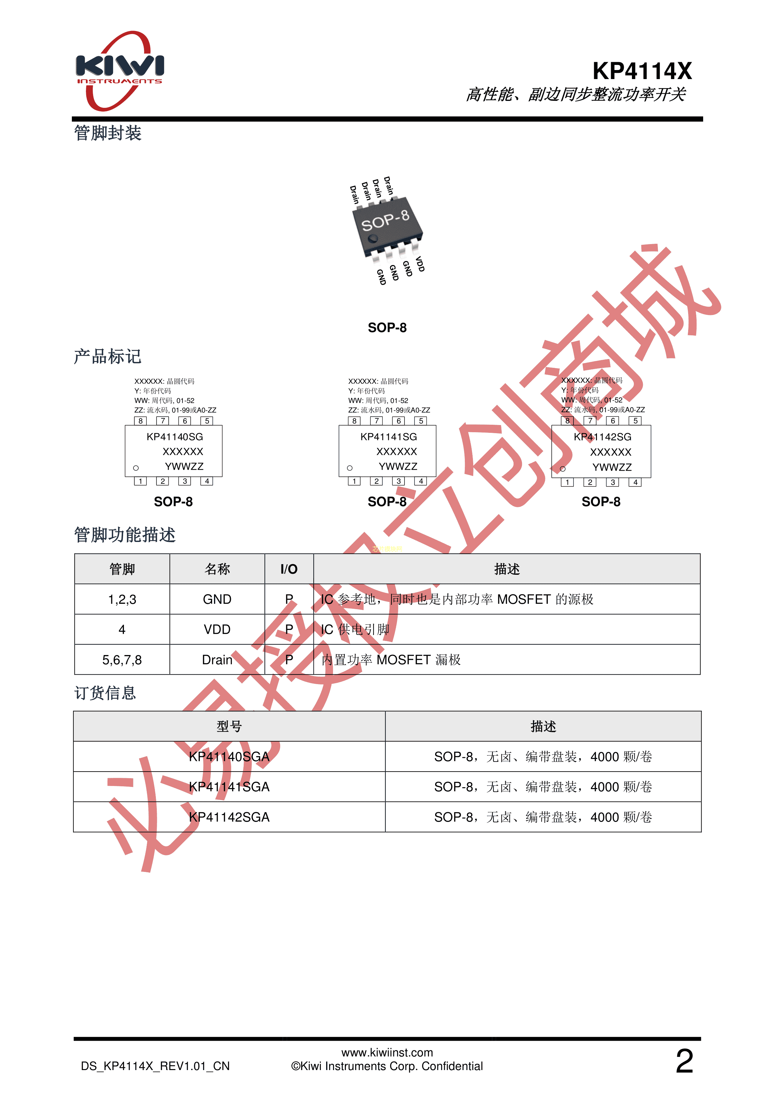 KP41142SGA数据手册SOP-8封装KIWI(必易微)PDF规格书,中英文下载