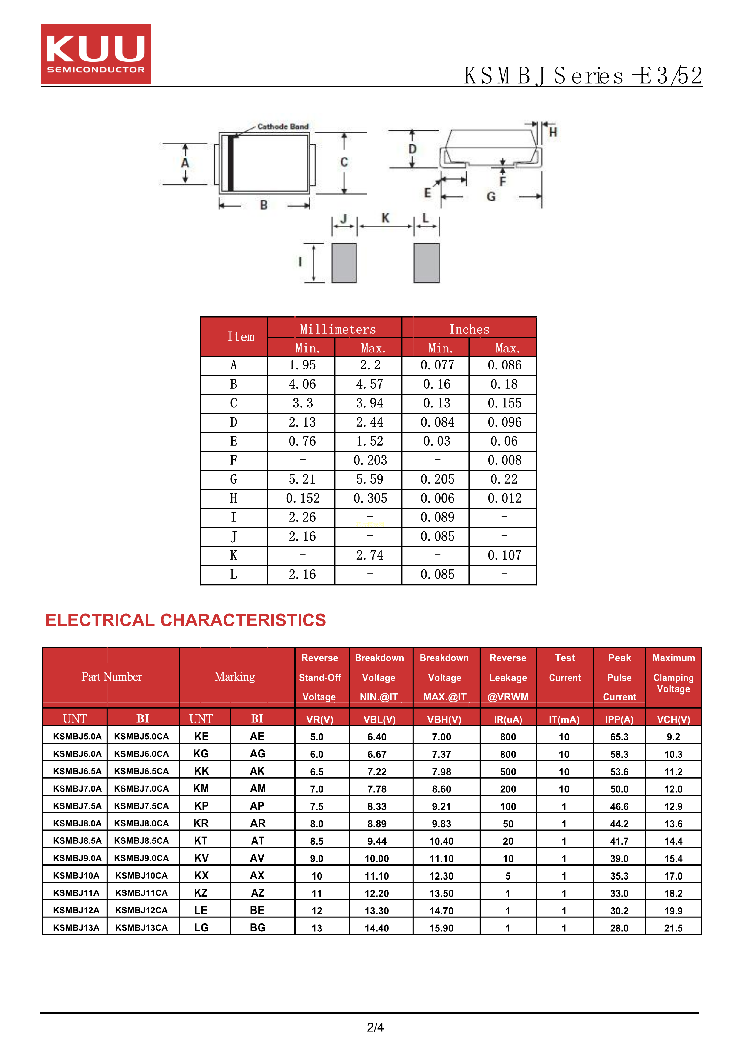 KSMBJ6.5CA-E3-52数据手册SMB封装KUUPDF规格书,中英文下载