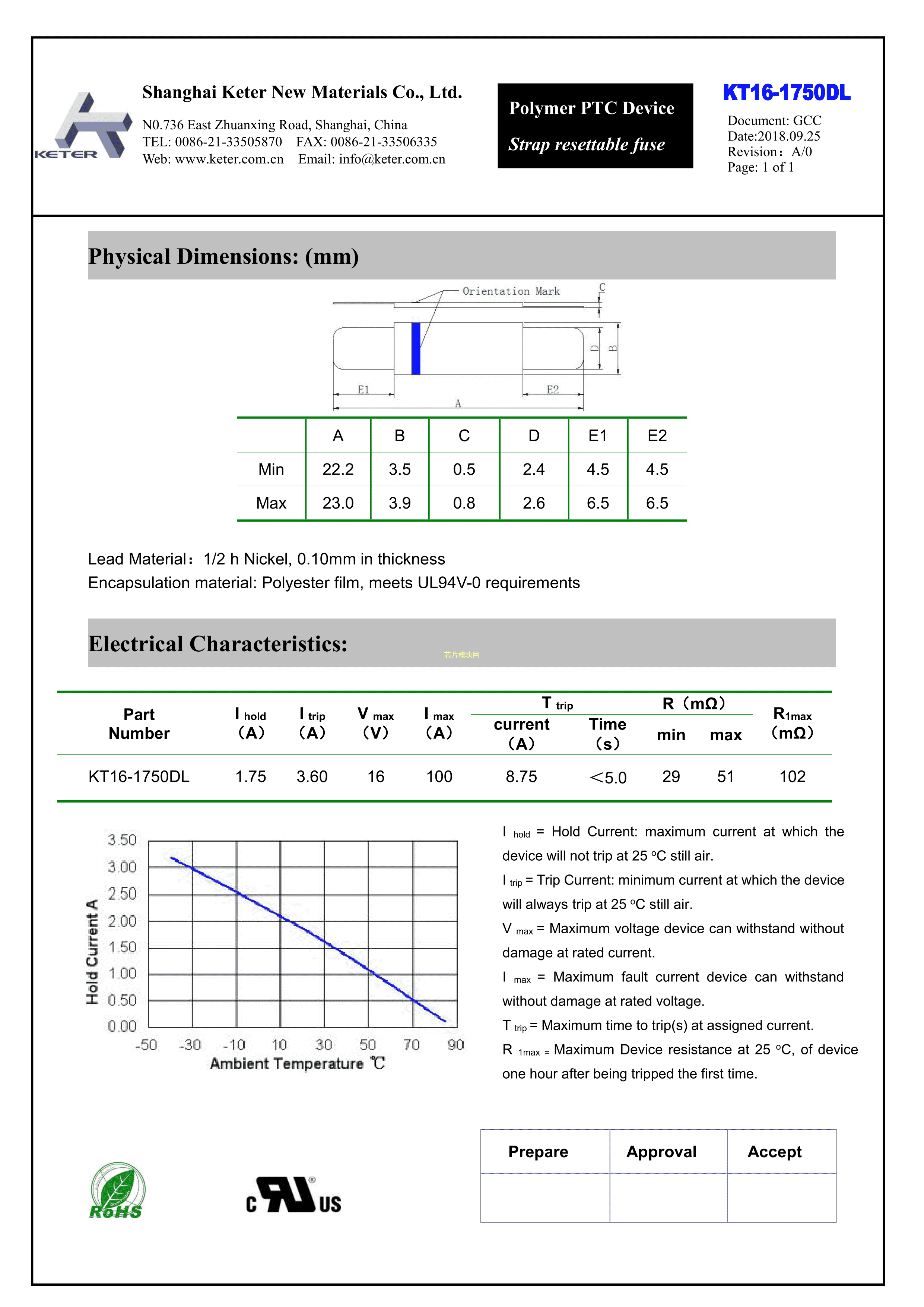 KT16-1750DL数据手册-封装Keter(科特)PDF规格书,中英文下载