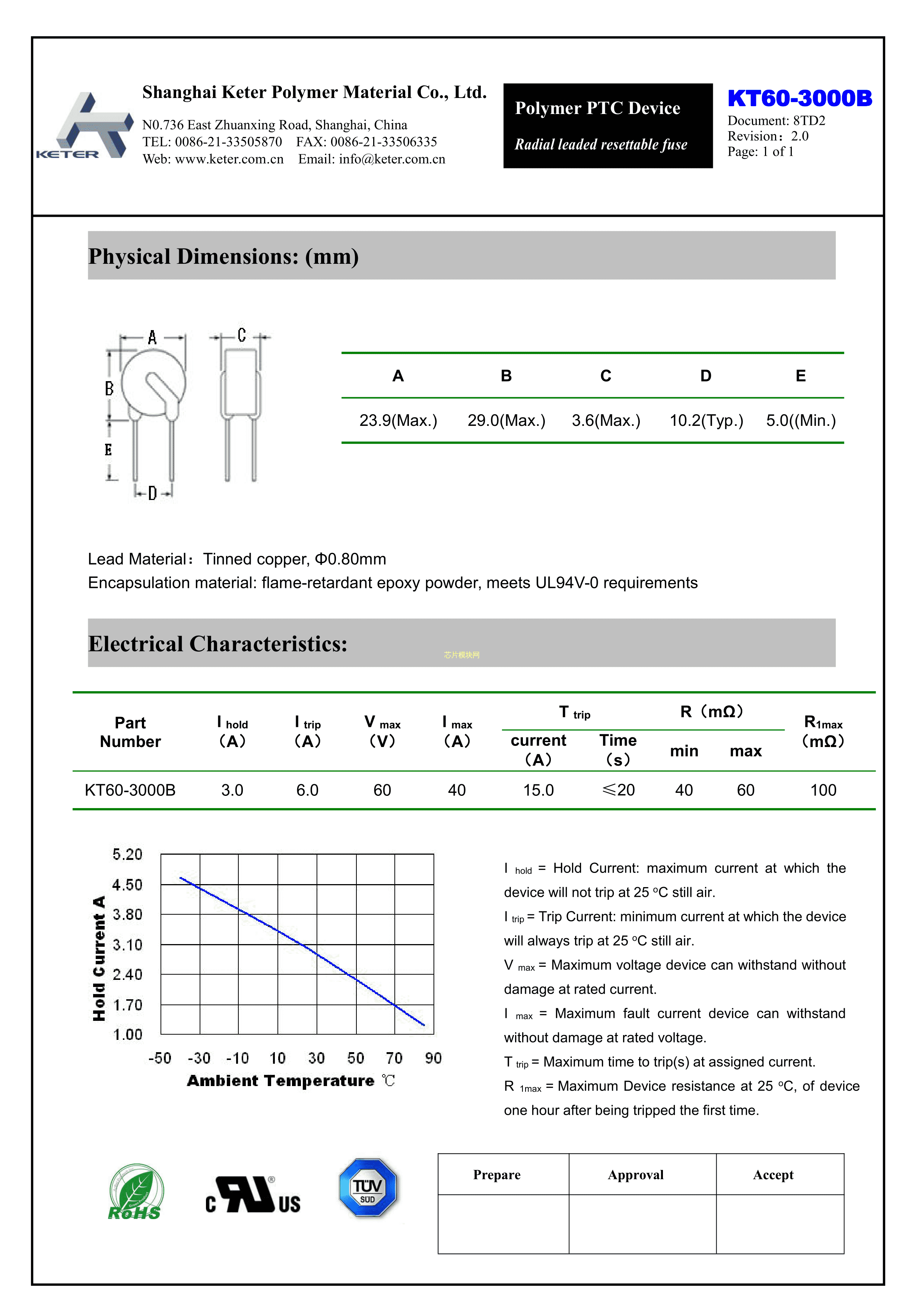 KT60-3000B数据手册径向引线P10.2mm封装Keter(科特)PDF规格书,中英文下载
