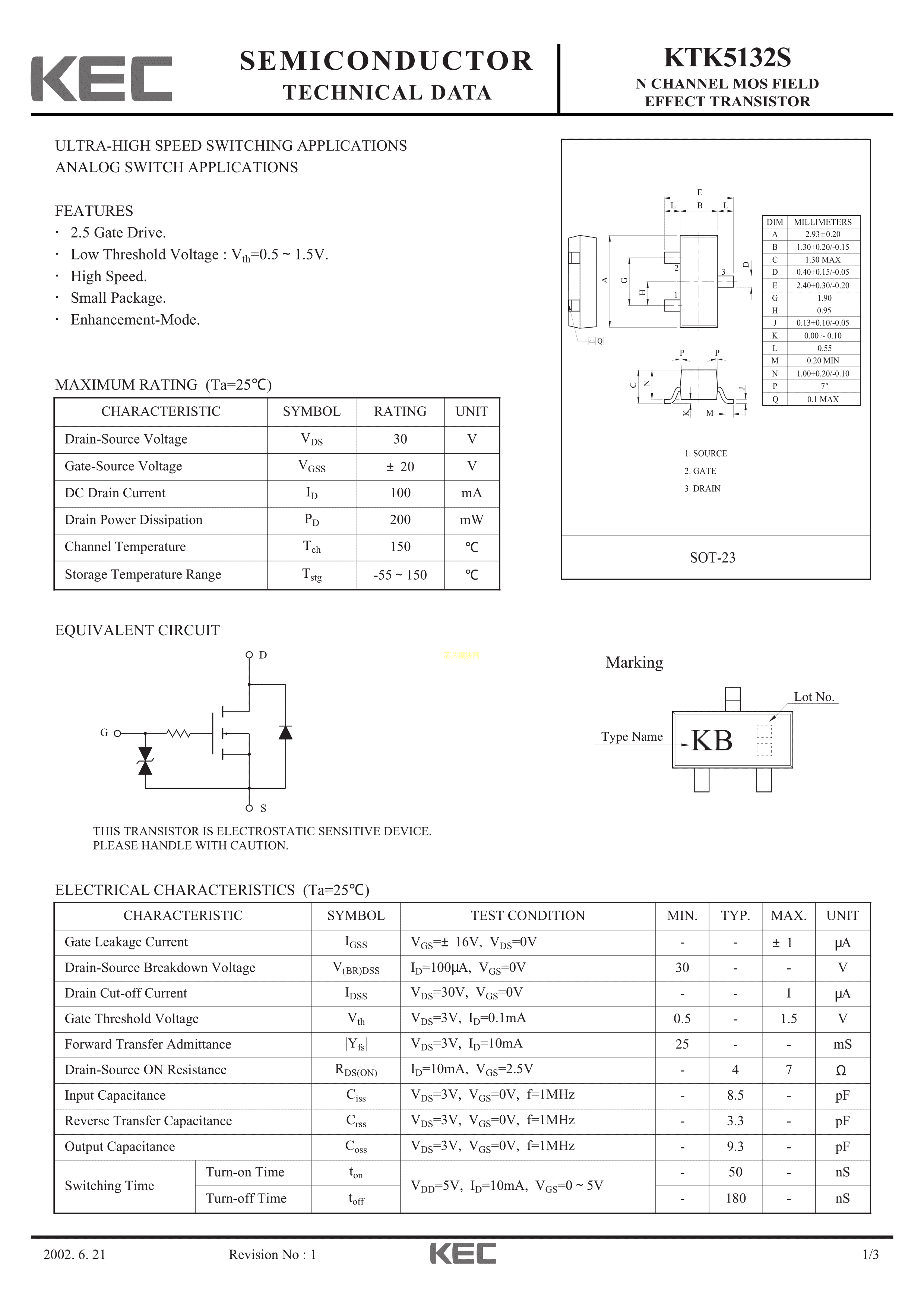 KTK5132S-RTK-H数据手册SOT-23(SOT-23-3)封装KECPDF规格书,中英文下
