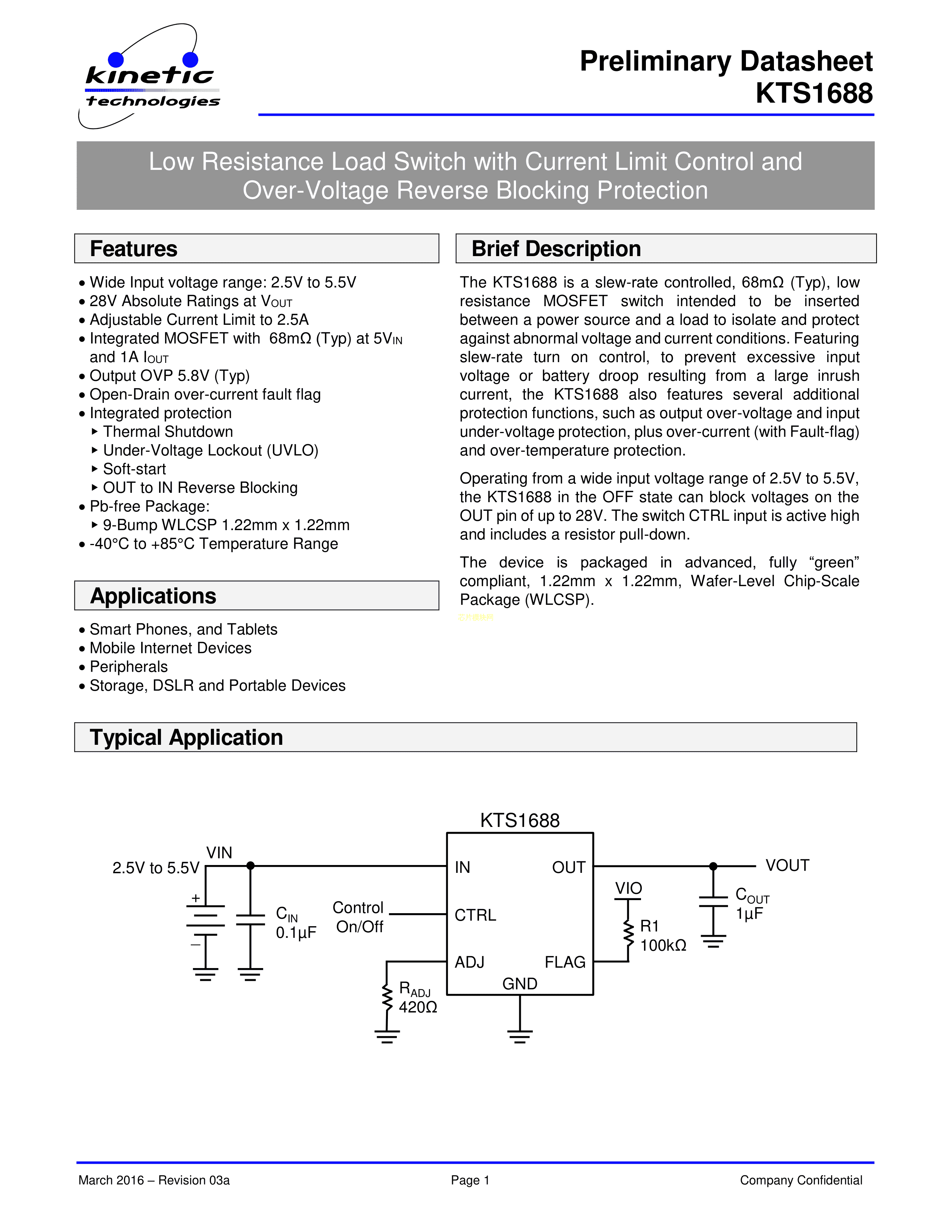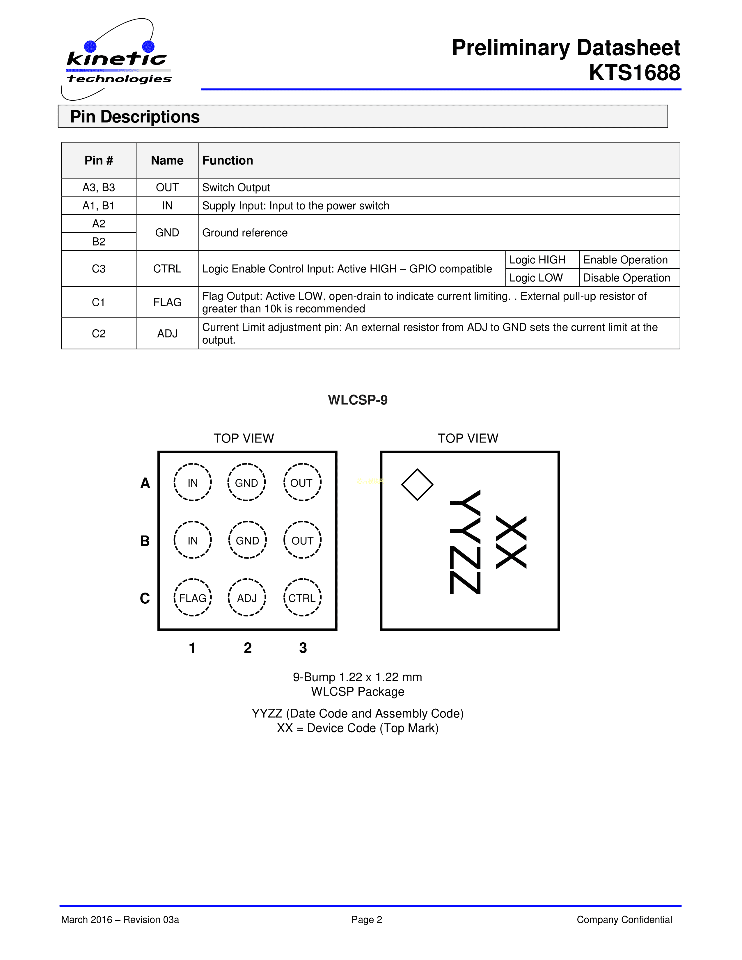 KTS1688EUH-TR数据手册WLCSP-9封装KINETIC(芯凯)PDF规格书,中英文下载