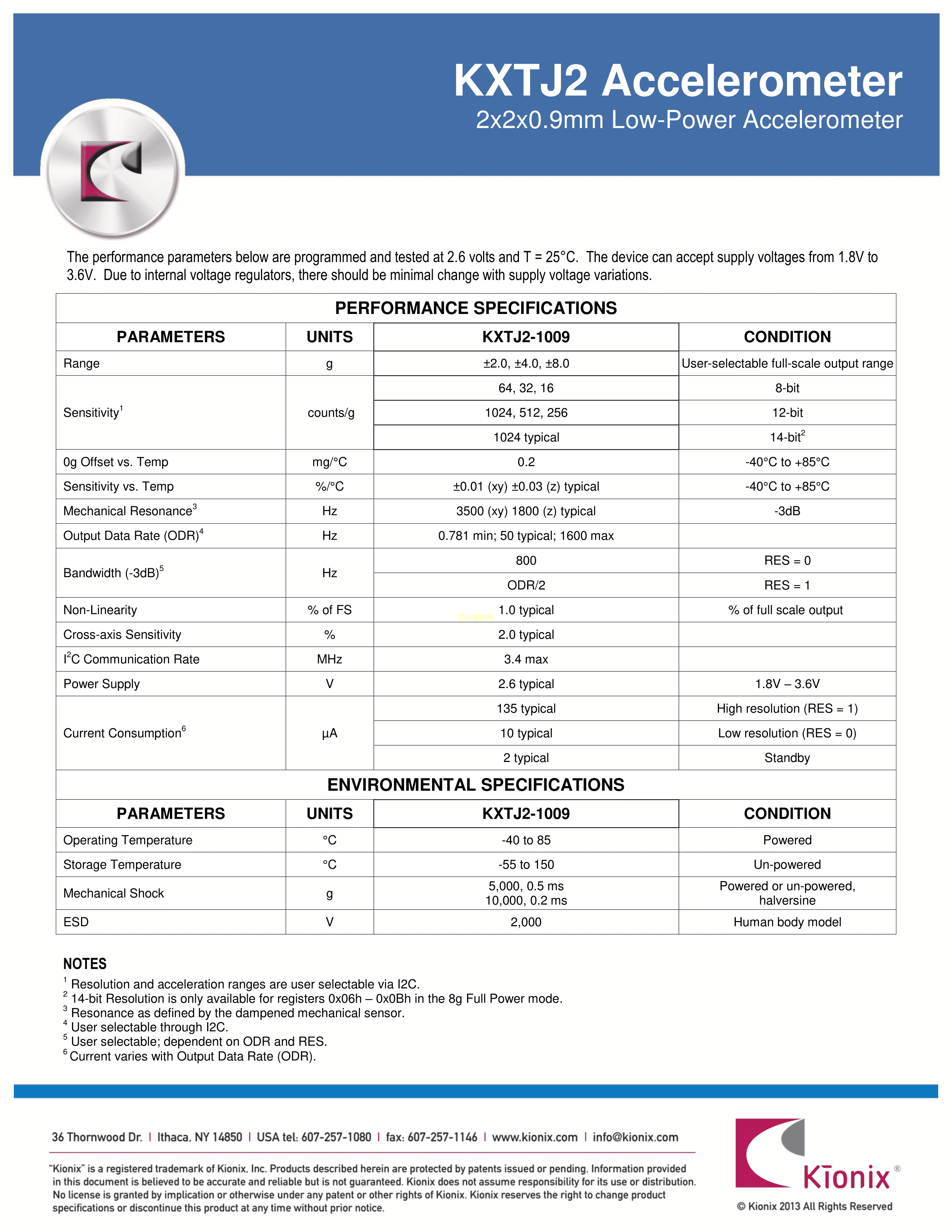 KXTJ2-1009-01数据手册LGA封装ROHM(罗姆)PDF规格书,中英文下载