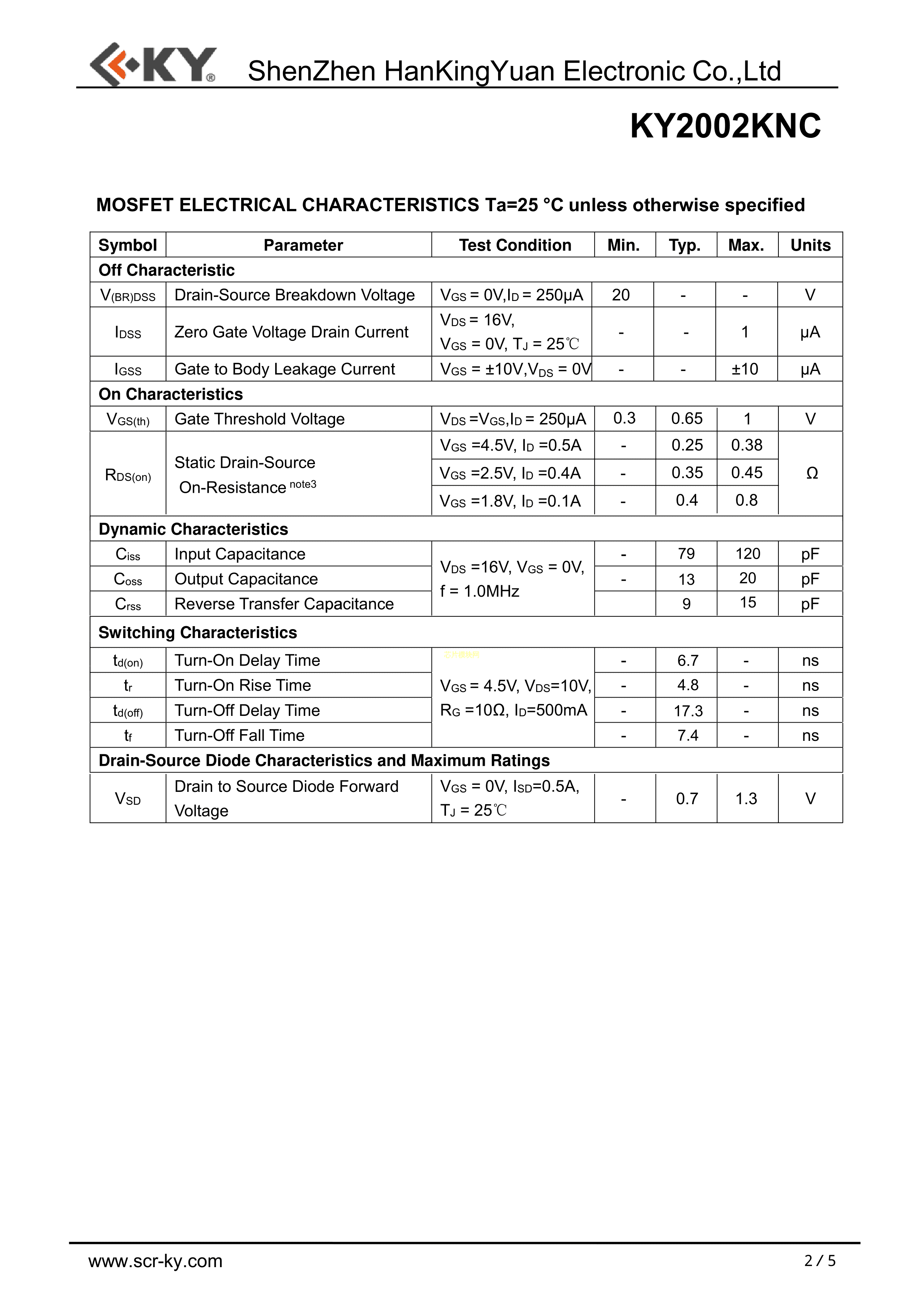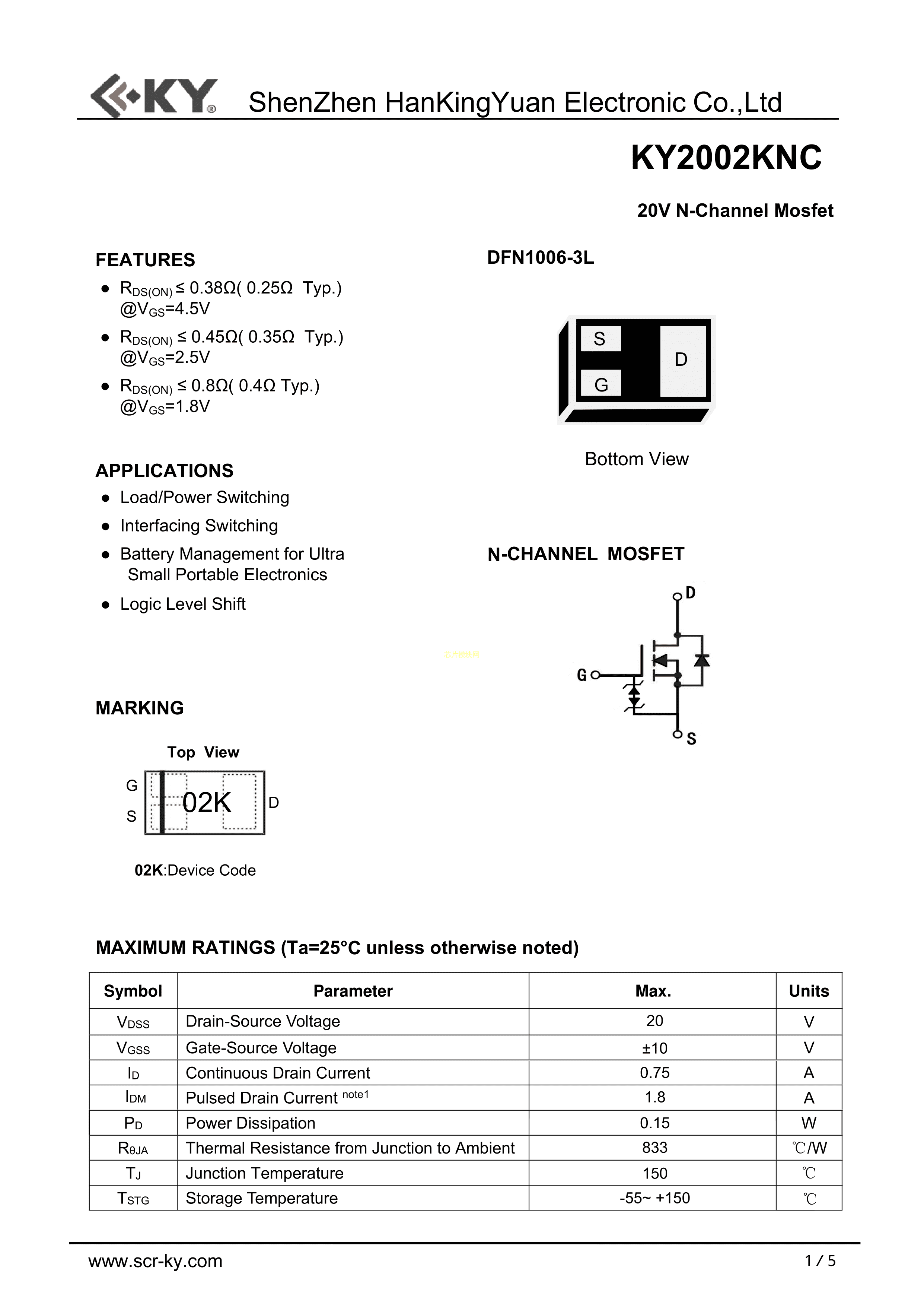 KY2002KNC数据手册DFN1006-3L封装KY(韩景元)PDF规格书,中英文下载