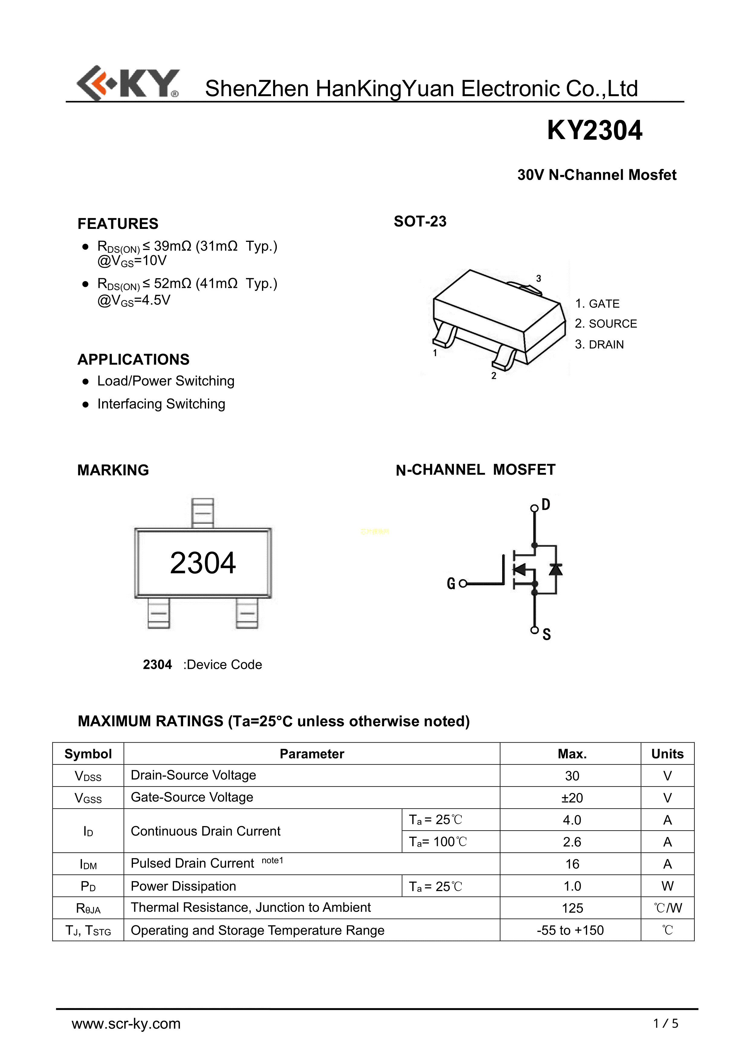 KY2304数据手册SOT-23封装KY(韩景元)PDF规格书,中英文下载