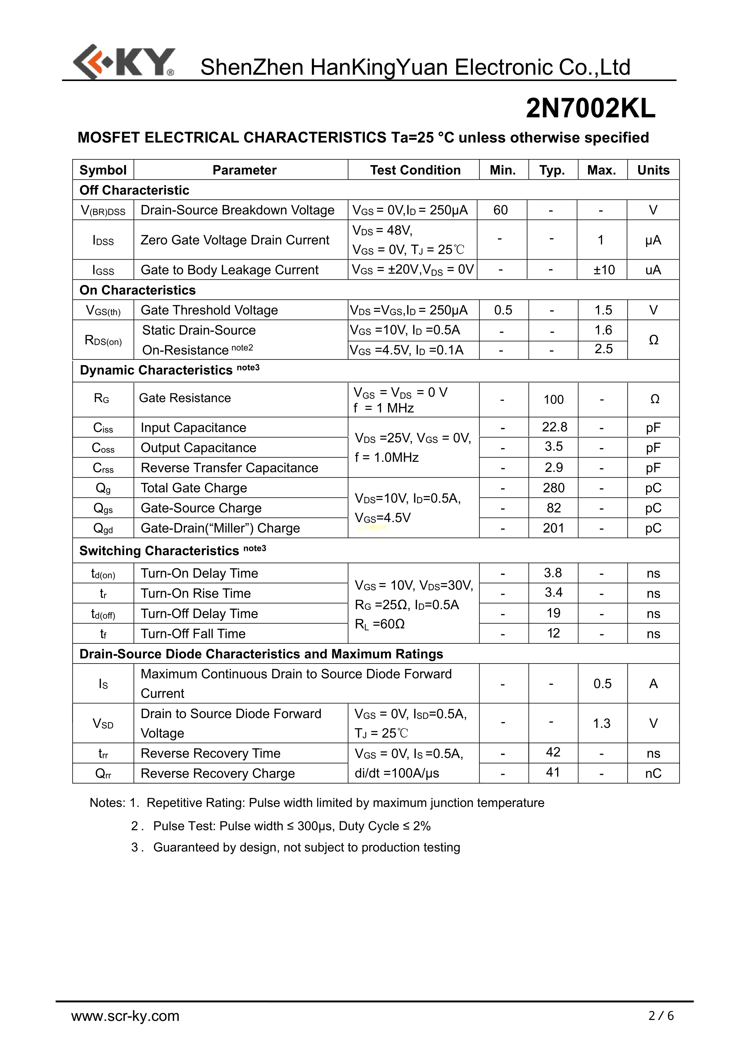 KY2N7002KL数据手册SOT-23封装KY(韩景元)PDF规格书,中英文下载