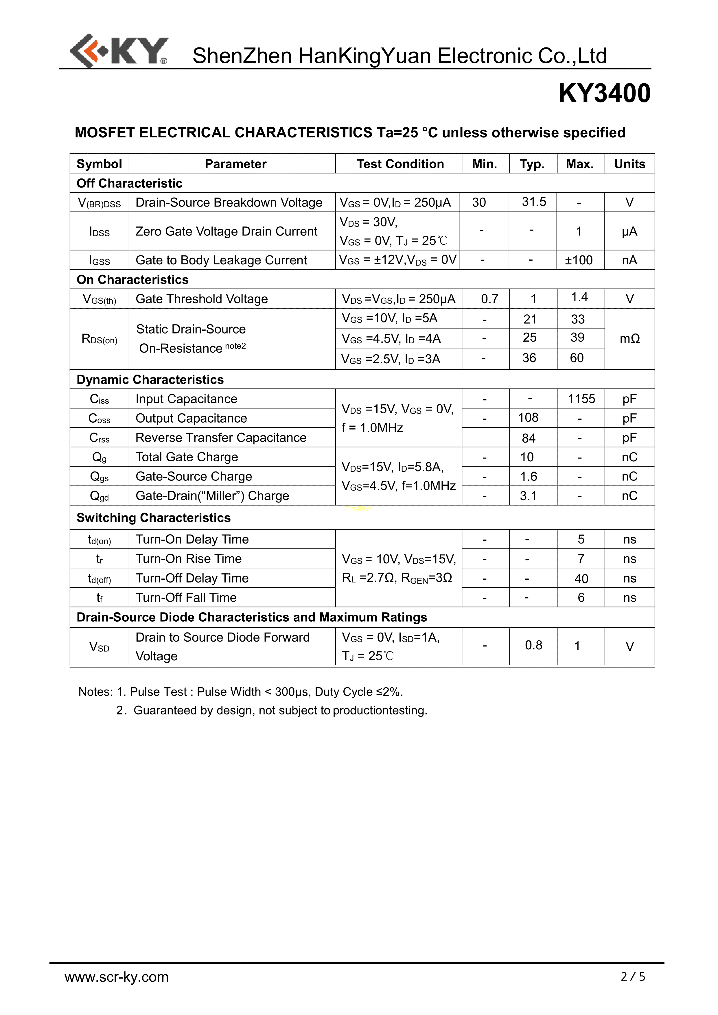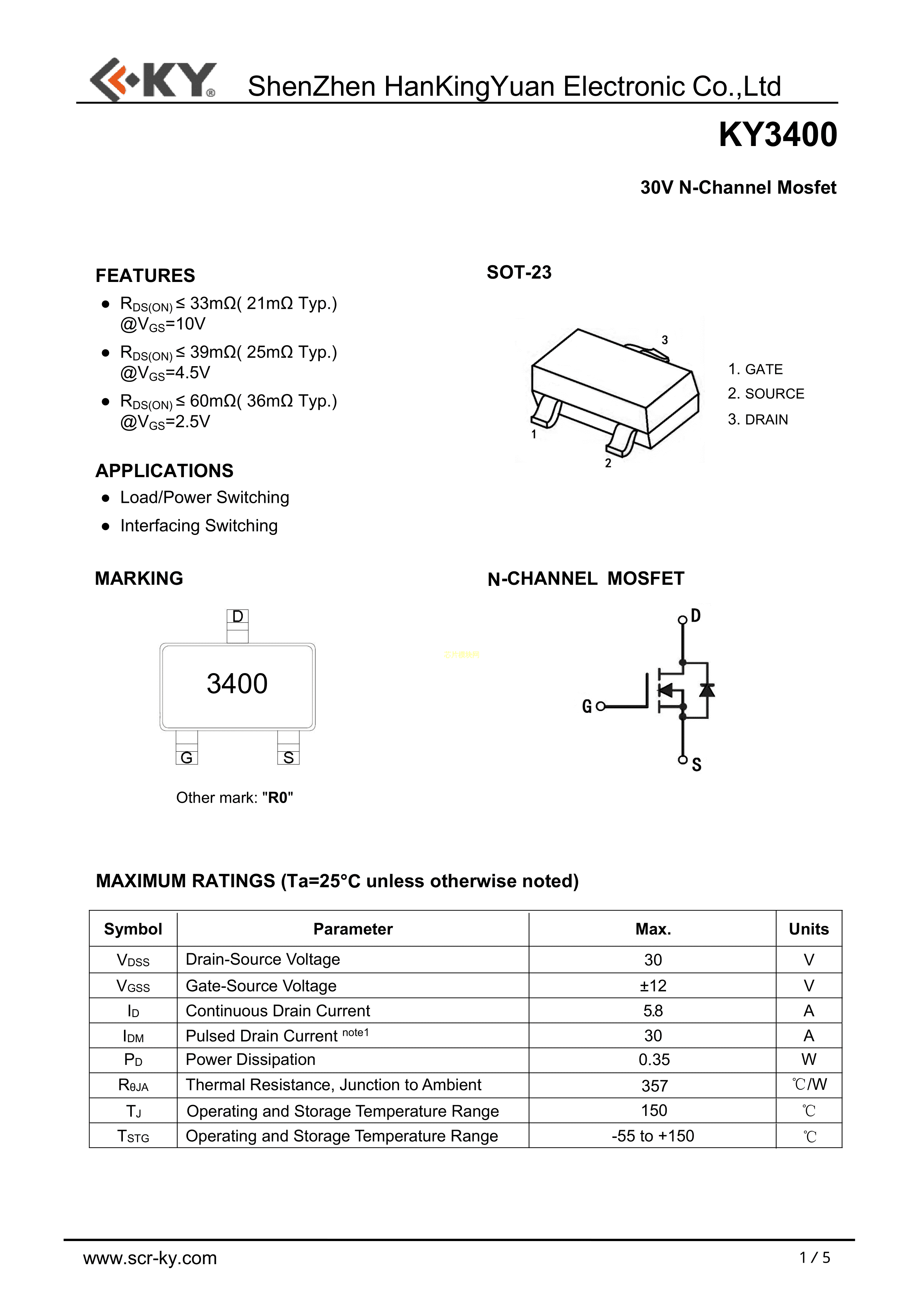 KY3400数据手册SOT-23封装KY(韩景元)PDF规格书,中英文下载