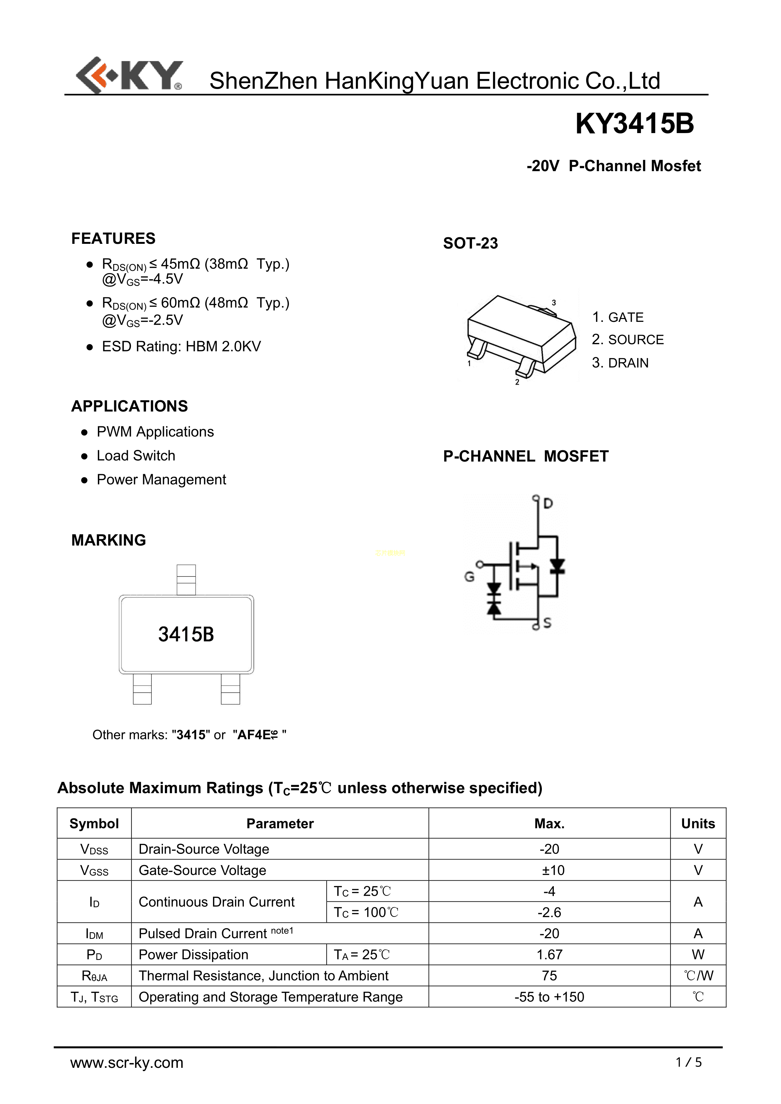 KY3415B数据手册SOT-23封装KY(韩景元)PDF规格书,中英文下载
