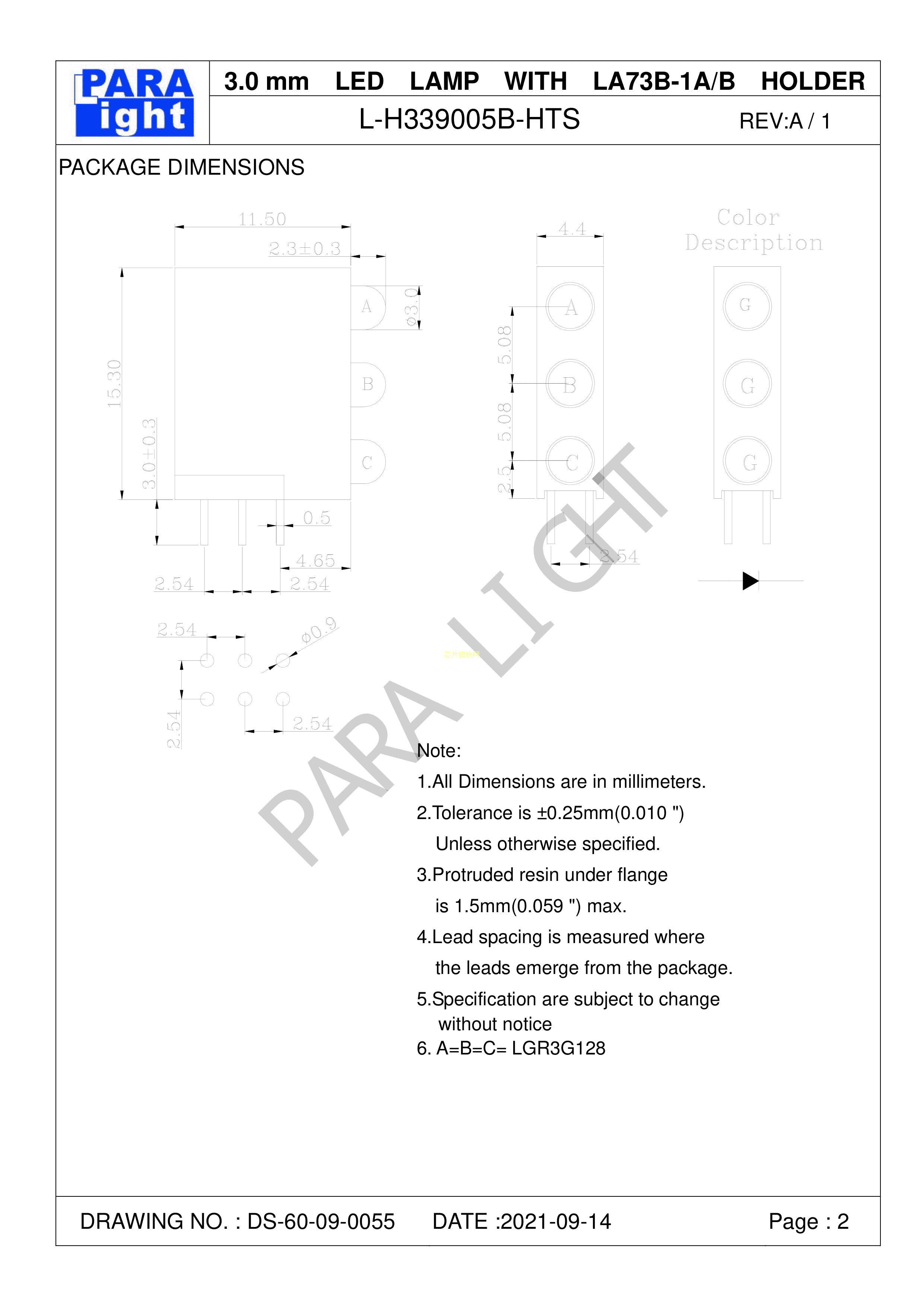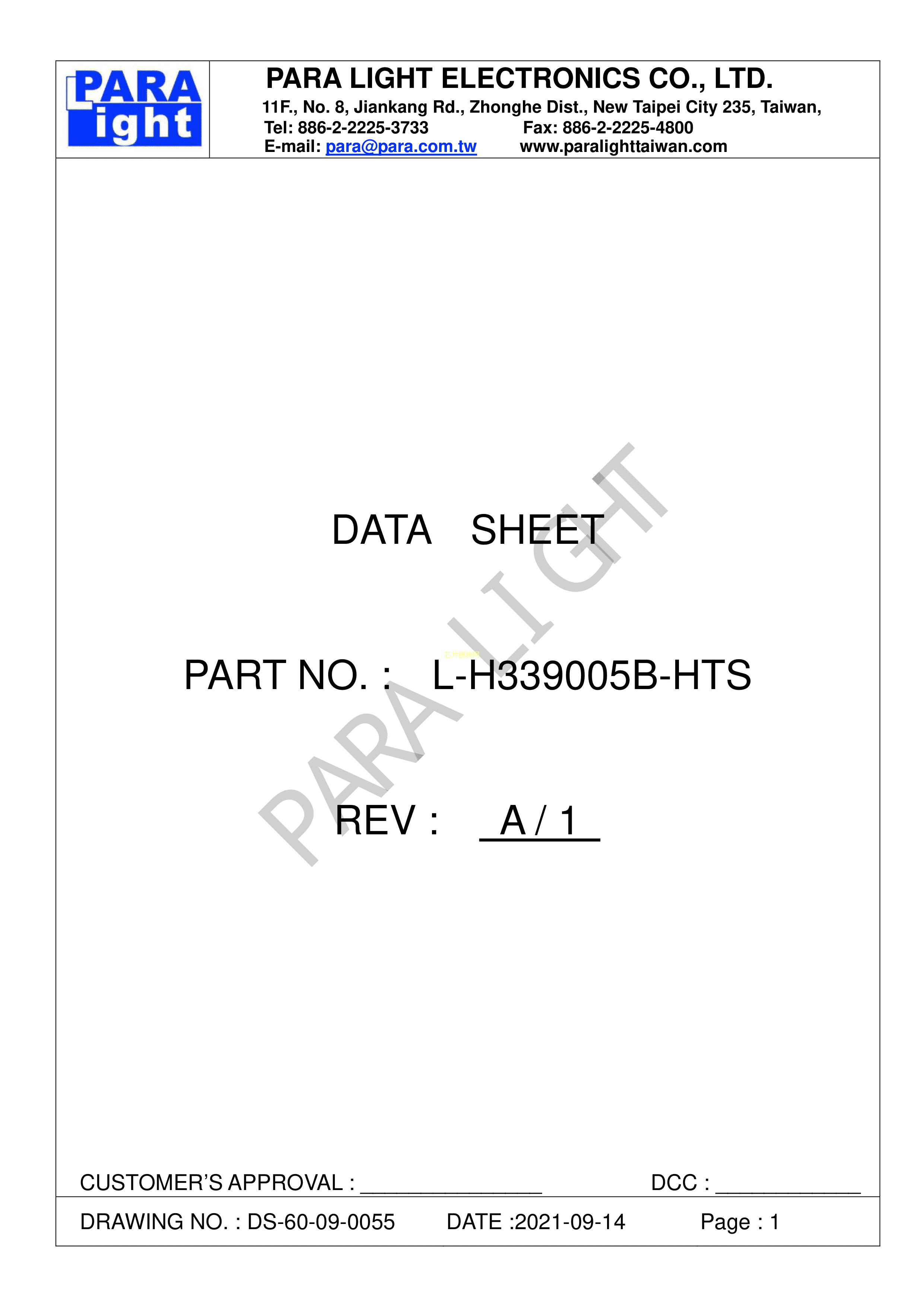 L-H339005B-HTS数据手册插件封装PARALIGHT(台湾光鼎)PDF规格书,中英文下载