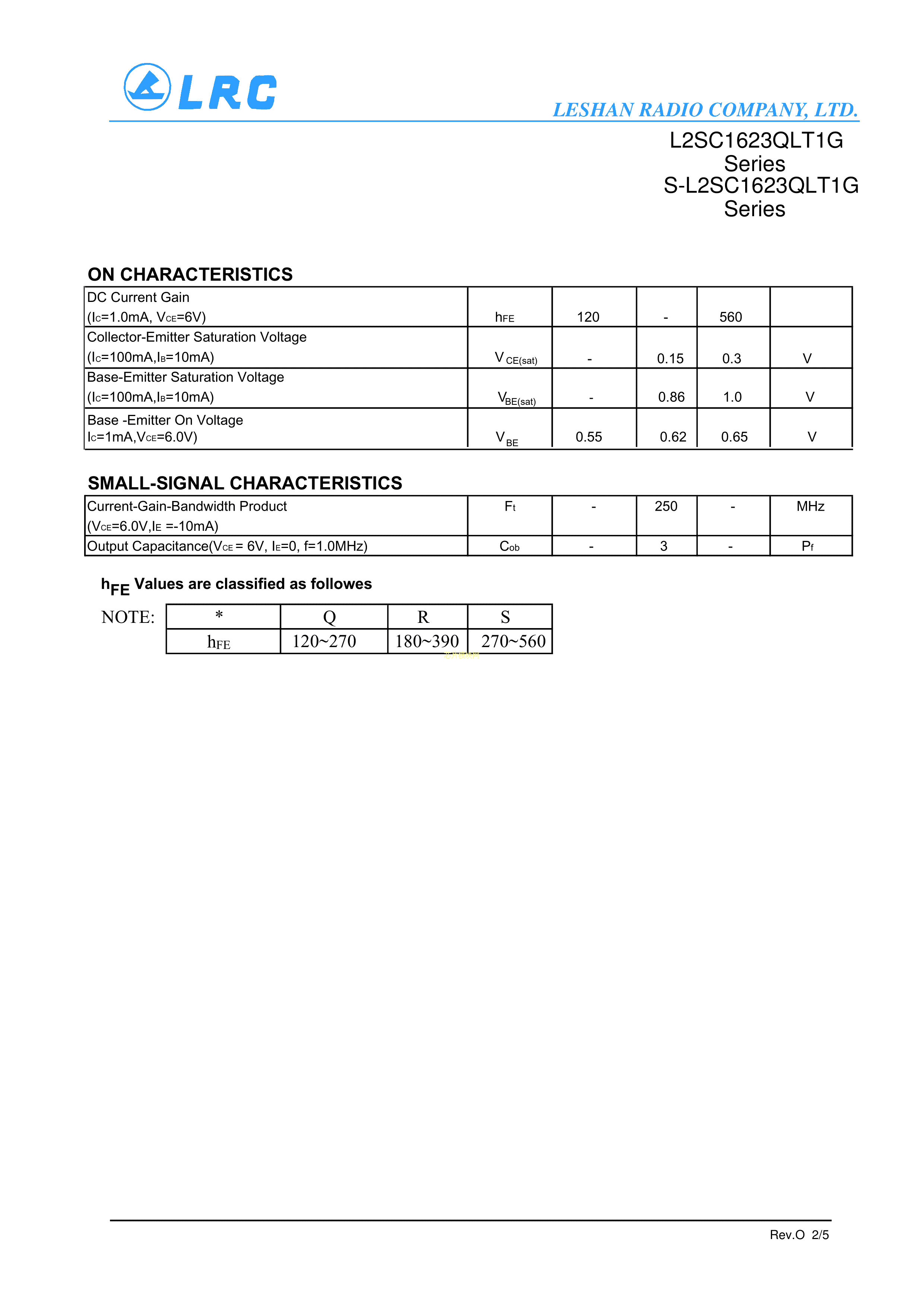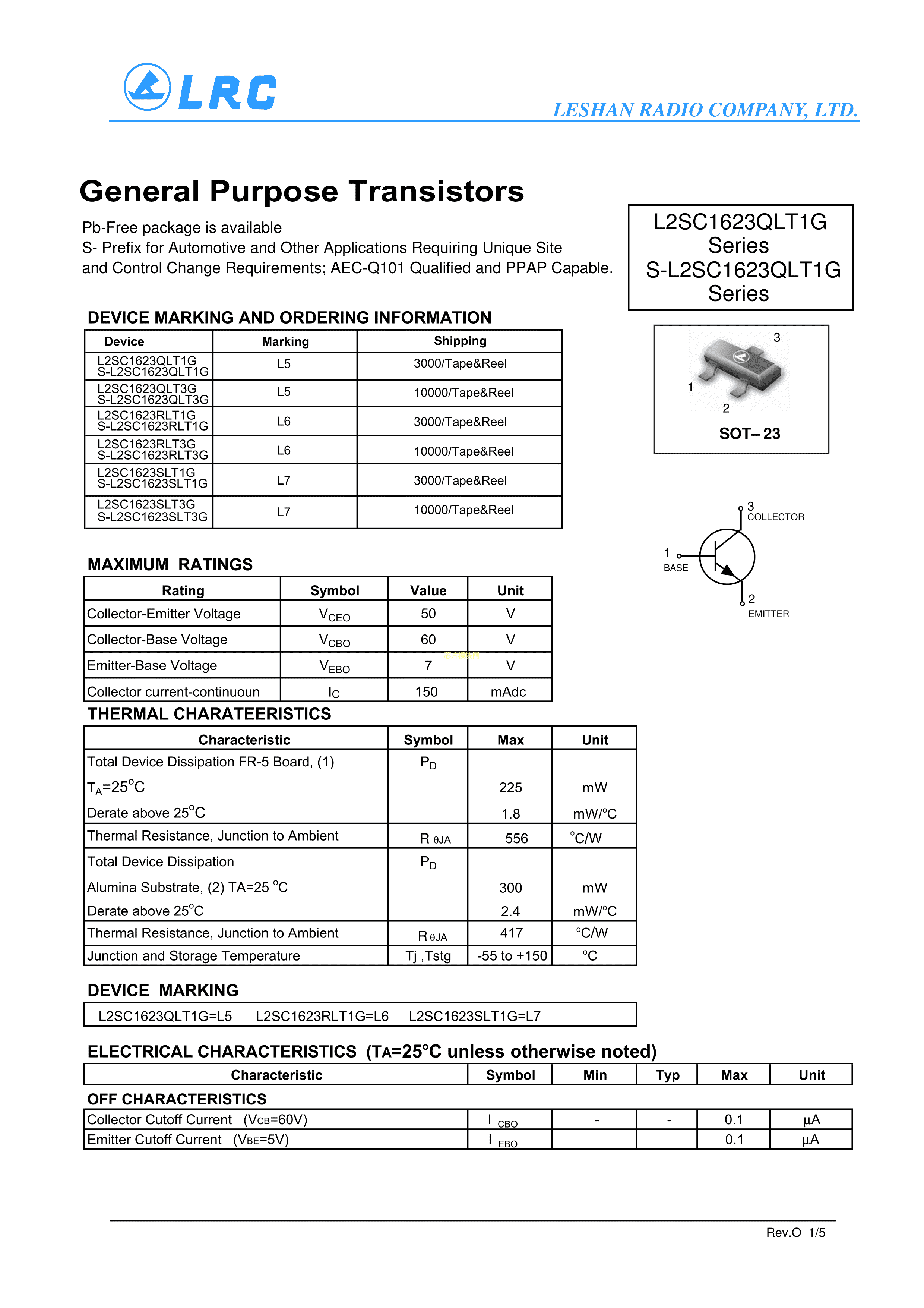 L2SC1623RLT1G数据手册SOT-23(SOT-23-3)封装LRC(乐山无线电)PDF规格