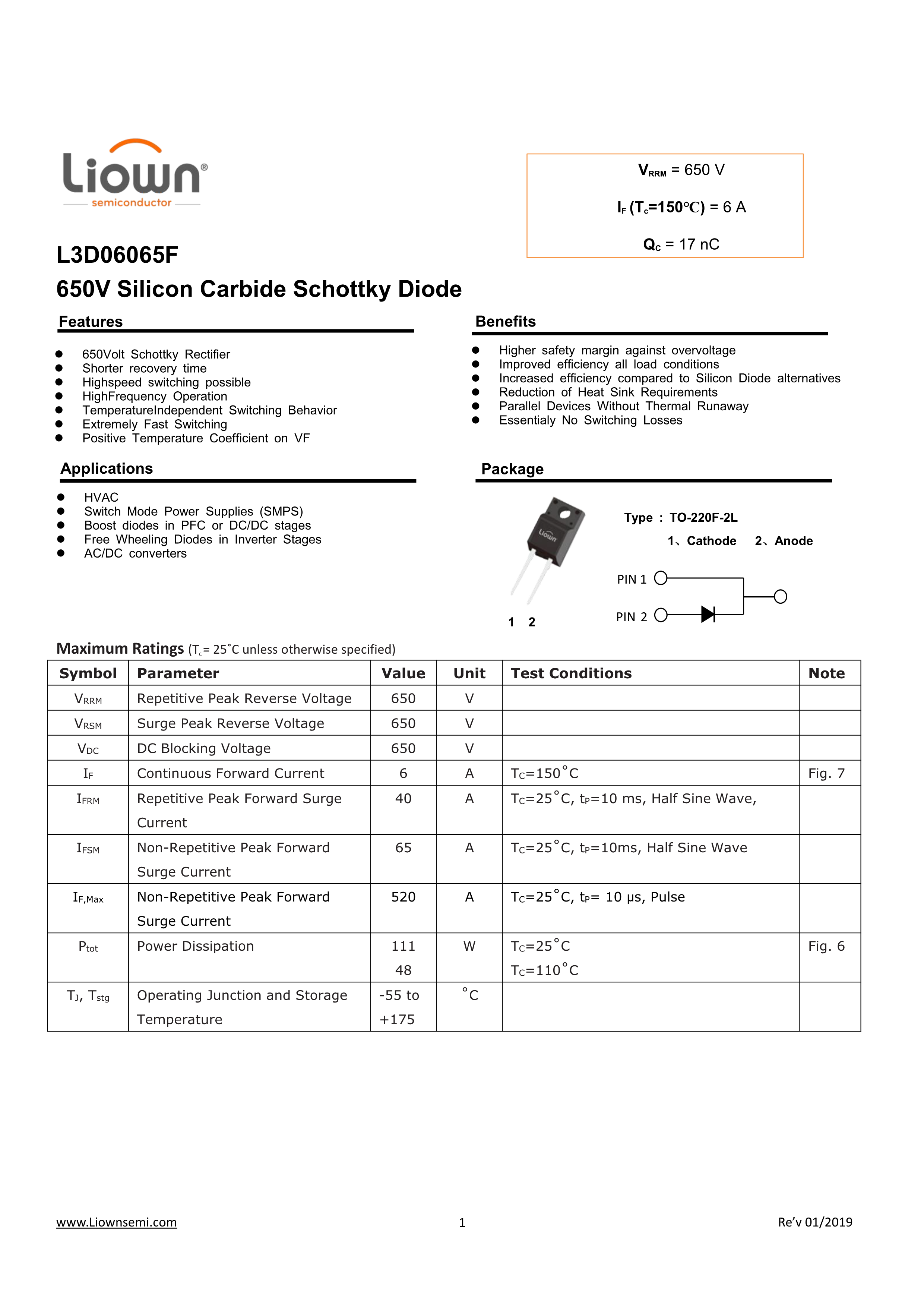 L3D06065F数据手册TO-220F封装Liown(里阳半导体)PDF规格书,中英文下载
