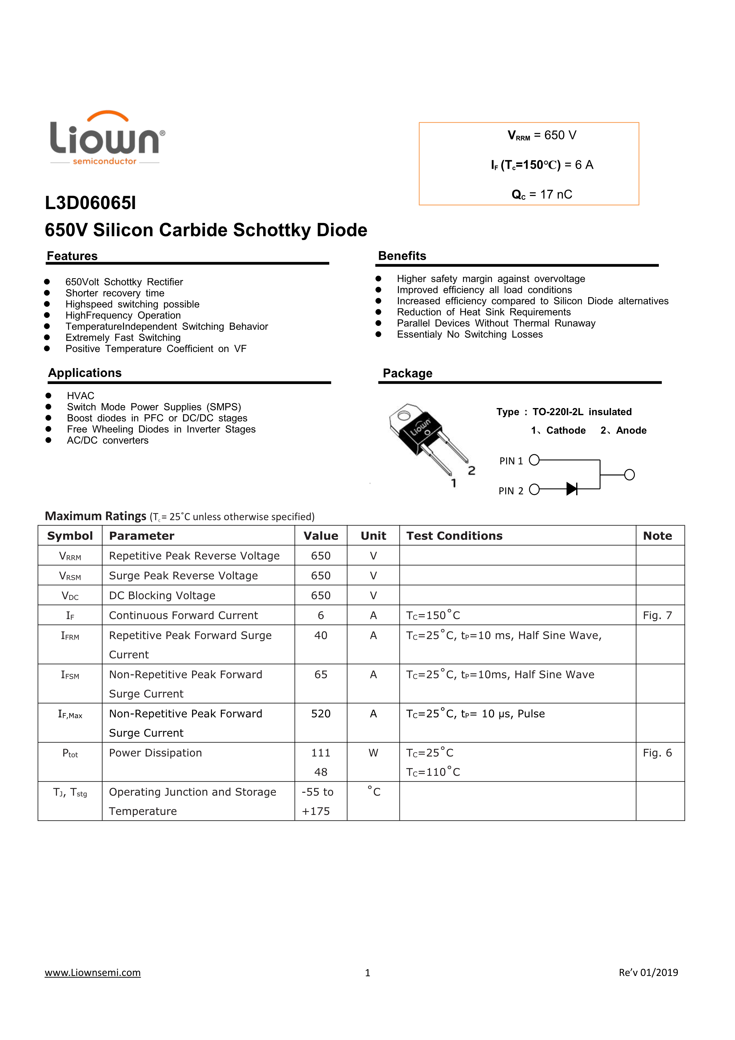 L3D06065I数据手册TO-220I封装Liown(里阳半导体)PDF规格书,中英文下载