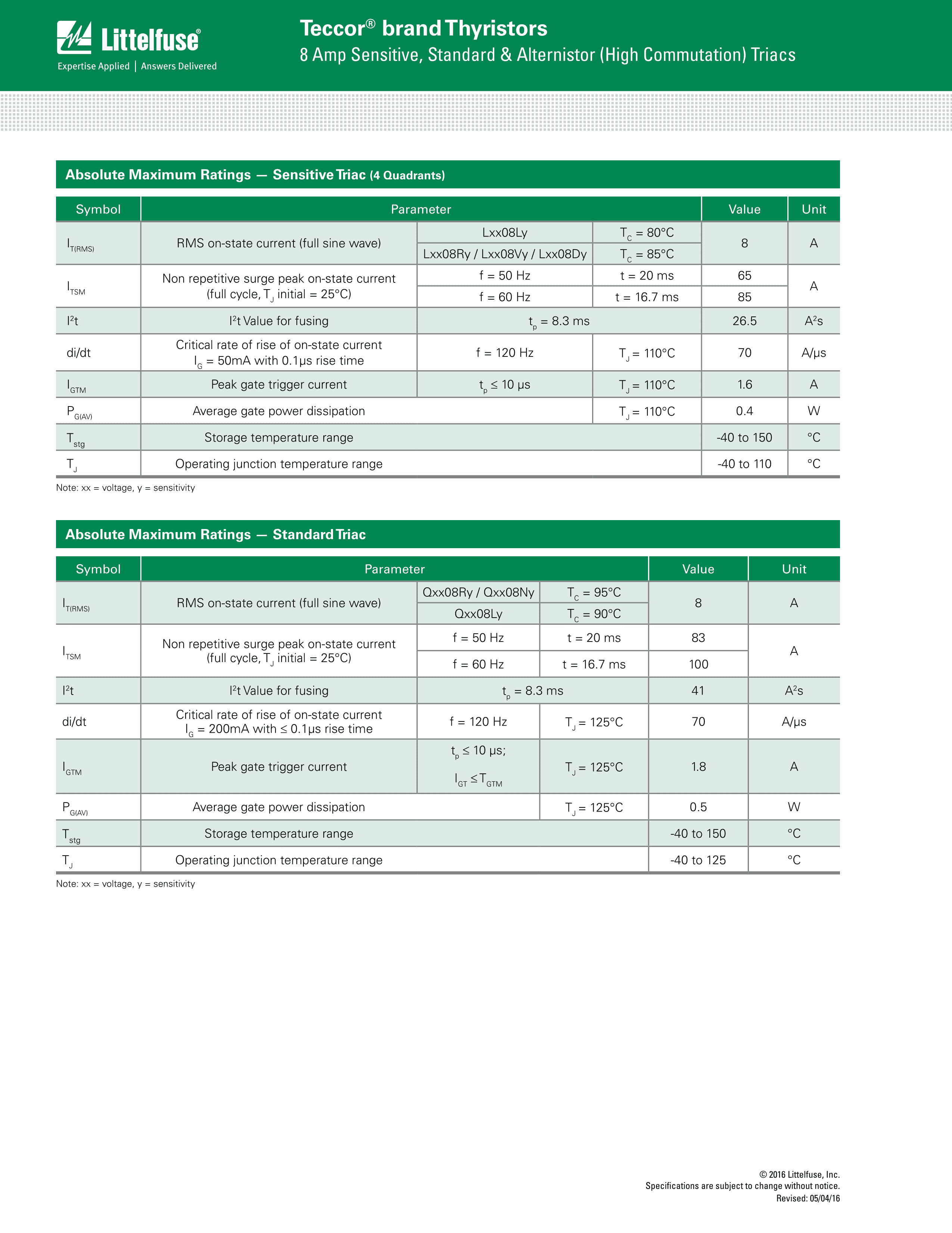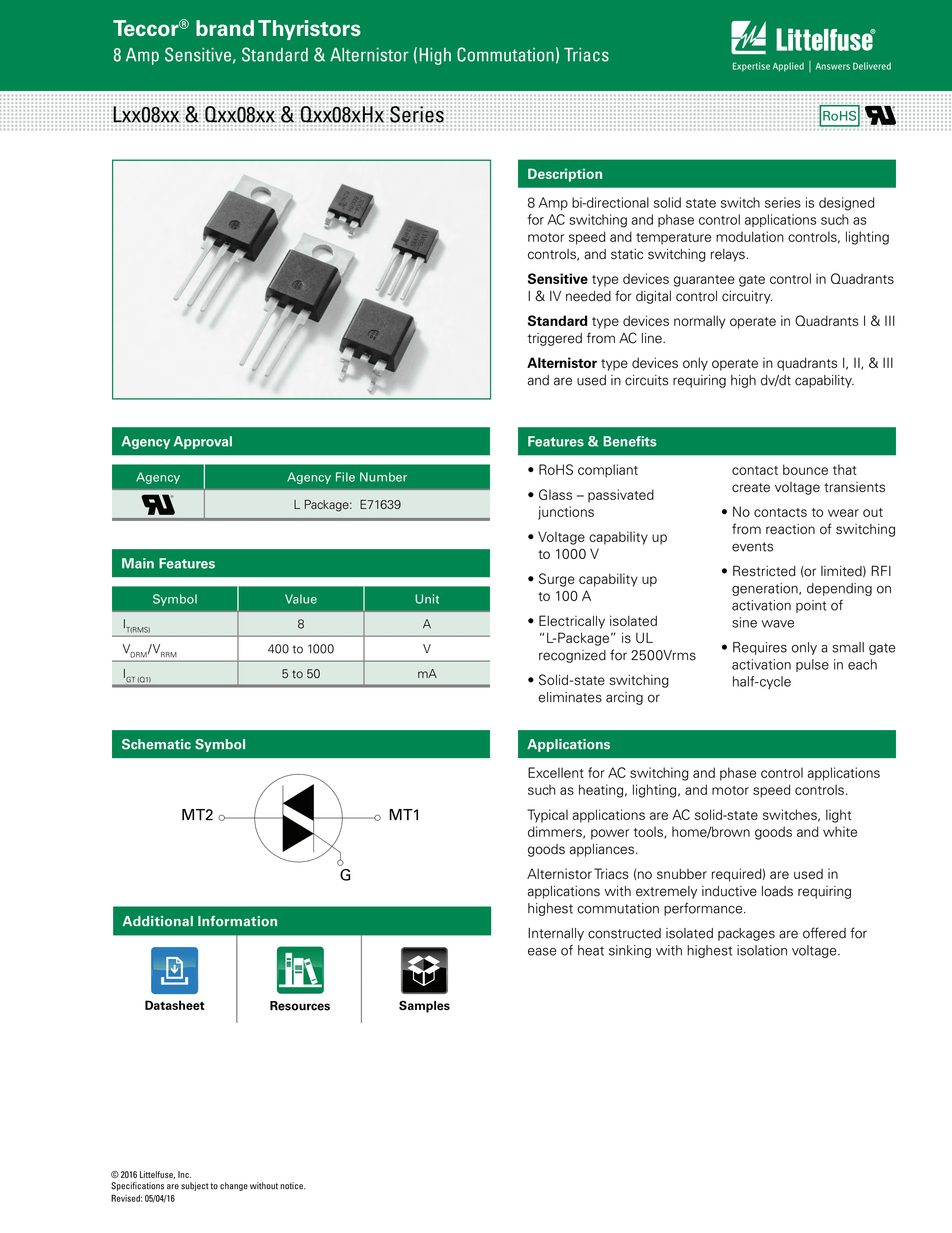 L4008L6TP数据手册TO-220L封装Littelfuse(美国力特)PDF规格书,中英文下载
