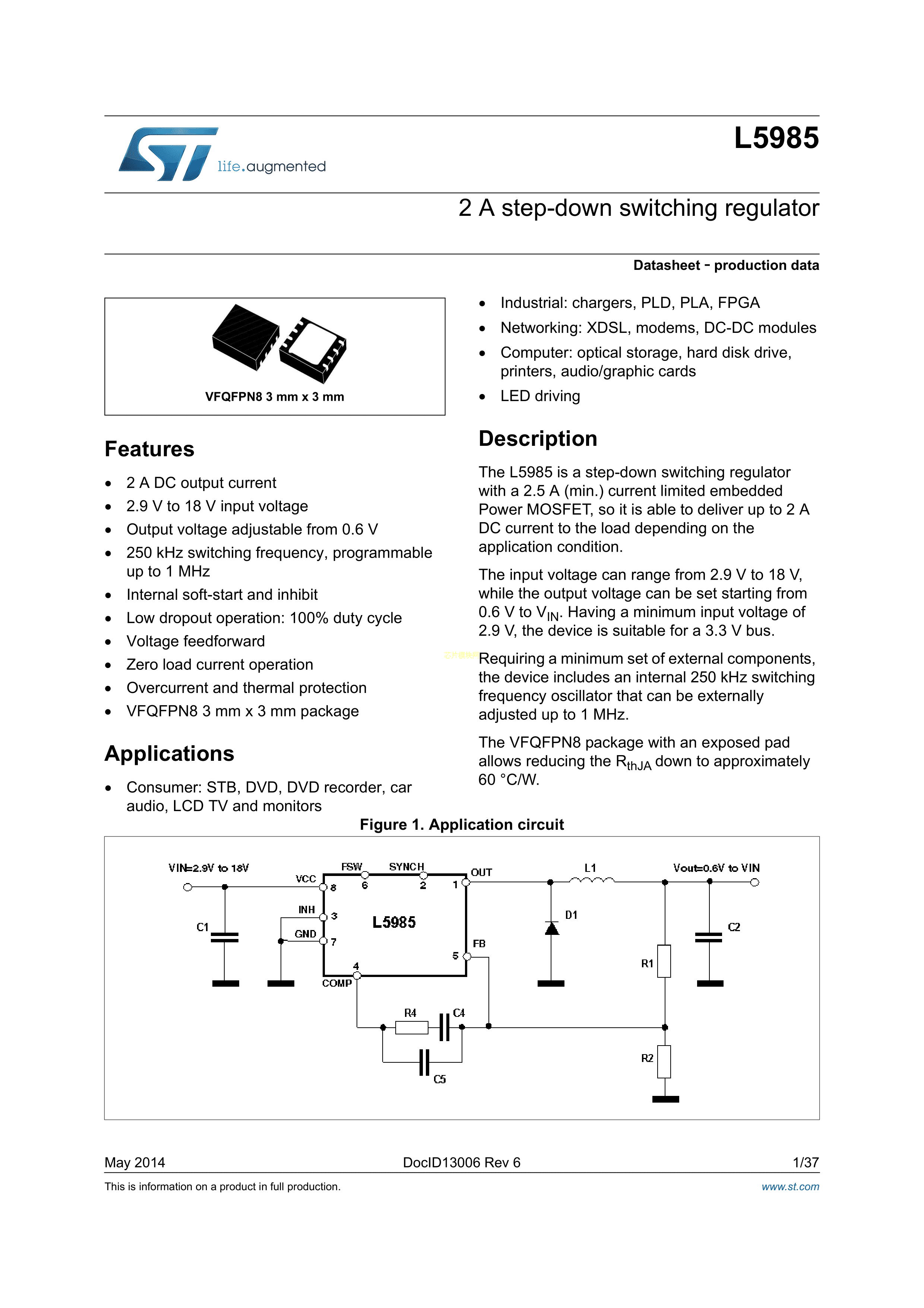 L5985TR数据手册VFQFPN-8(3x3)封装ST(意法半导体)PDF规格书,中英文下载