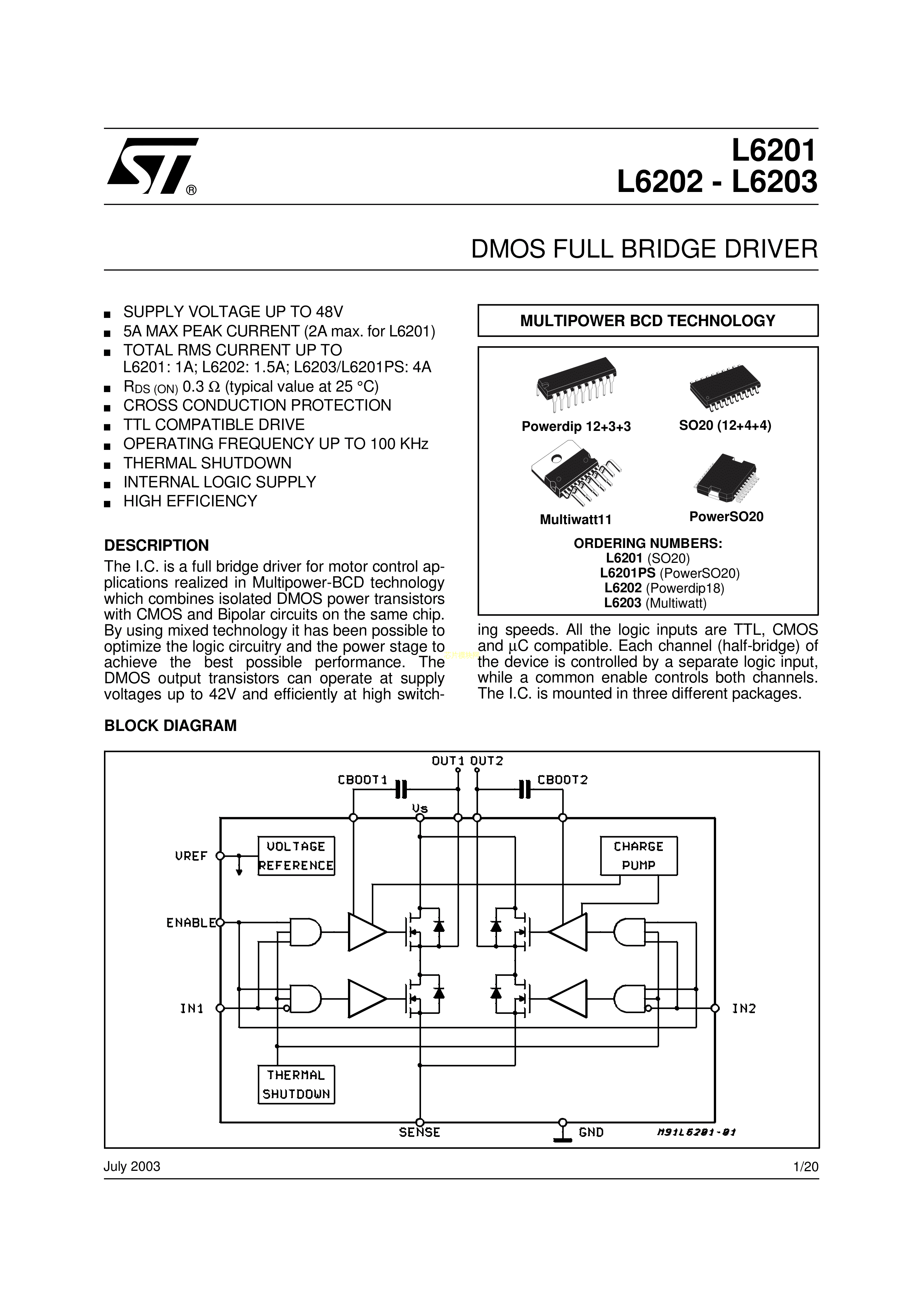 L6201PSTR数据手册PowerSO-20封装ST(意法半导体)PDF规格书,中英文下载