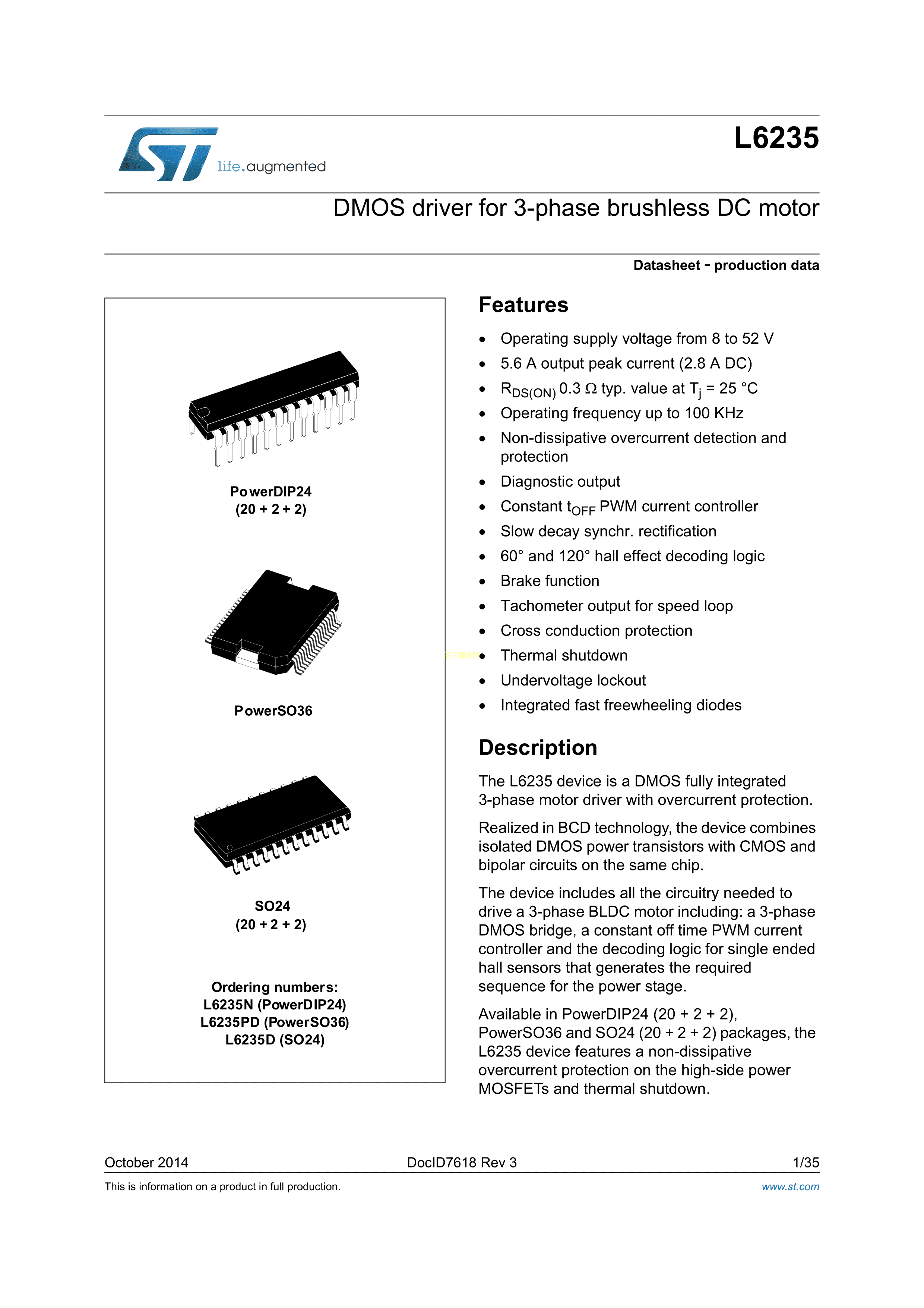 L6235D数据手册SO-24封装ST(意法半导体)PDF规格书,中英文下载